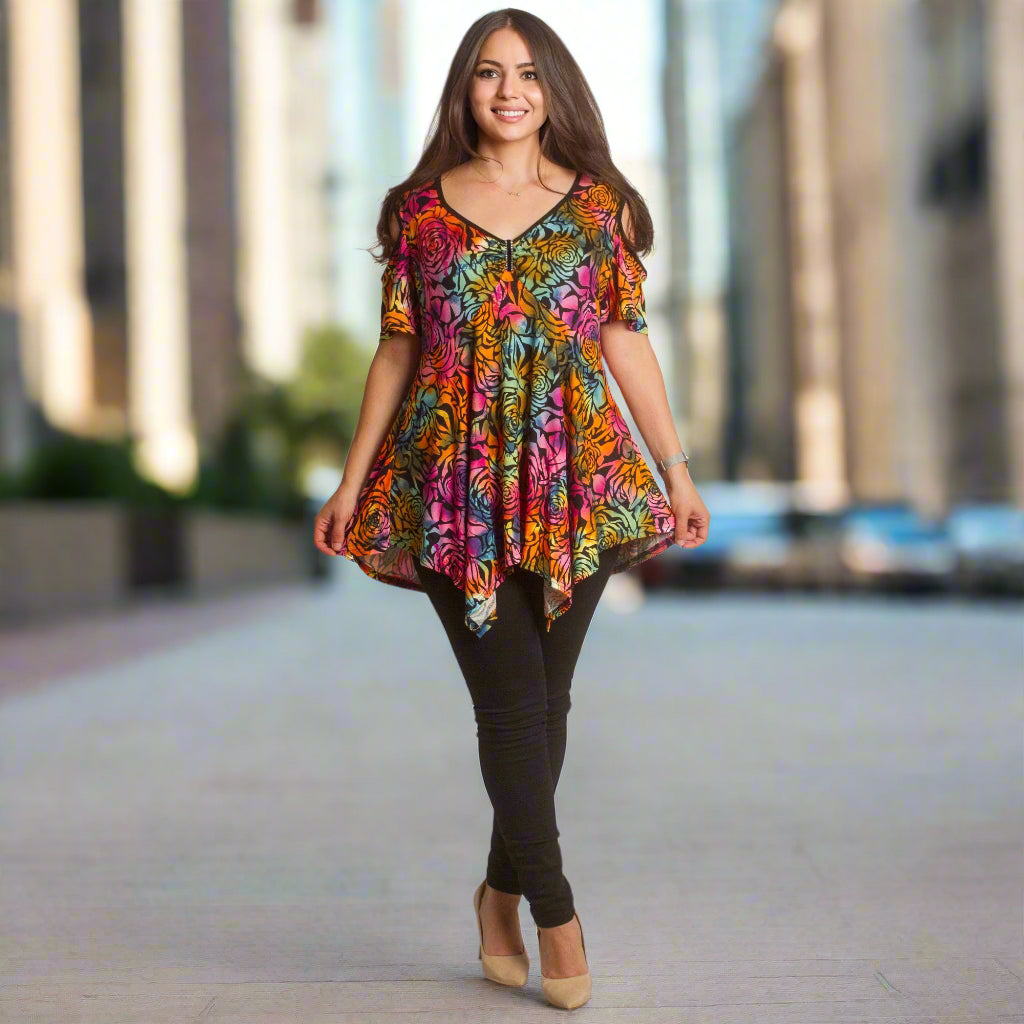 Μακριά τουνίκ σε μεγάλα μεγέθη με λουλουδάτο print