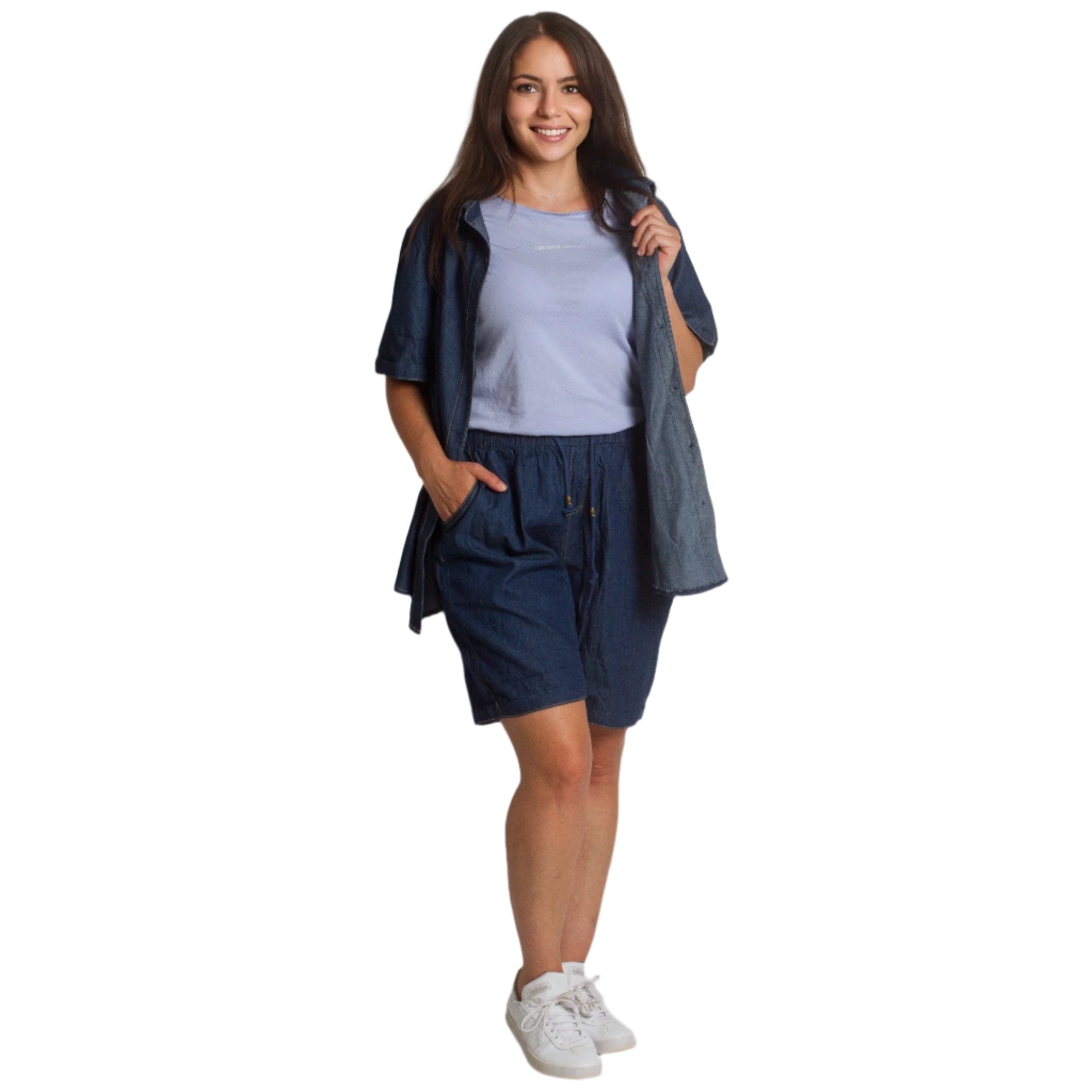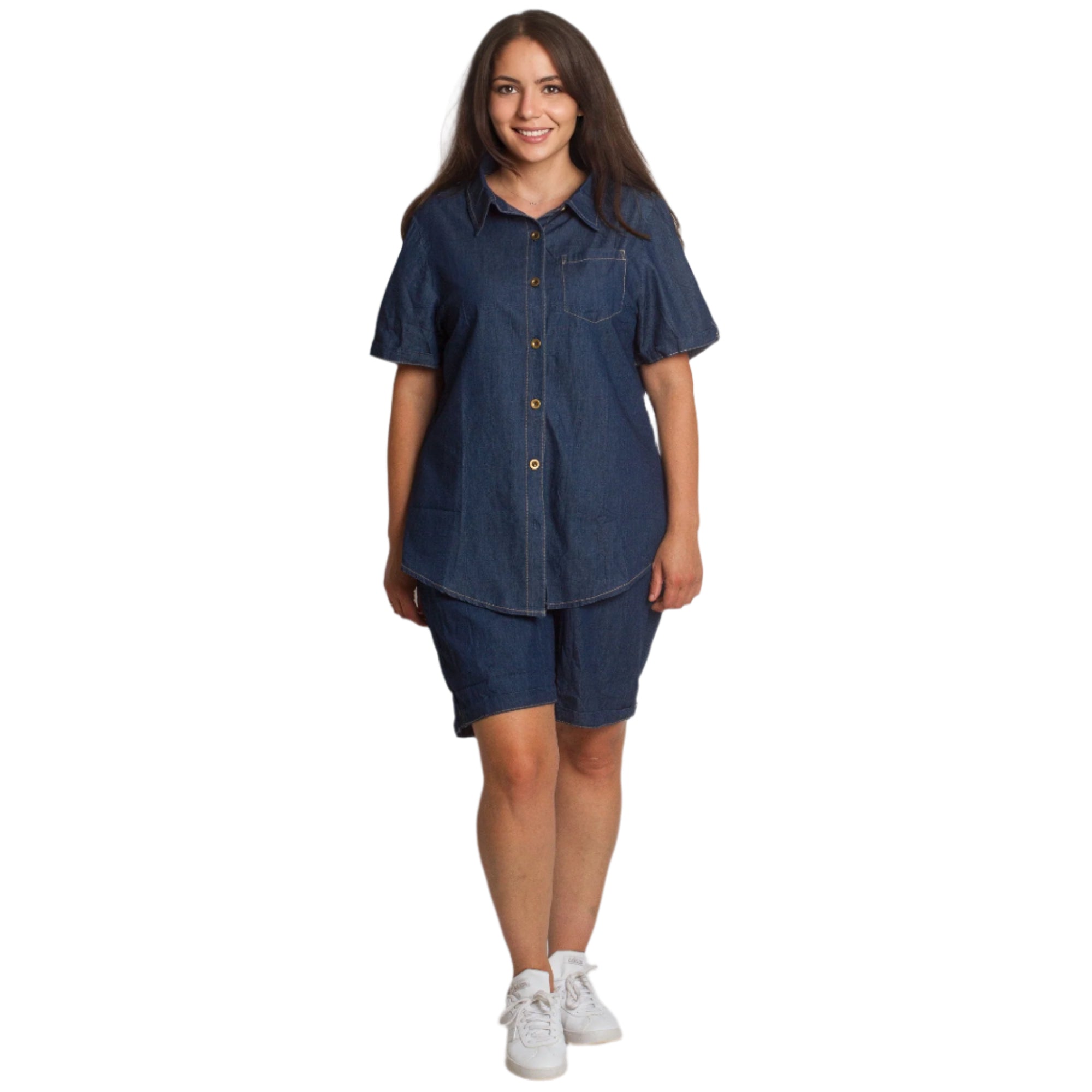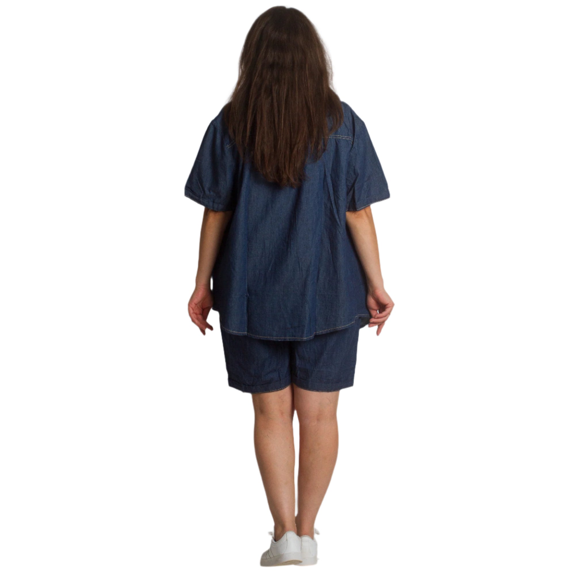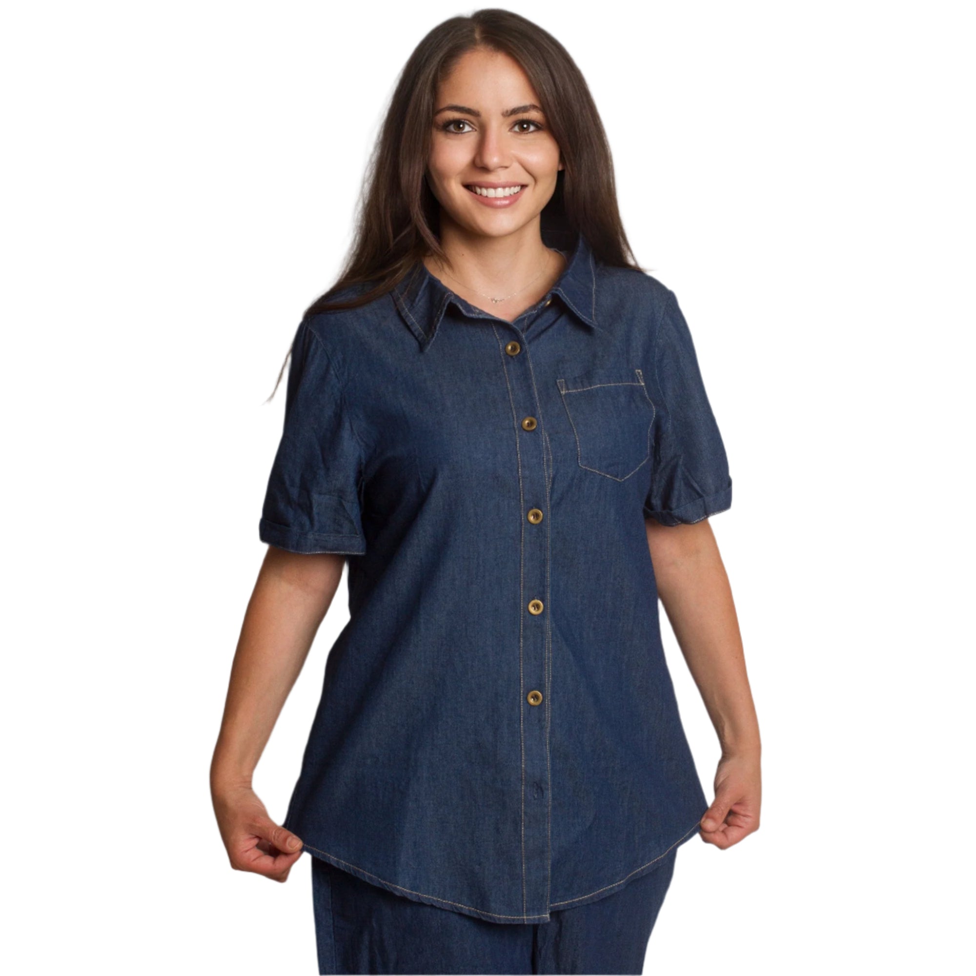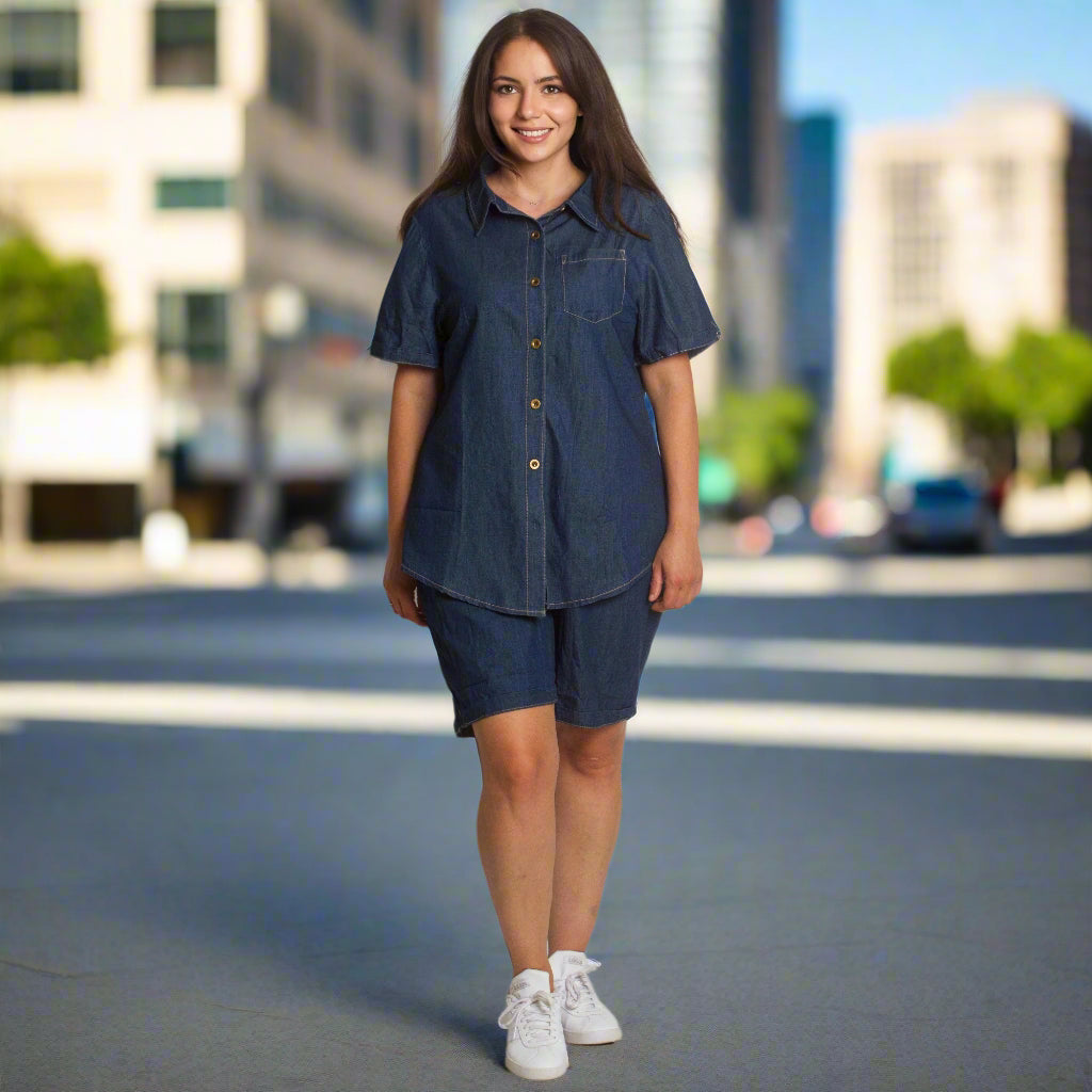 Τζιν πουκάμισο με κοντό μανίκι σε σκούρο μπλε