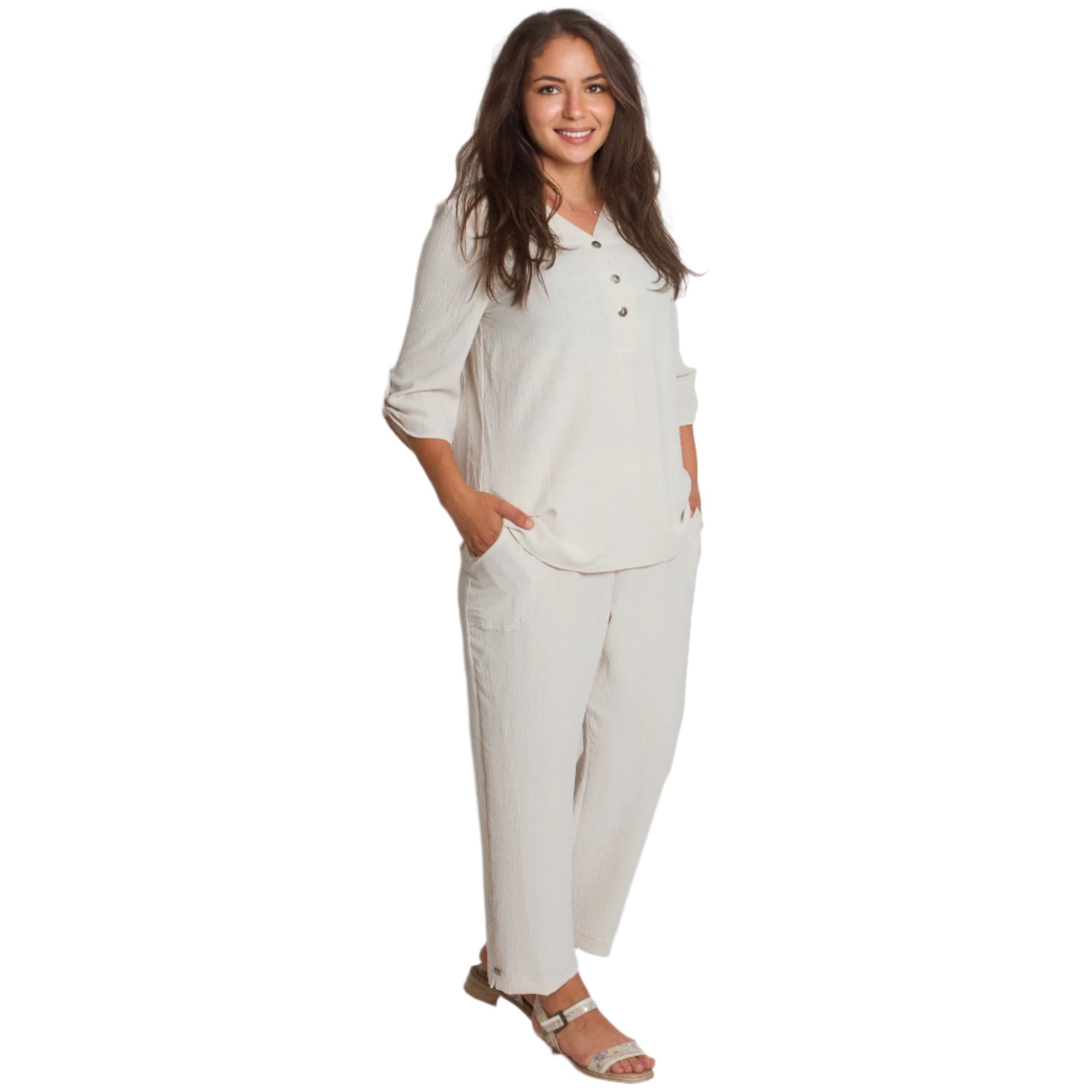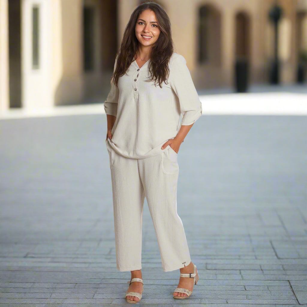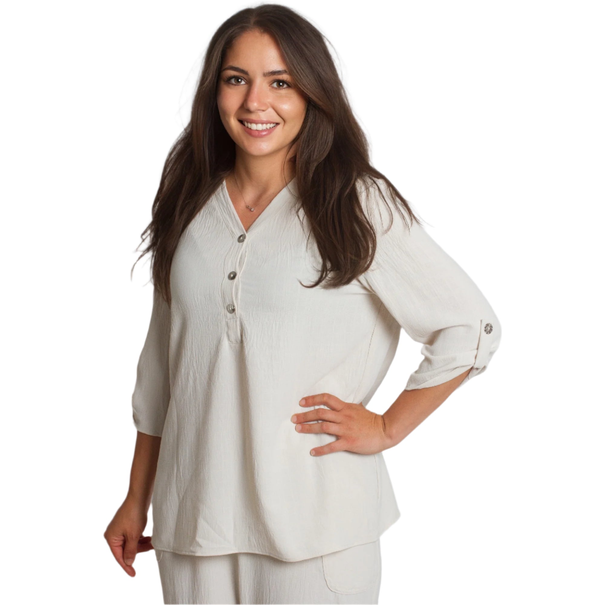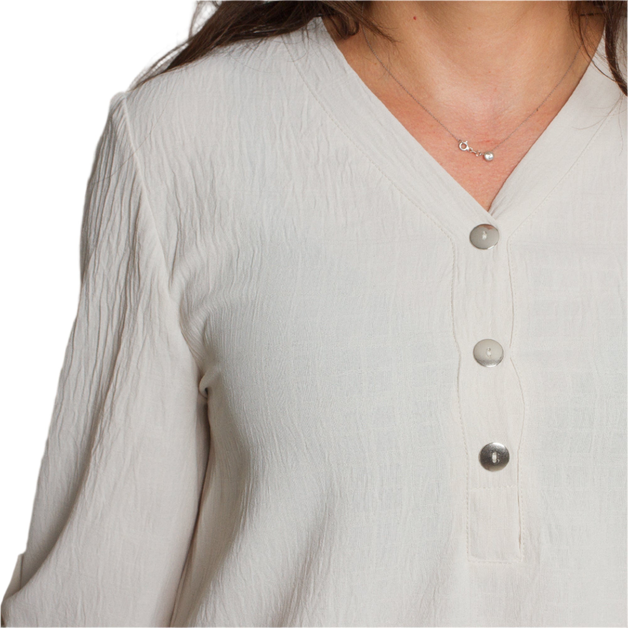 Μπεζ ελαφριά πουκαμίσα με V ντεκολτέ σε μεγάλα μεγέθη