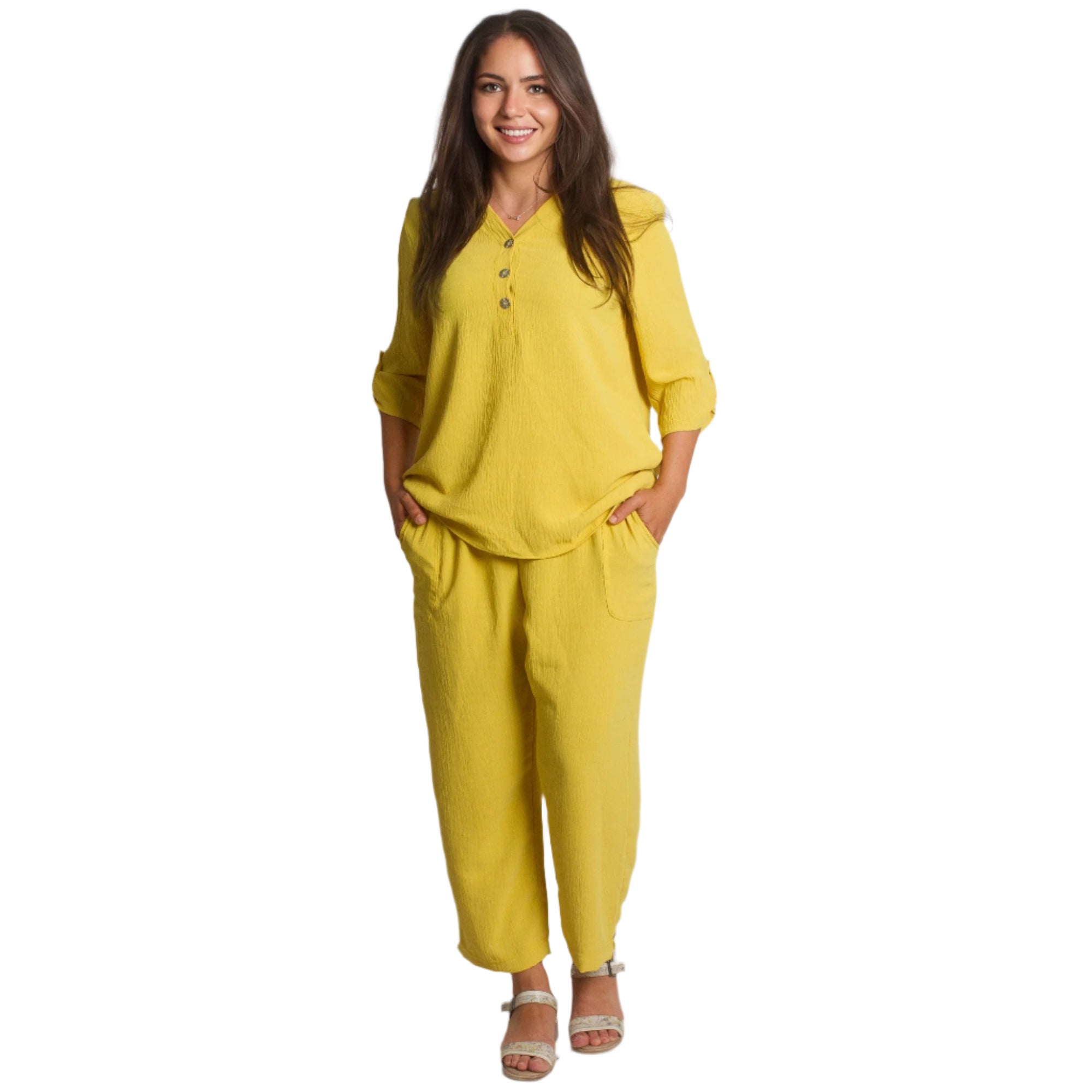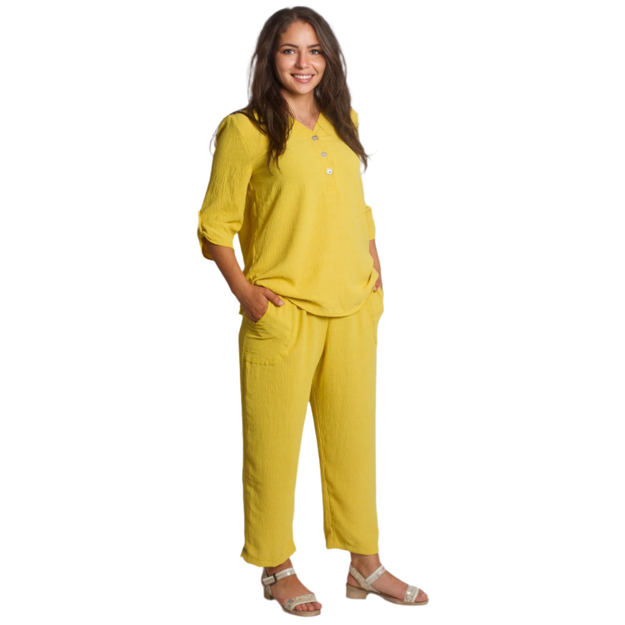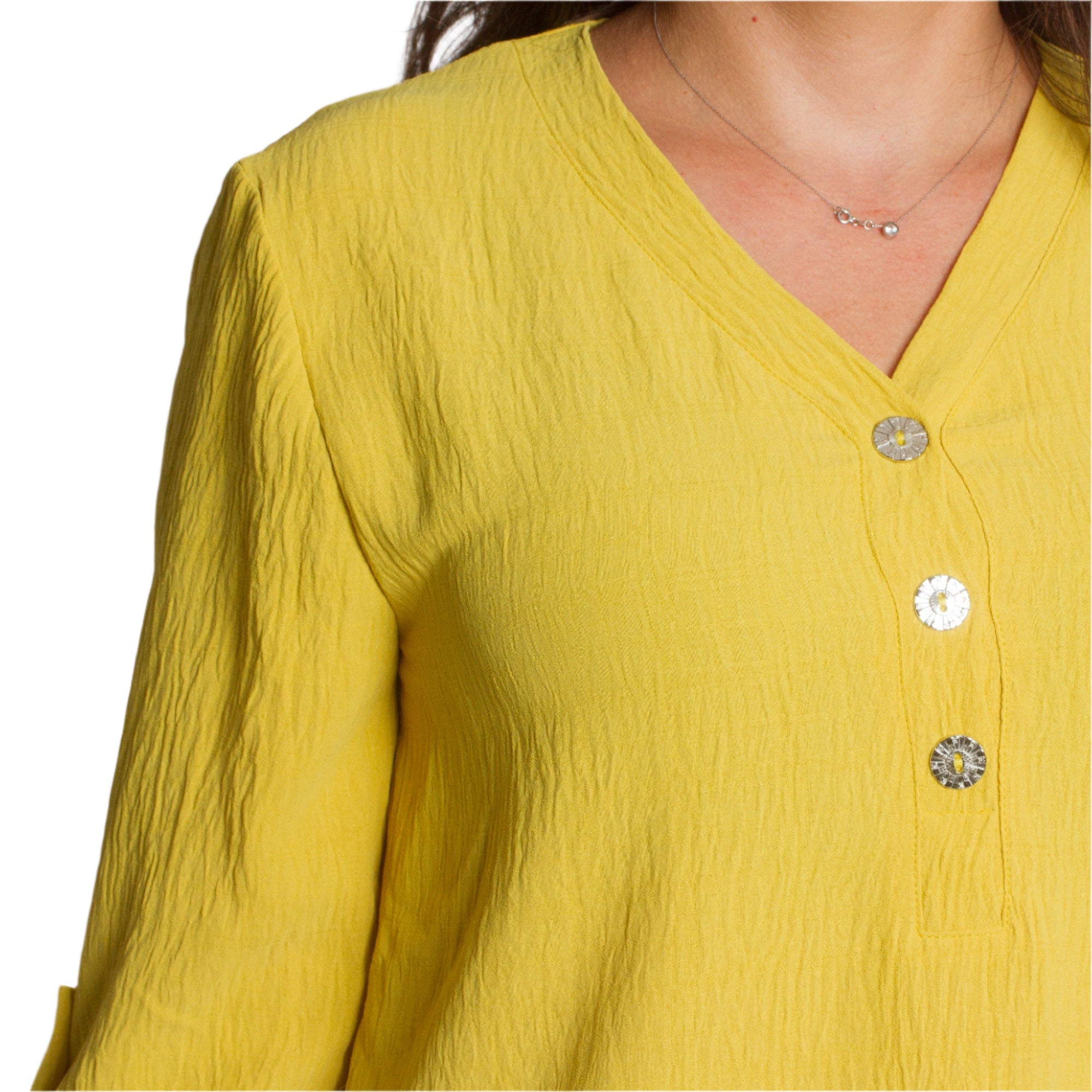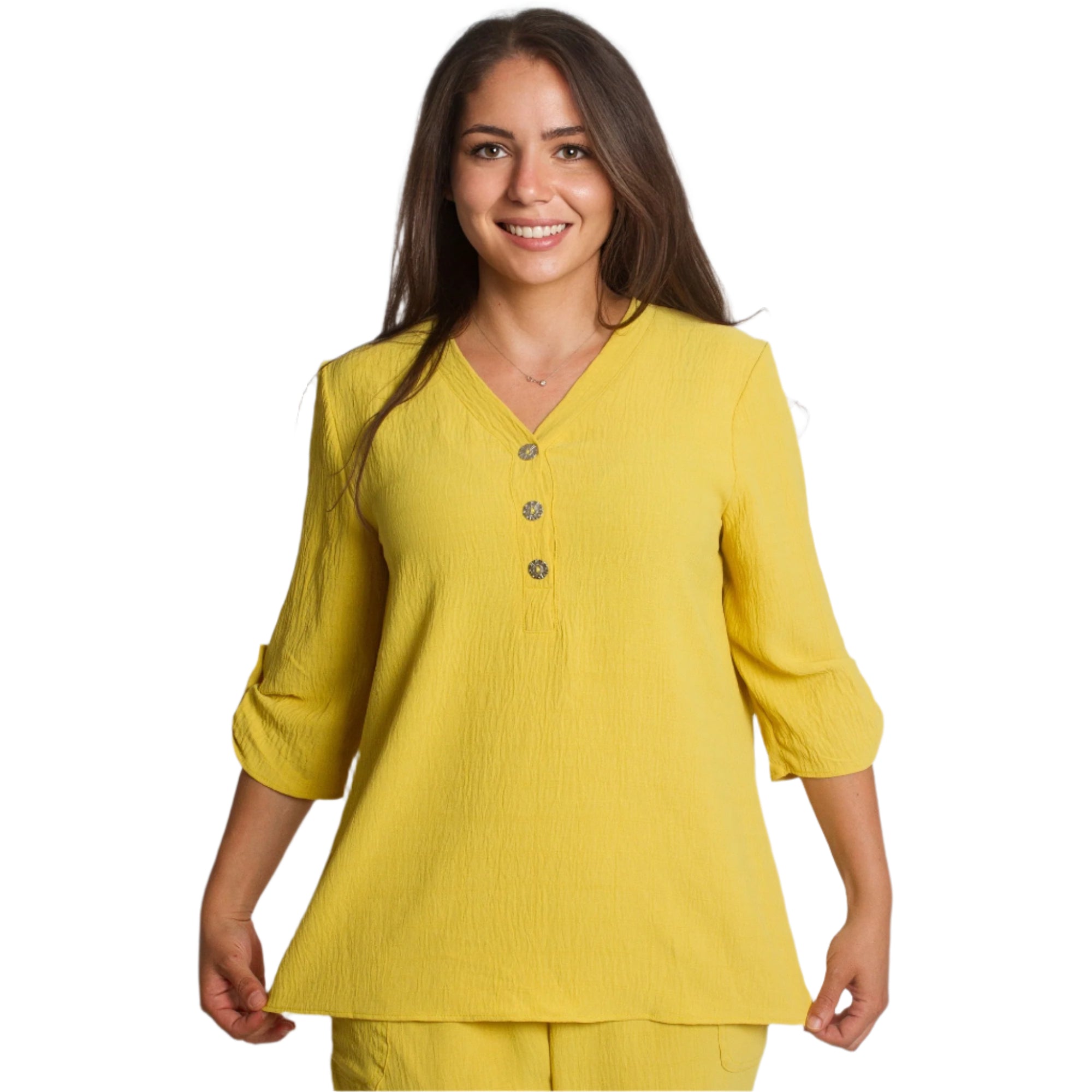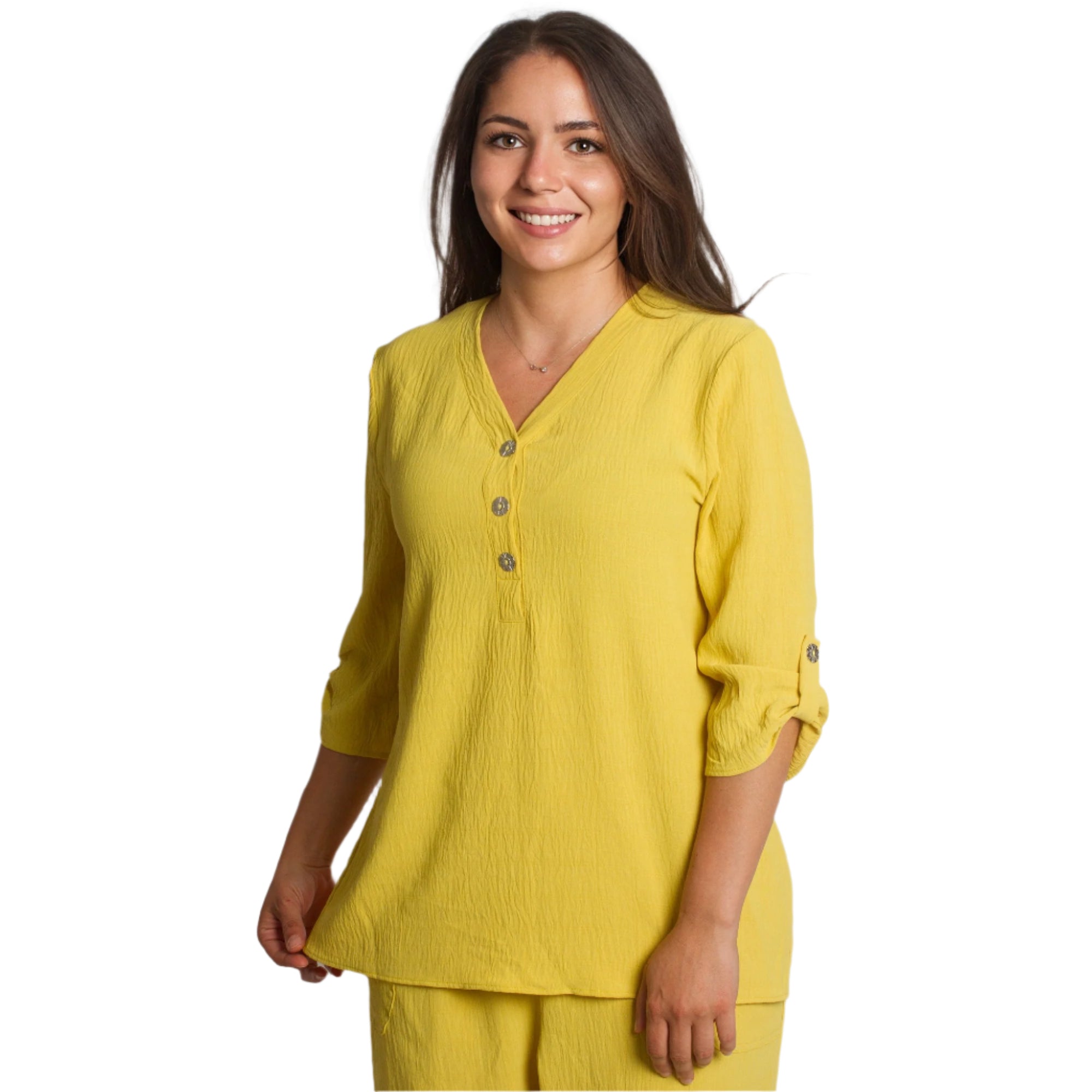 Κίτρινο πουκάμισο με V ντεκολτέ και διακοσμητικά κουμπιά
