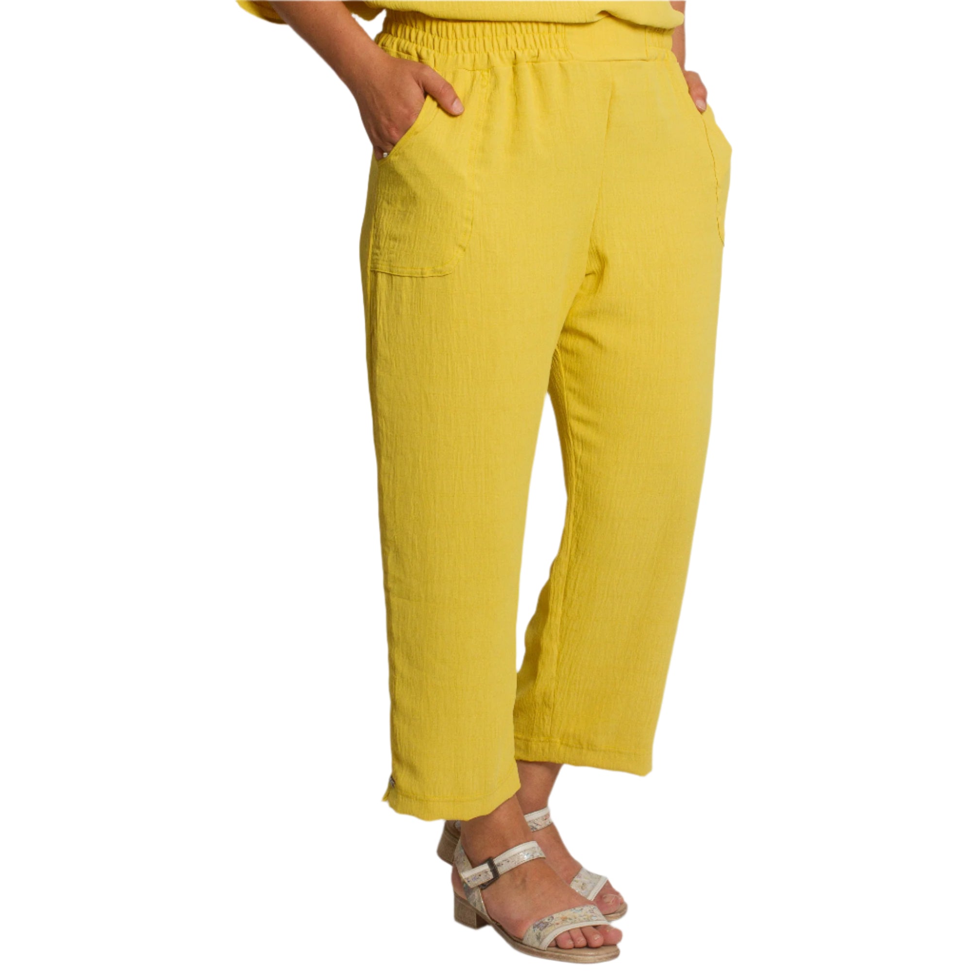 Κίτρινο παντελόνι με λάστιχο και τσέπες σε μεγάλα μεγέθη