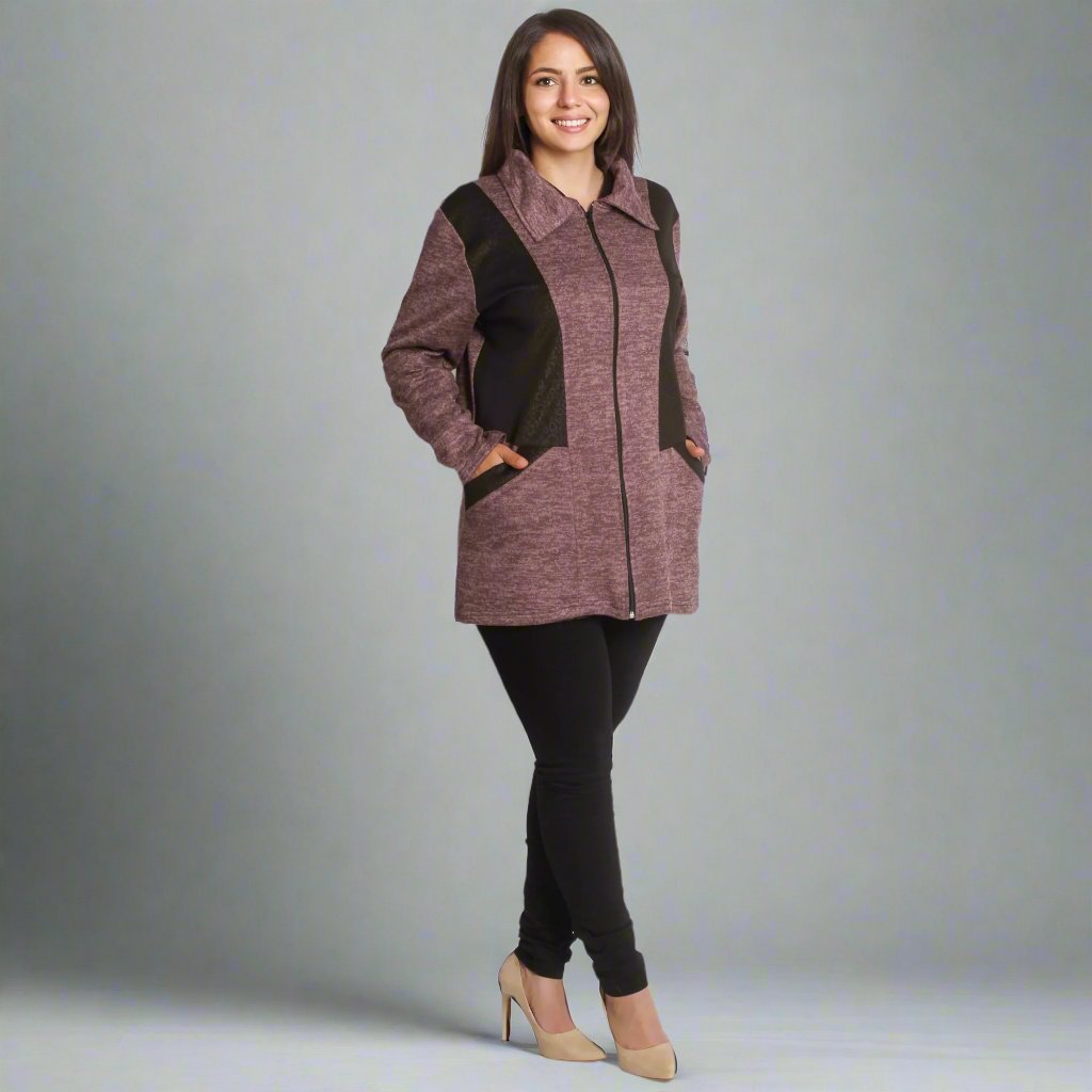 Γυναικεία Ζακέτα σε σάπιο μήλο με Φερμουάρ και Τσέπες