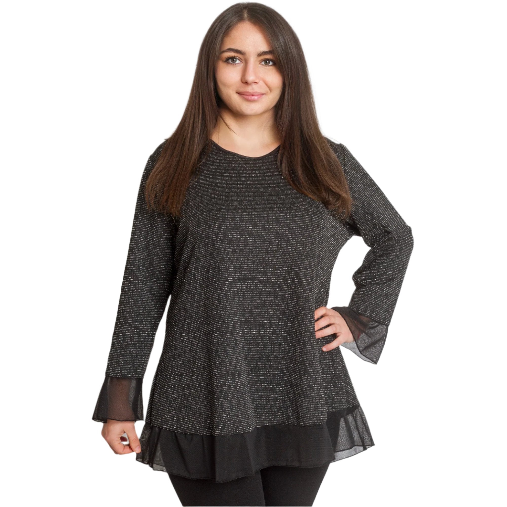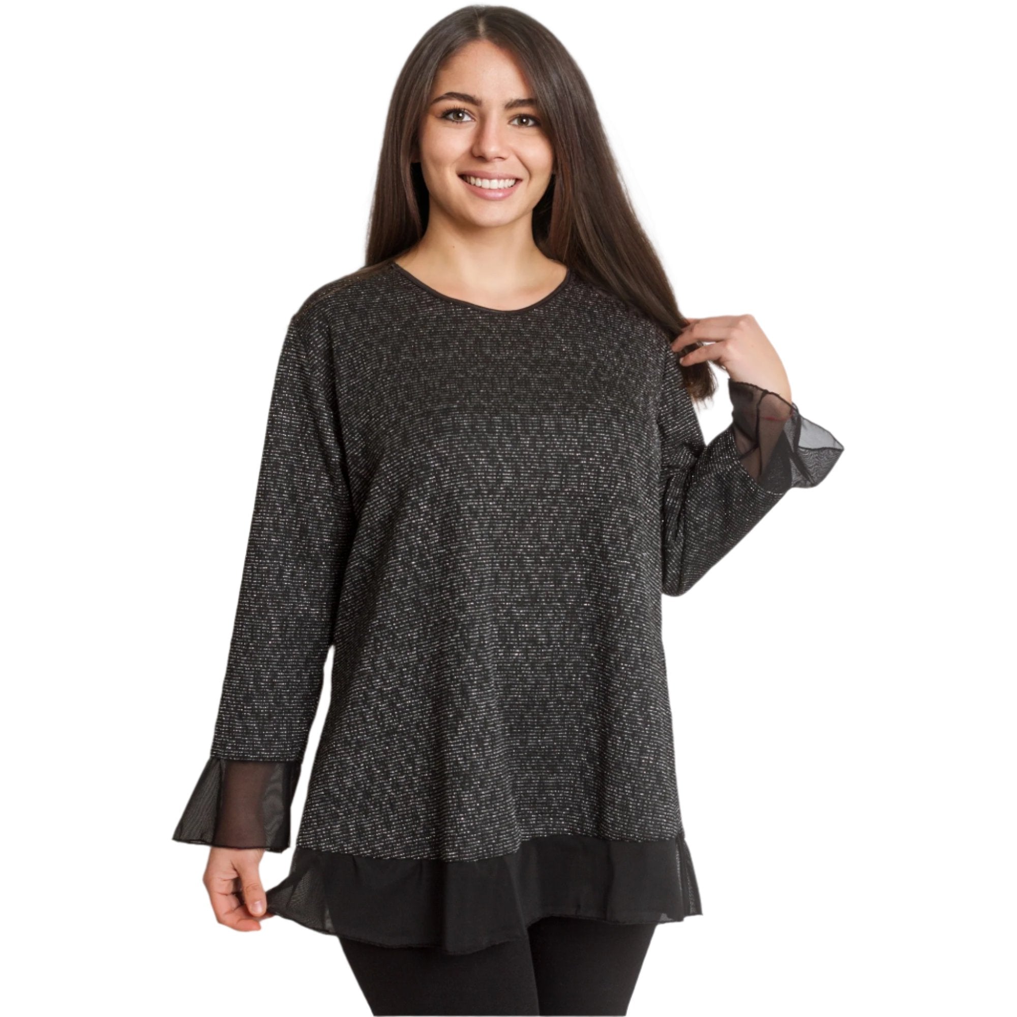 3XL 4XL Γυναικεία Τουνίκ με Τούλι σε Μαύρο