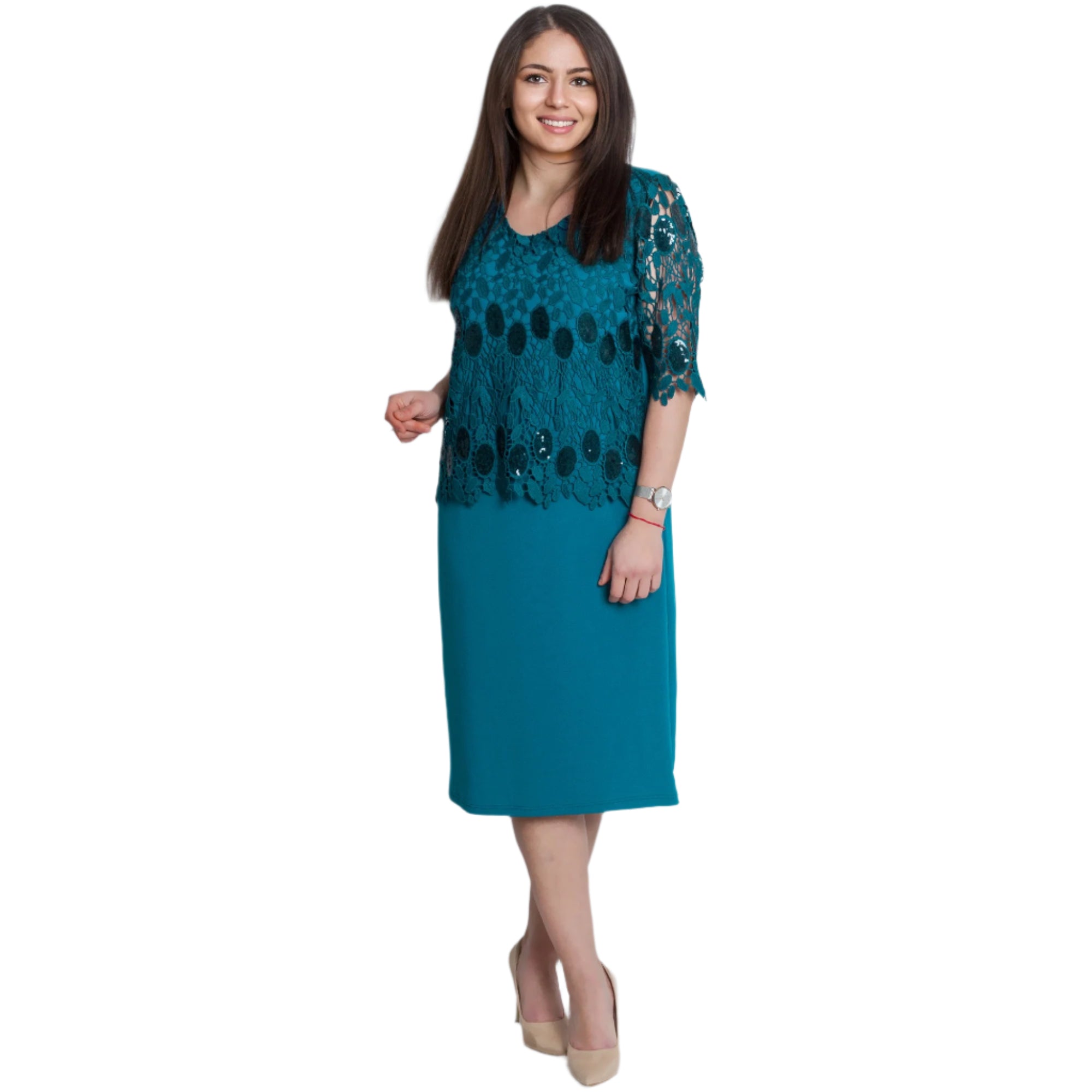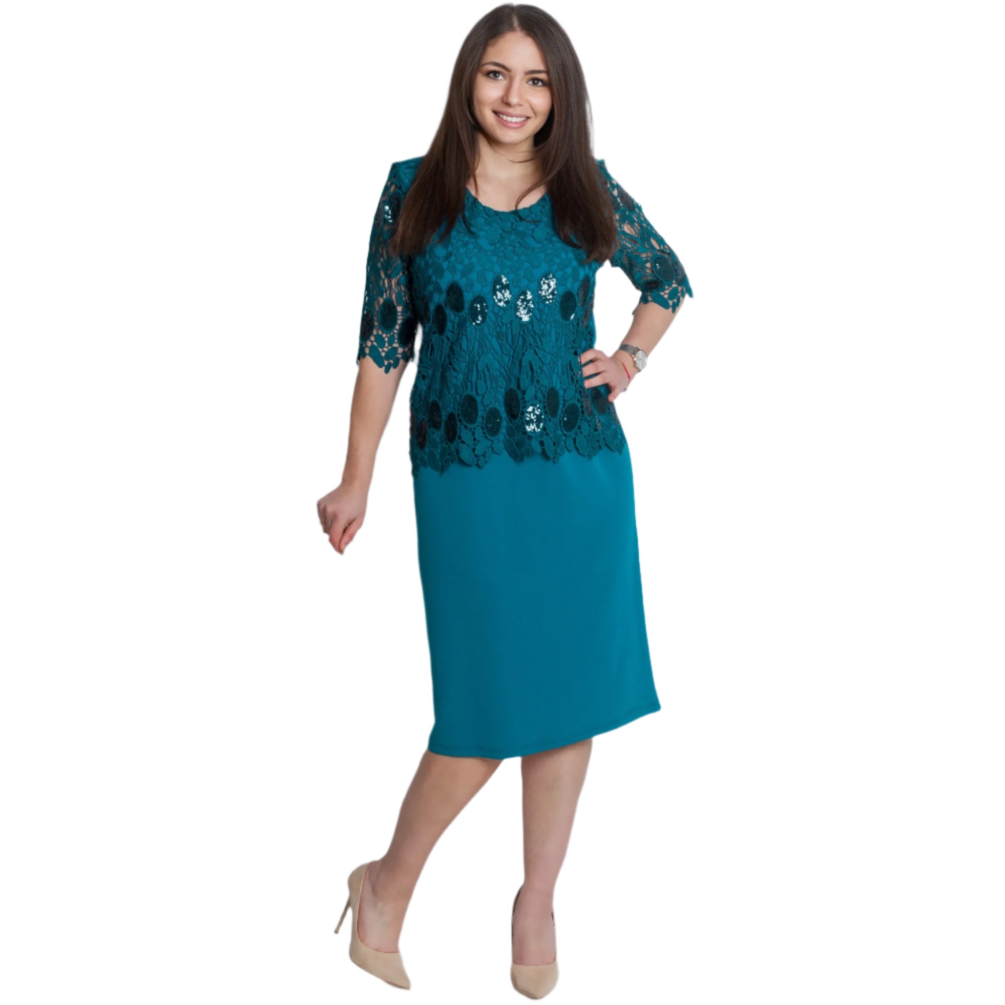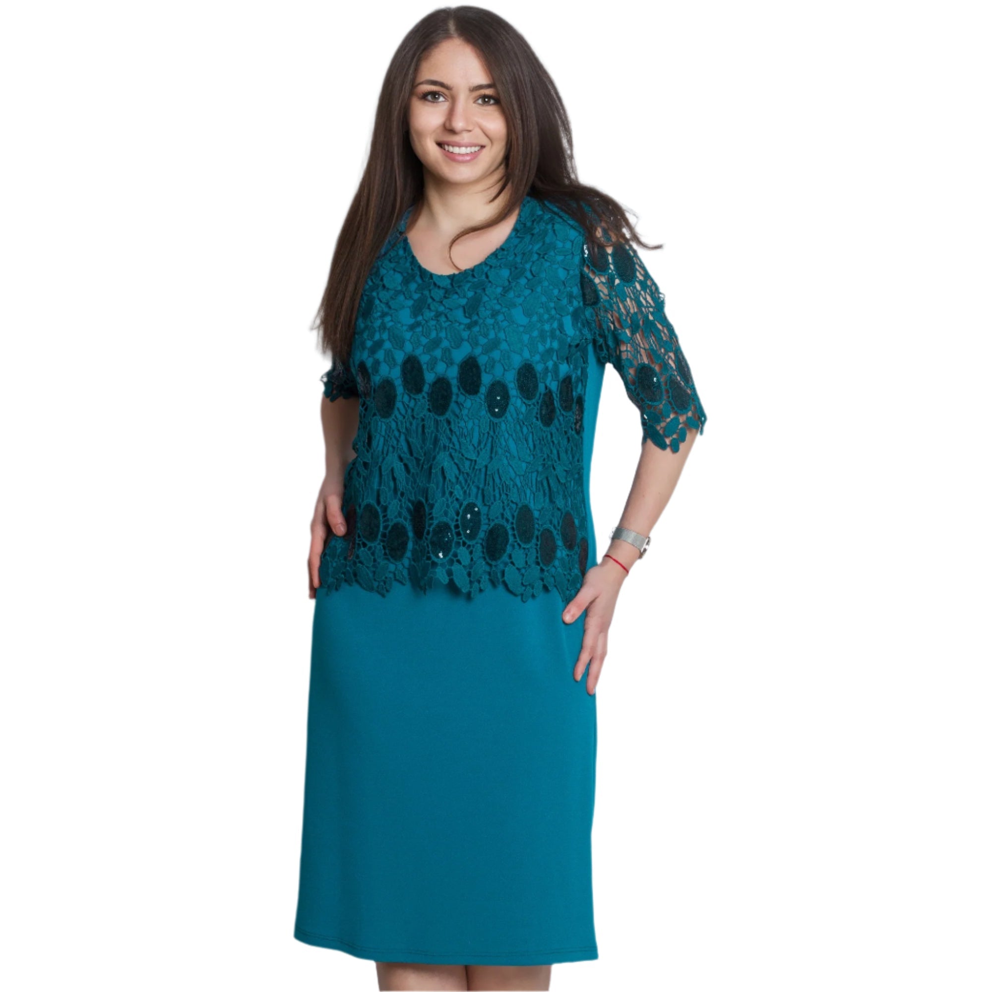 Επίσημο Ίσιο Φόρεμα σε Πετρόλ με Δαντέλα