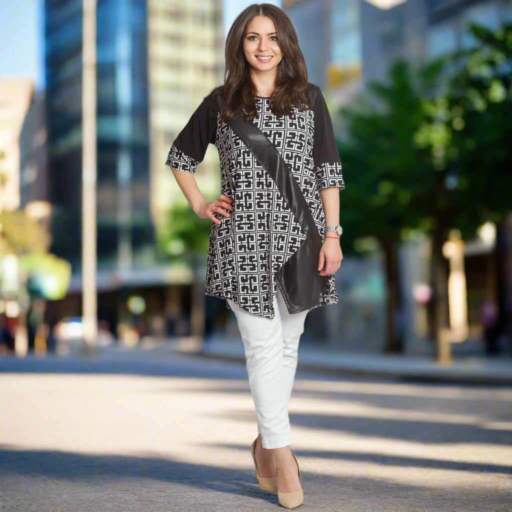 Μακριά Τουνίκ με 3/4 Μανίκια και Γεωμετρικό Σχέδιο