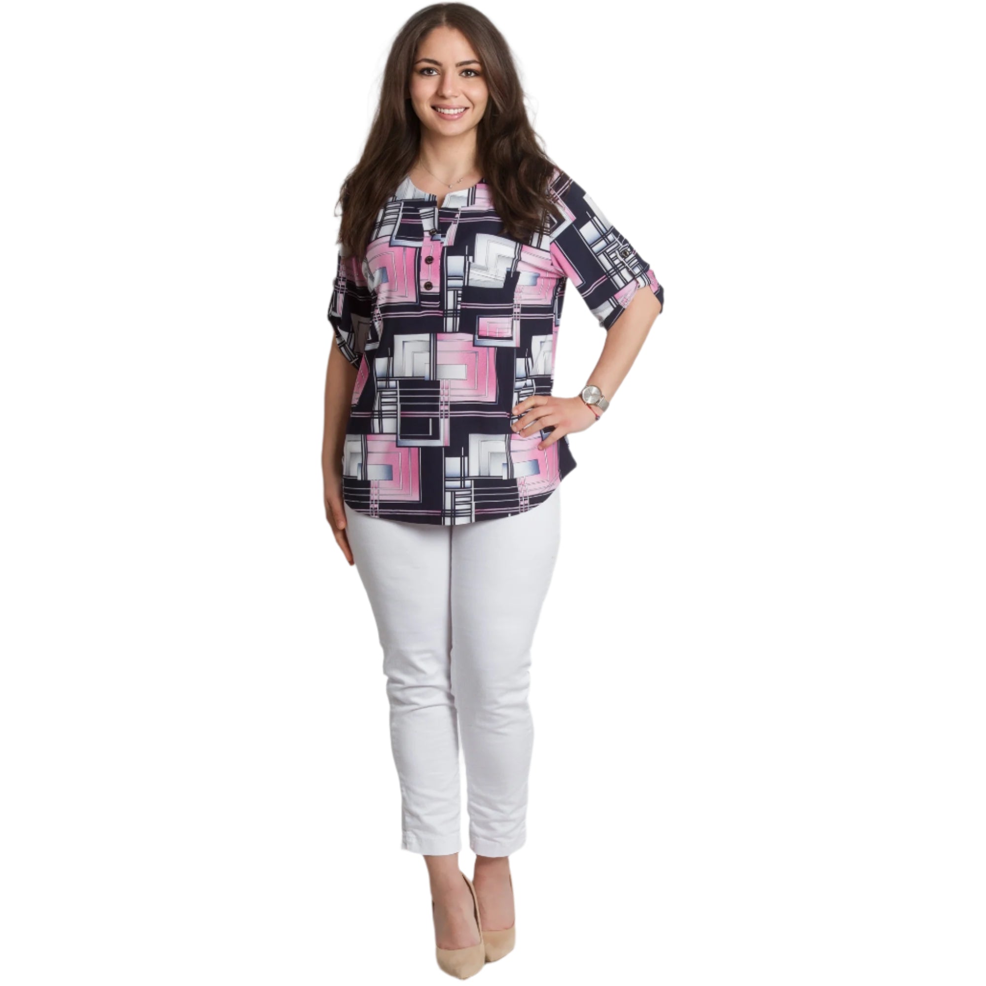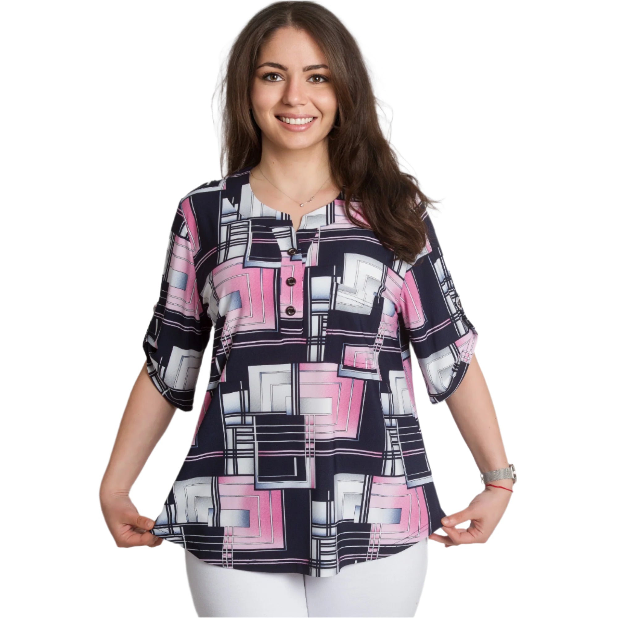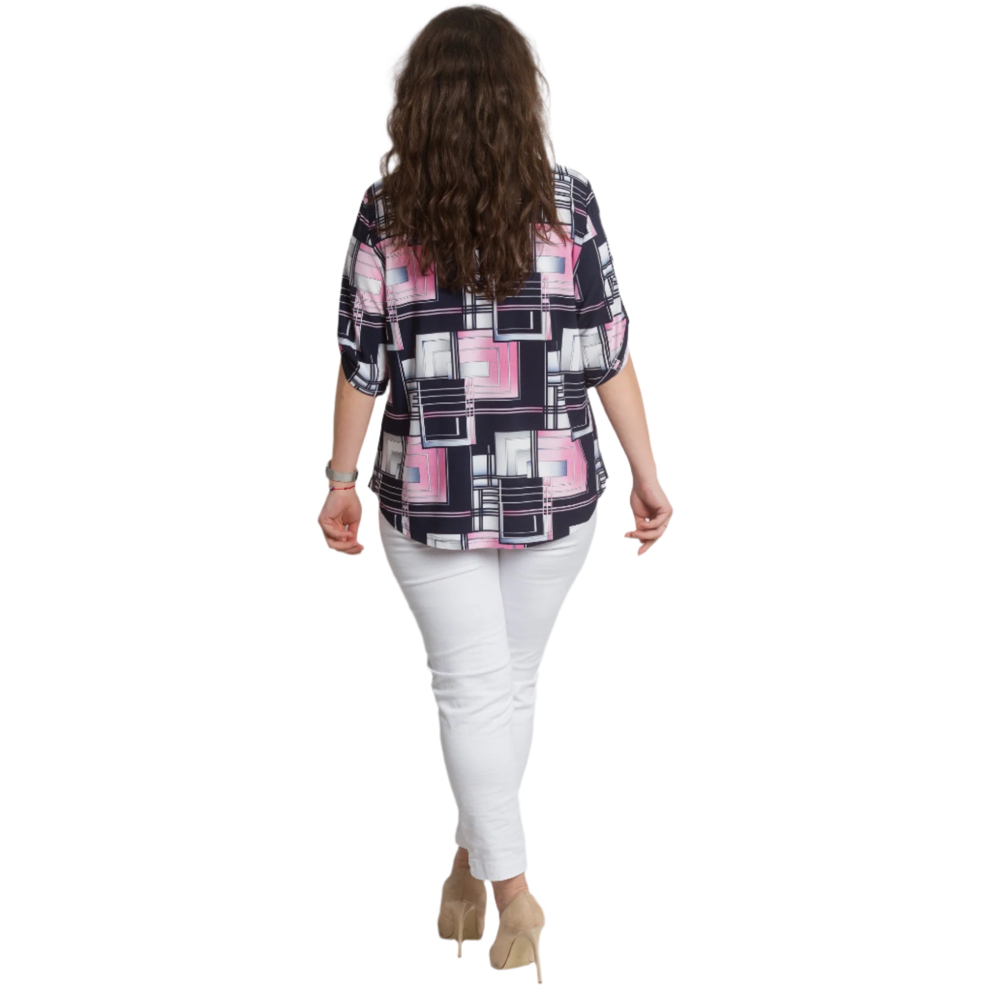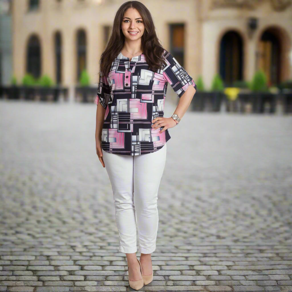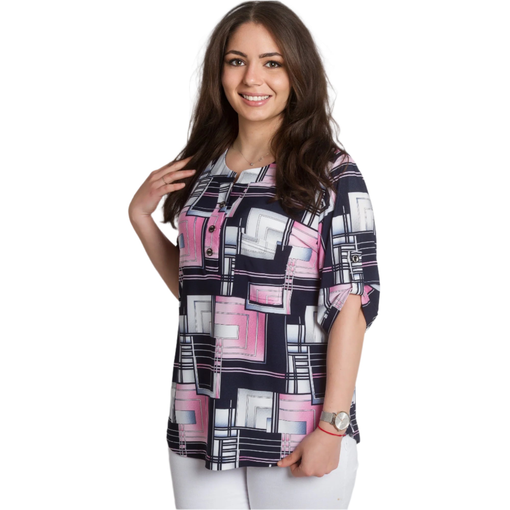 Γυναικεία πουκαμίσα με Τσεπάκι και Γεωμετρικό Σχέδιο
