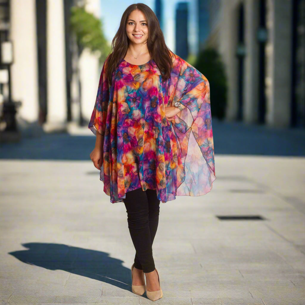 Αέρινη σιφόν τουνίκ με floral σχέδιο και άνετη γραμμή