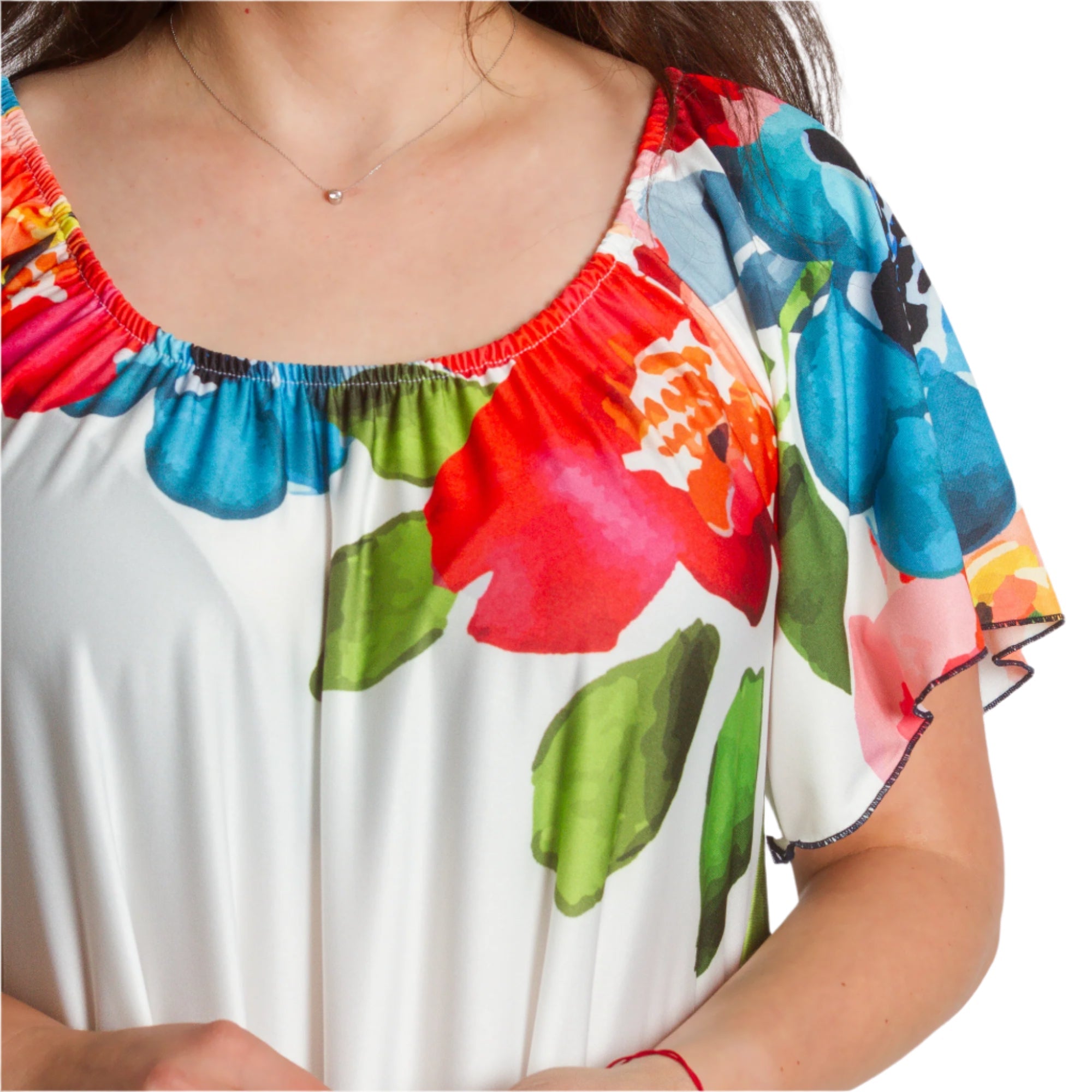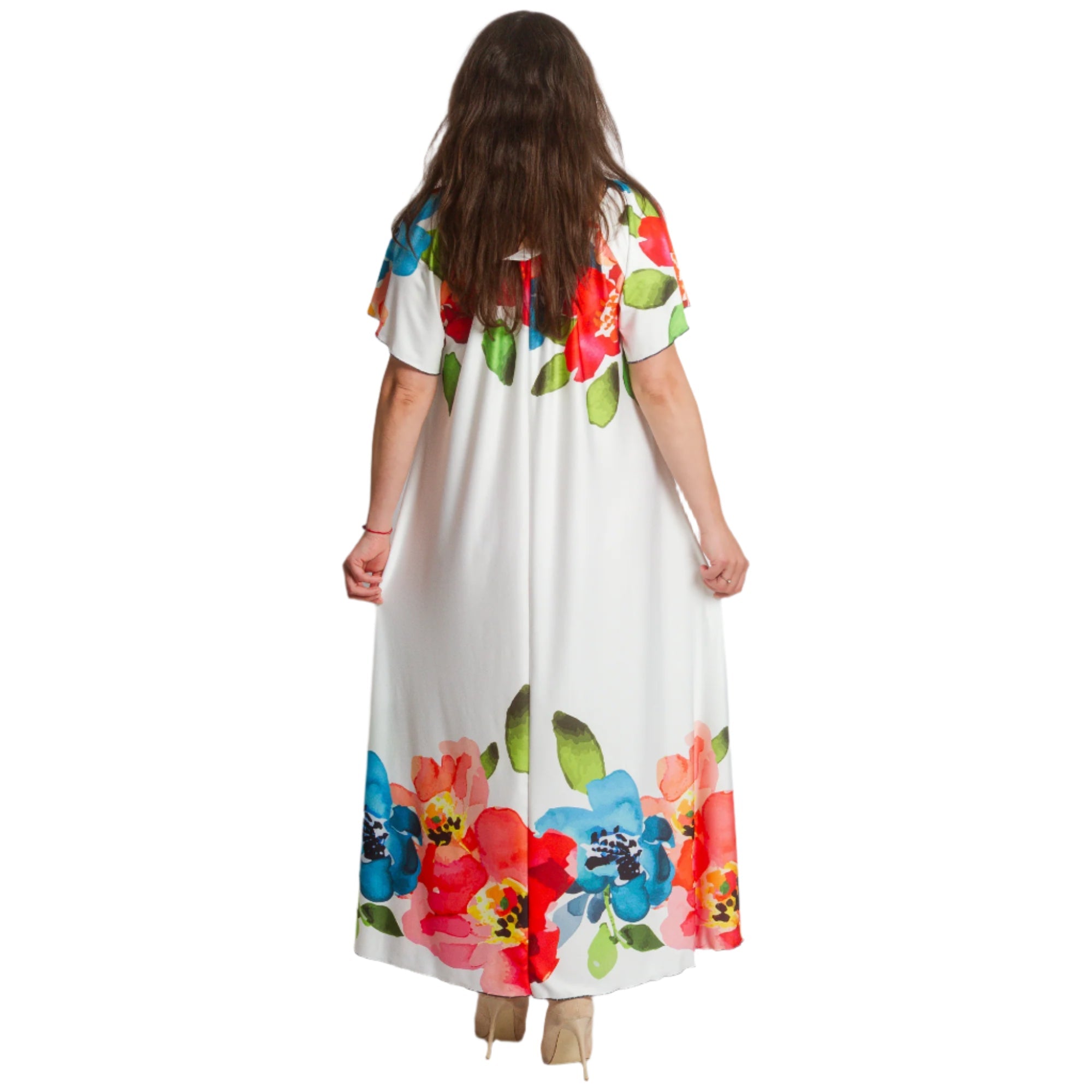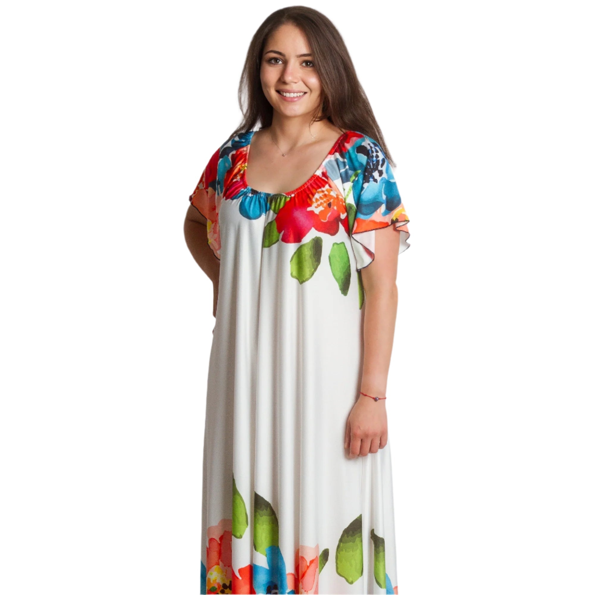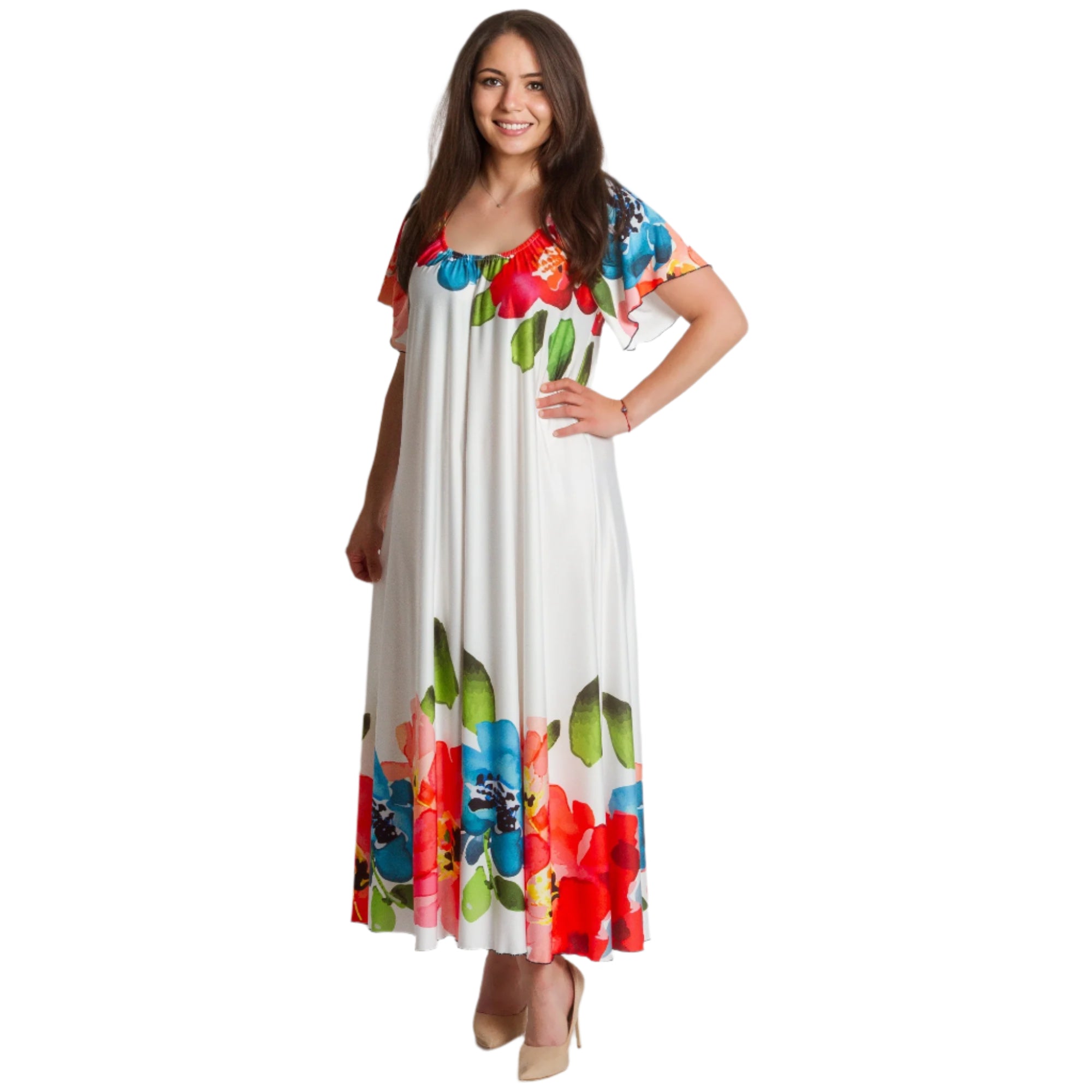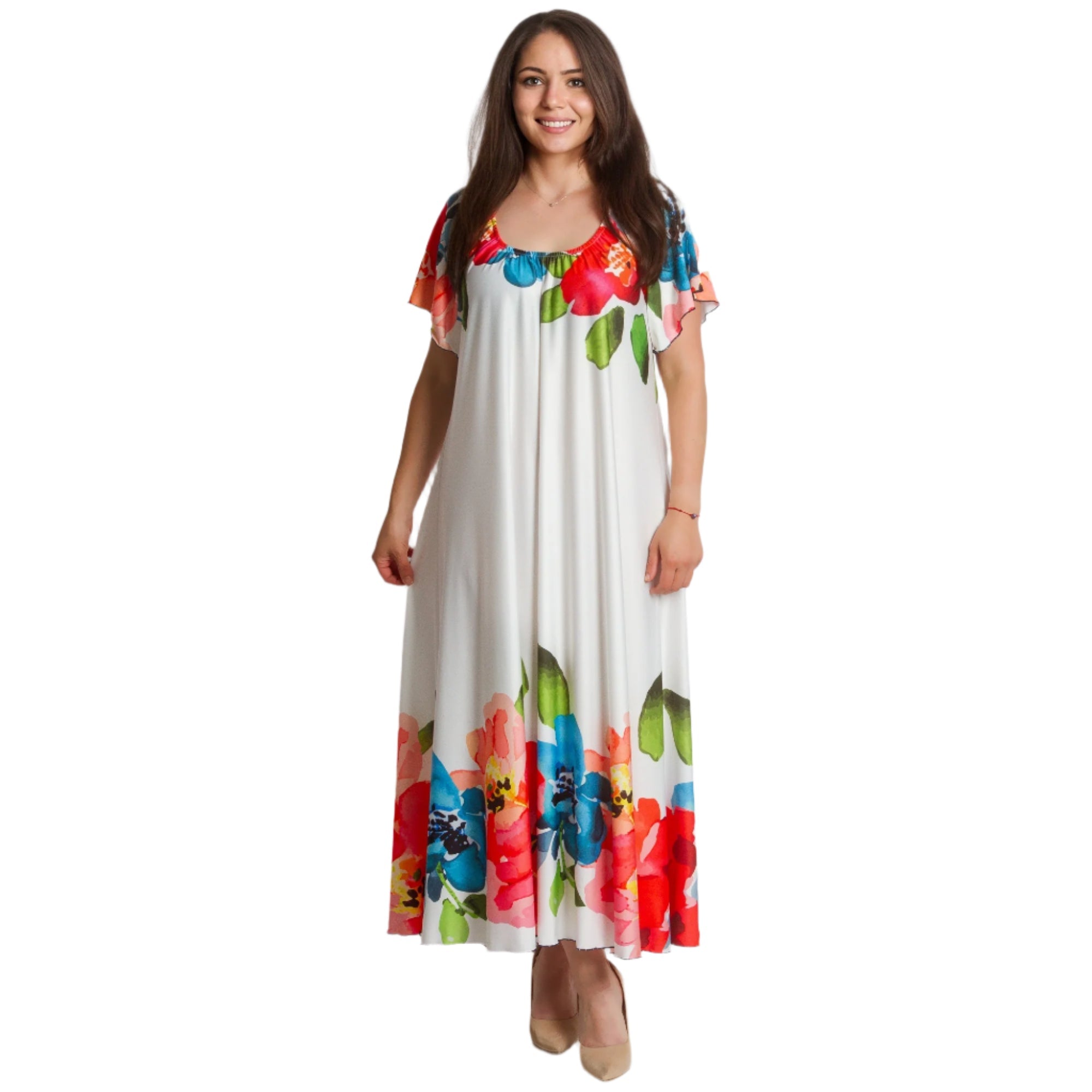 Λευκό φόρεμα με χρωματιστό τελείωμα και λαιμόκοψη