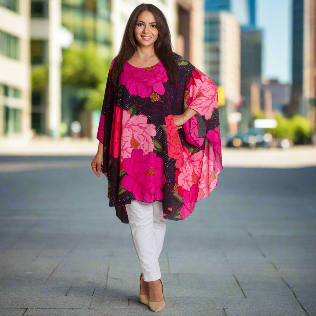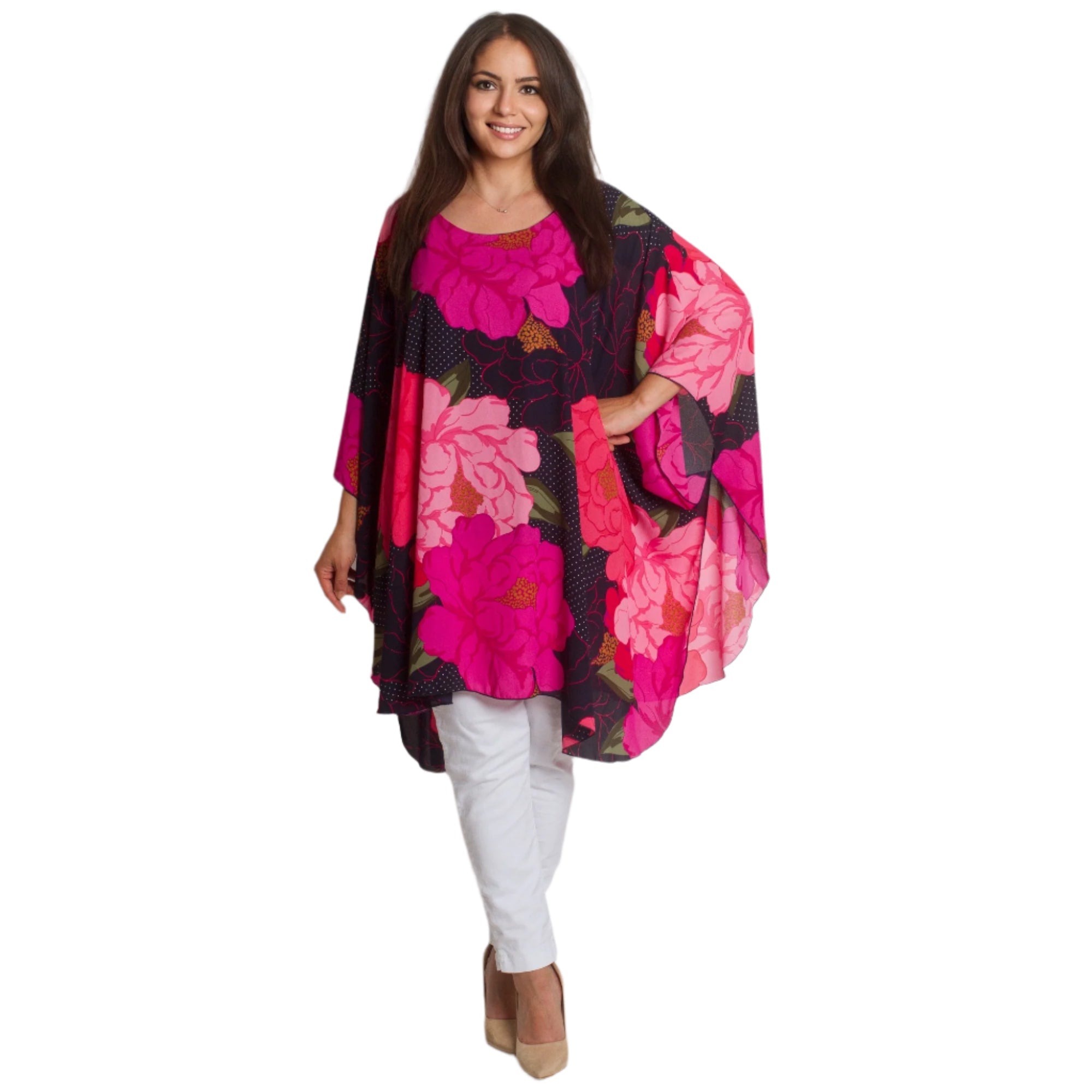 Ασύμμετρη τουνίκ από σιφόν με φόδρα και φλοράλ σχέδιο