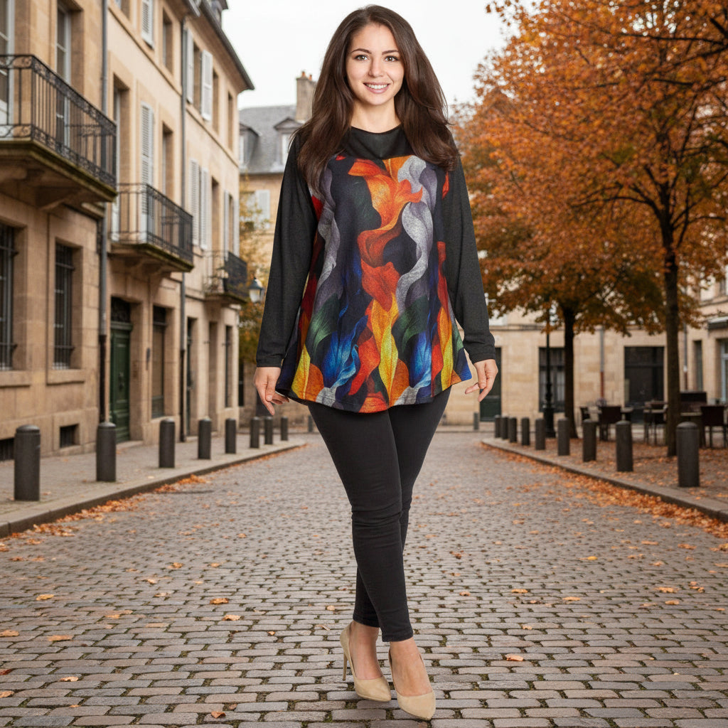 Άνετη τουνίκ με πολύχρωμο φλοράλ μοτίβο
