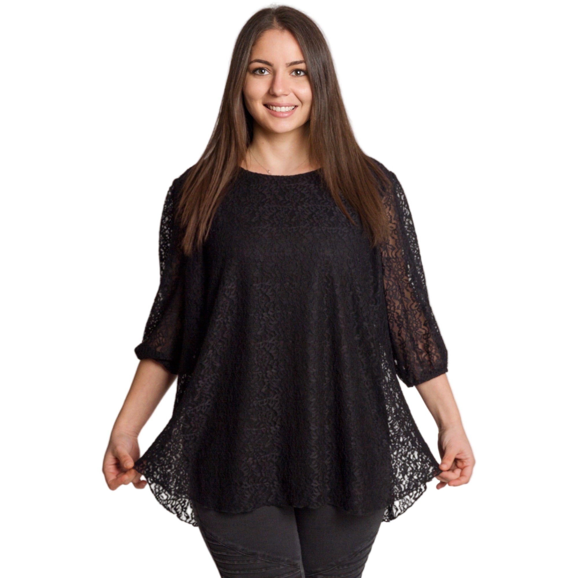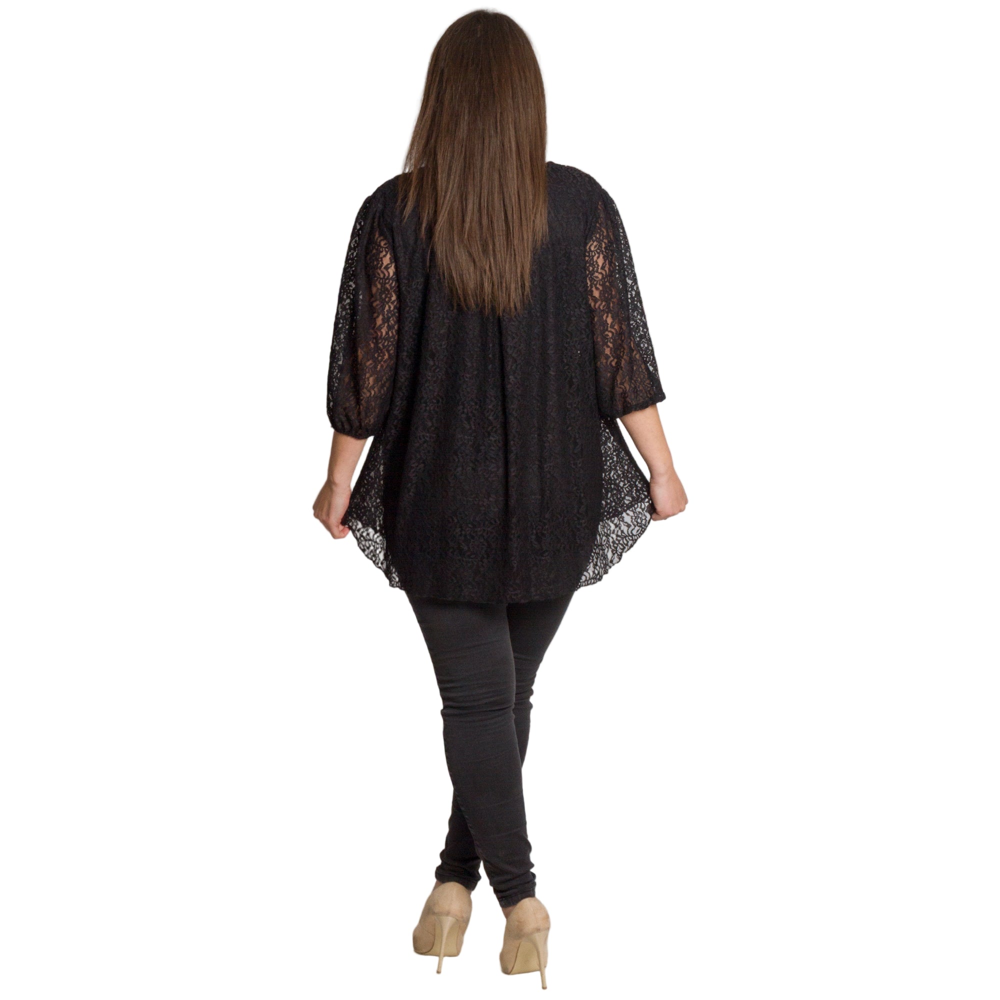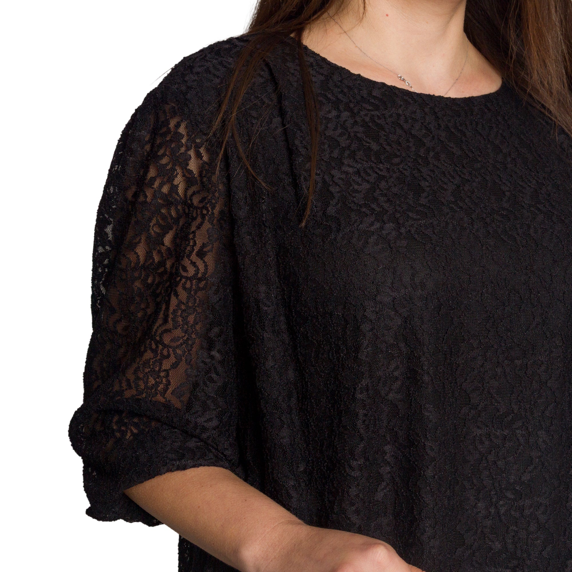 Επίσημη μαύρη δαντελένια τουνίκ με φαρδιά γραμμή