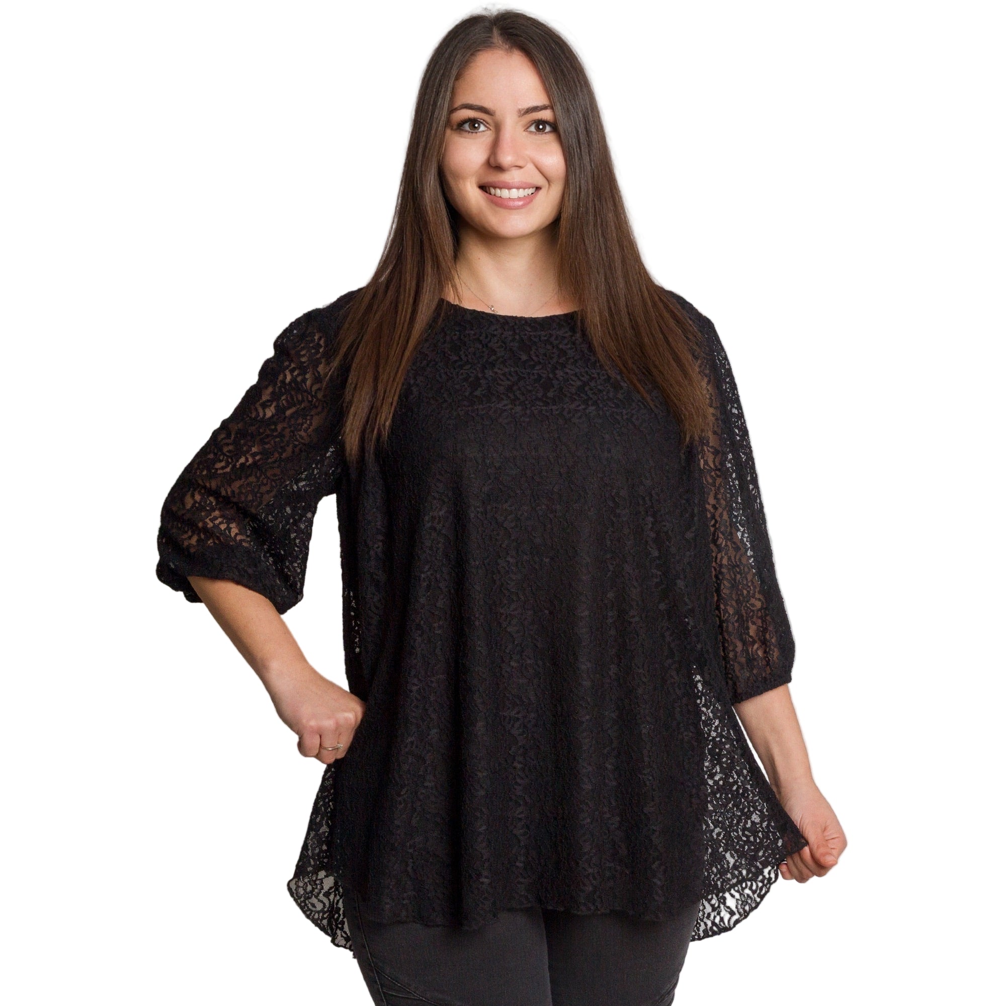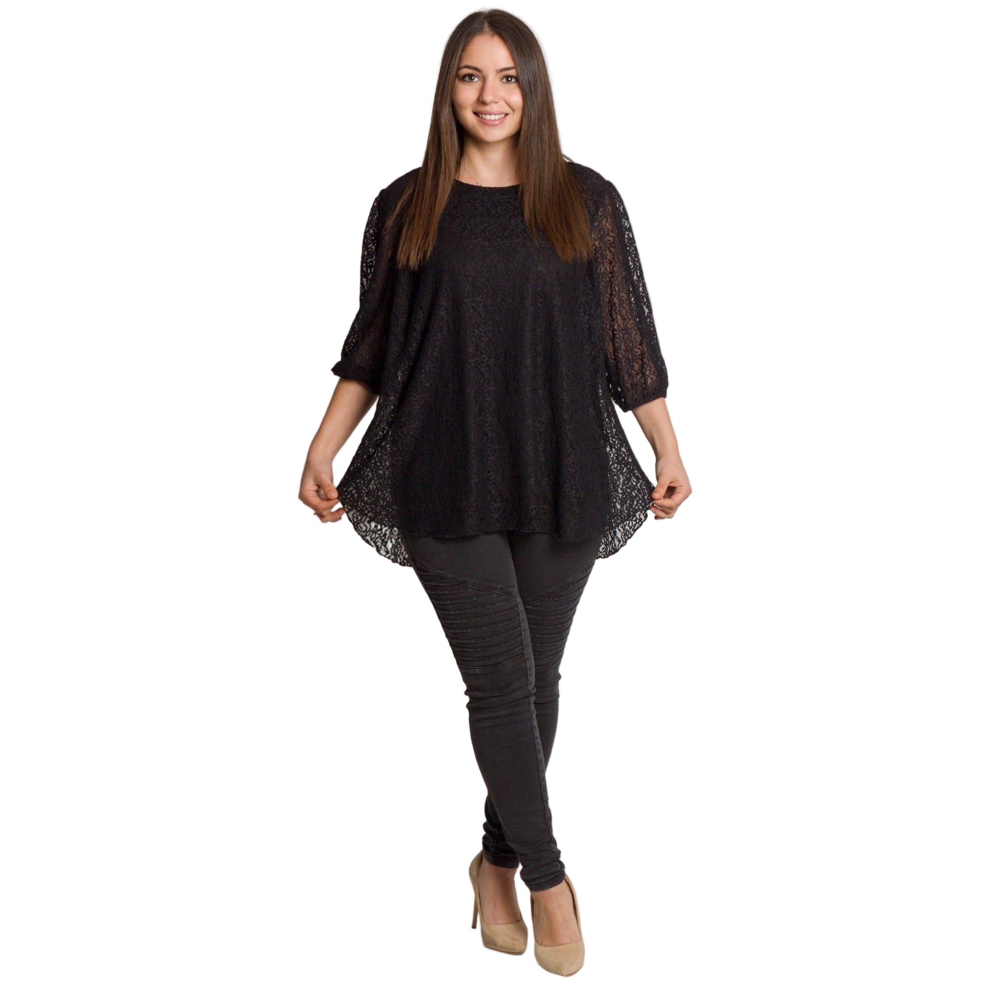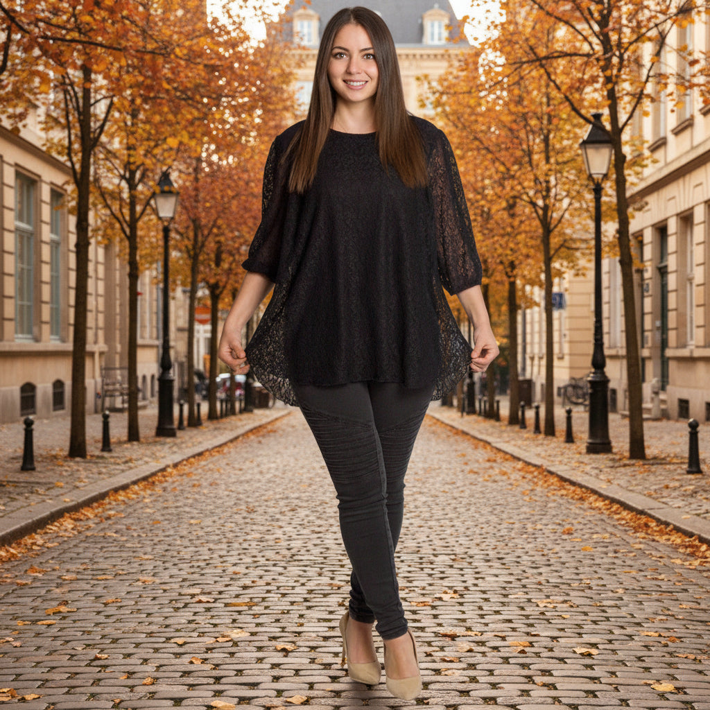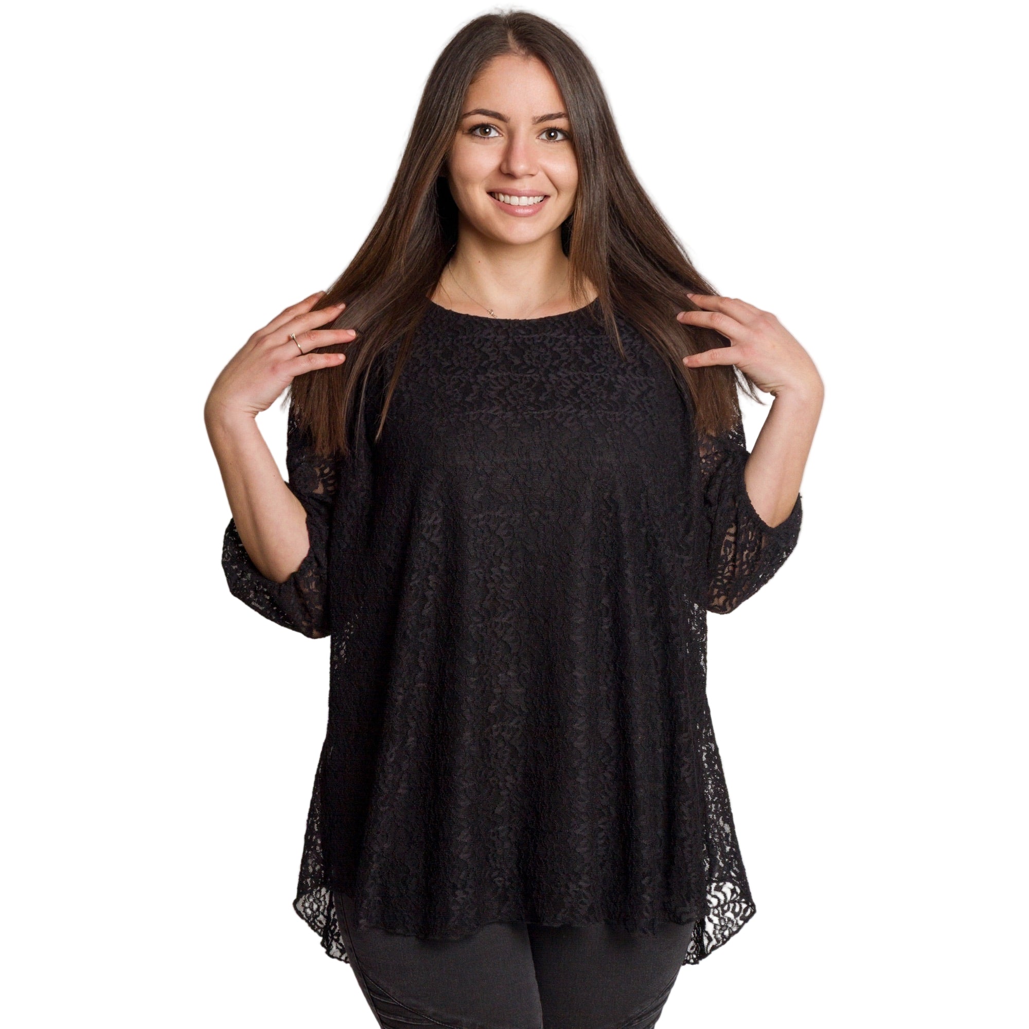 Επίσημη μαύρη δαντελένια τουνίκ με φαρδιά γραμμή