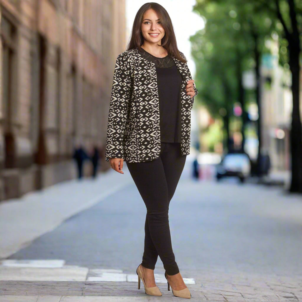 Κομψό σακάκι με γεωμετρικό μοτίβο και τσέπες