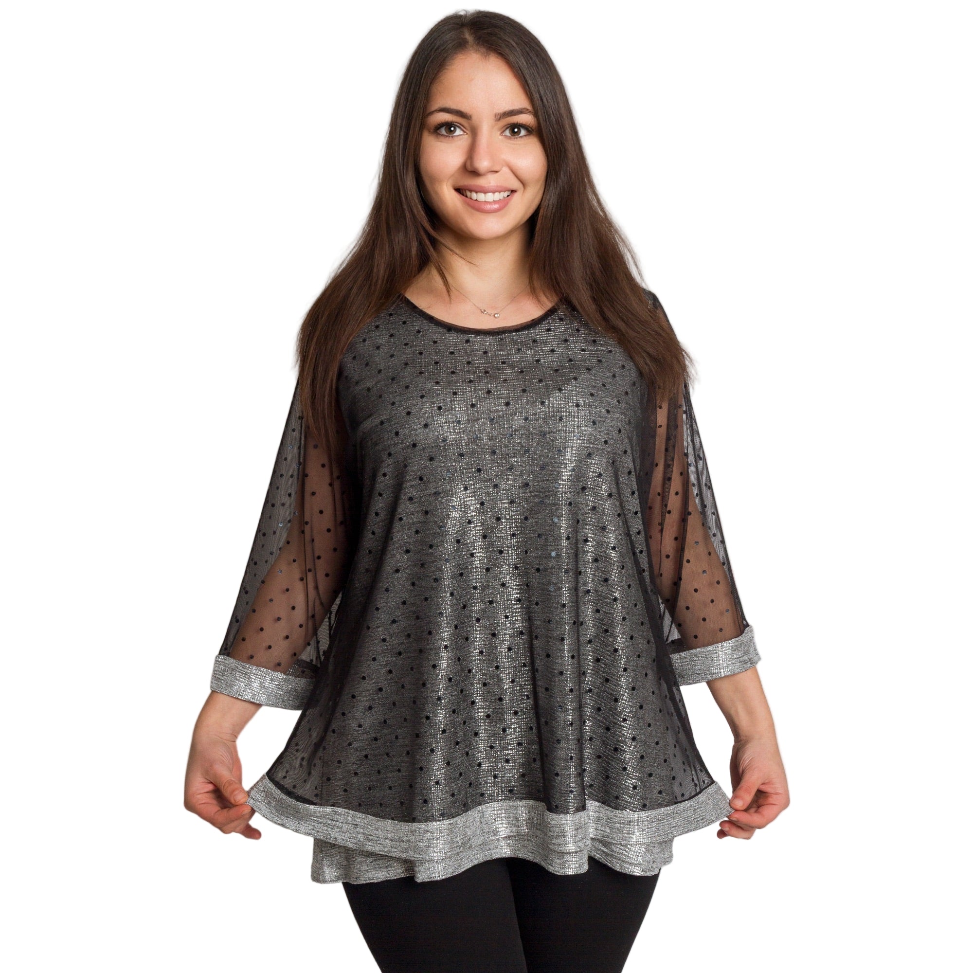 Γκρι τουνίκ με ασημί λάμψη και μανίκια 3/4