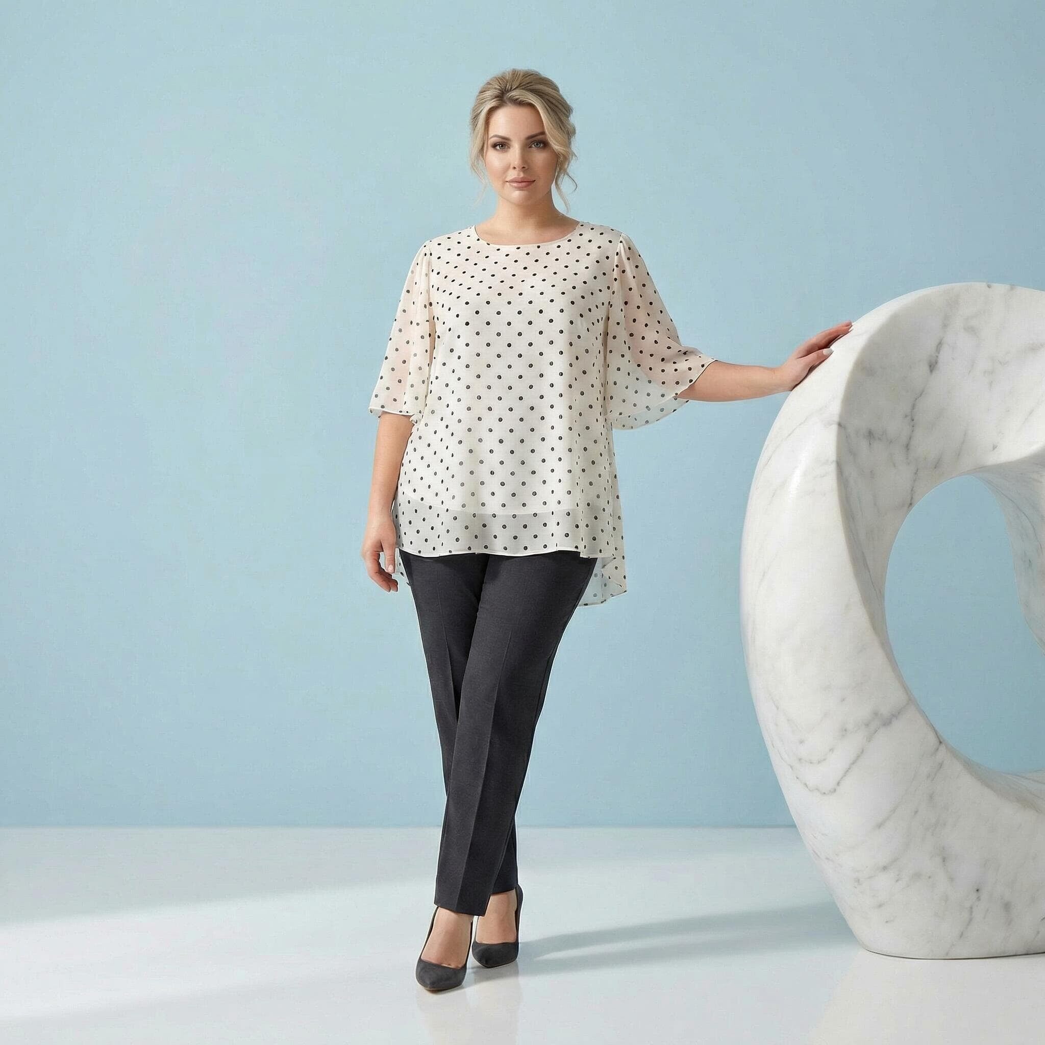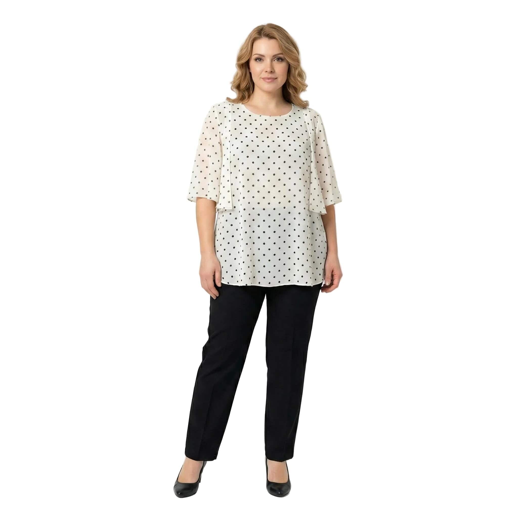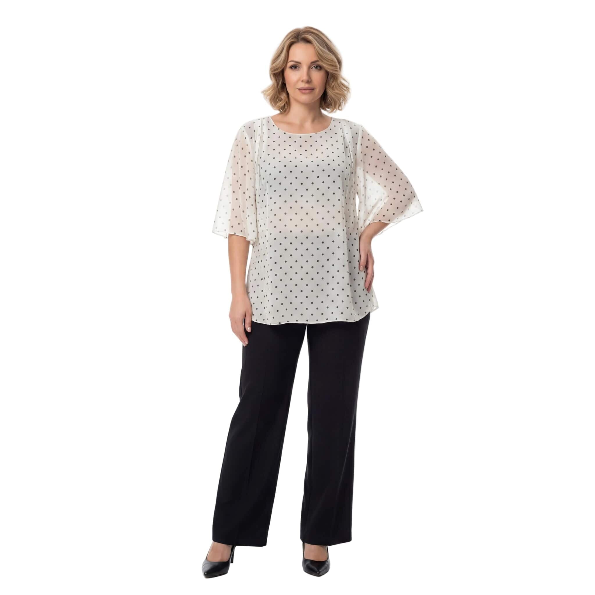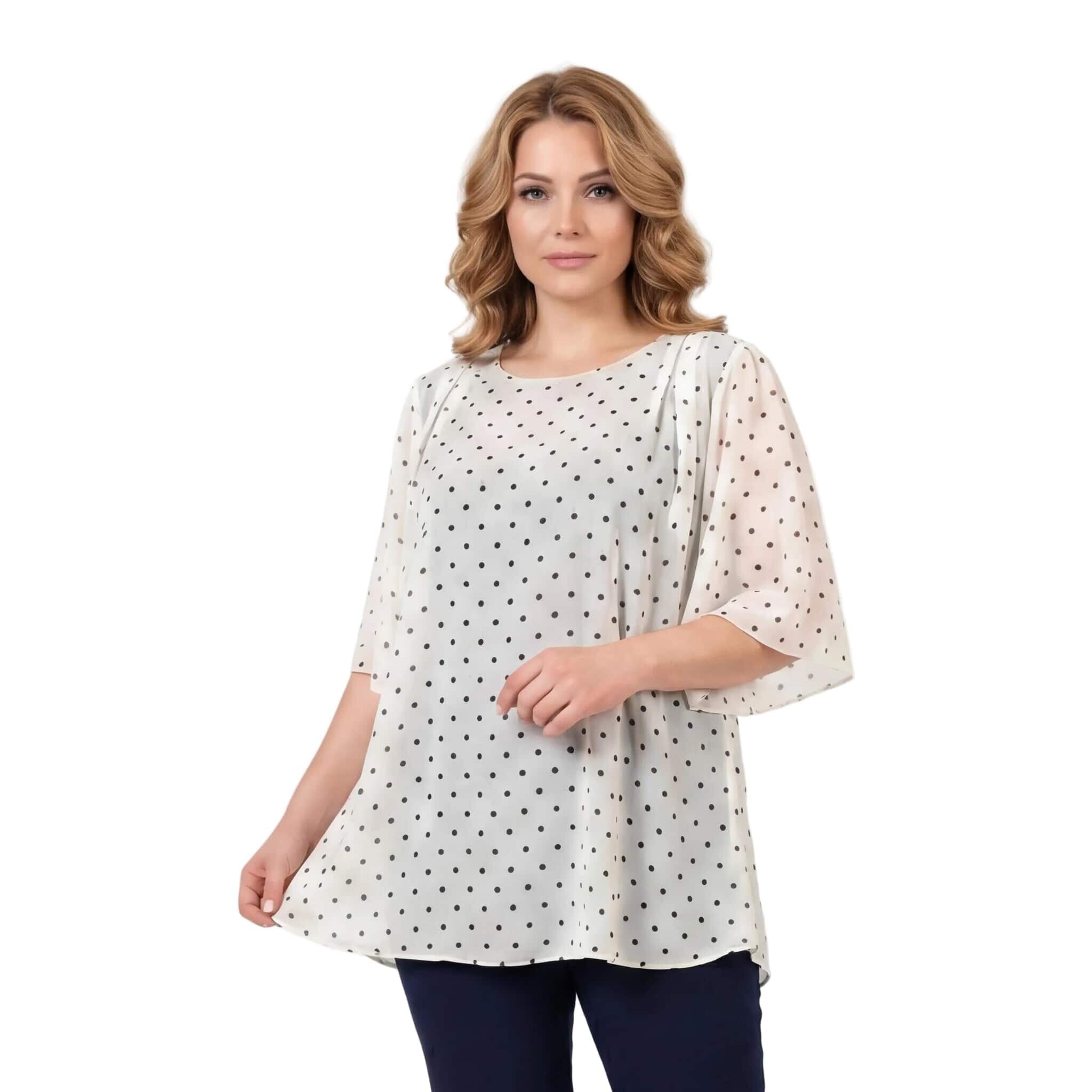Επίσημη λευκή τουνίκ από σιφόν με μαύρο πουά μεγάλα μεγέθη