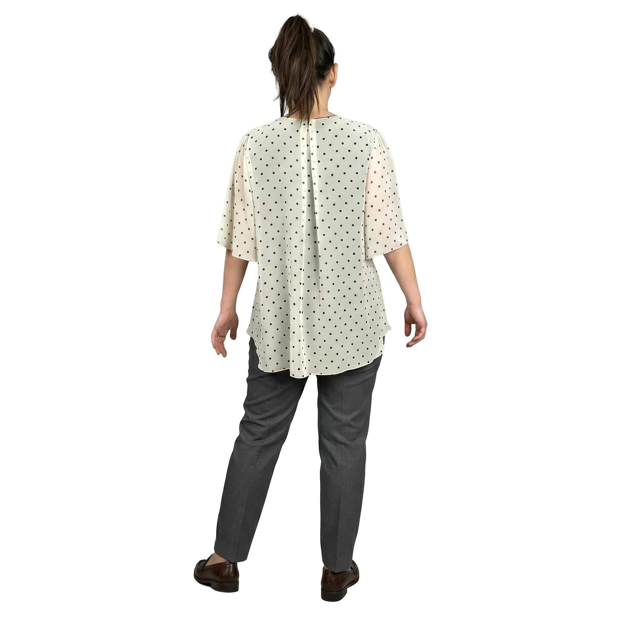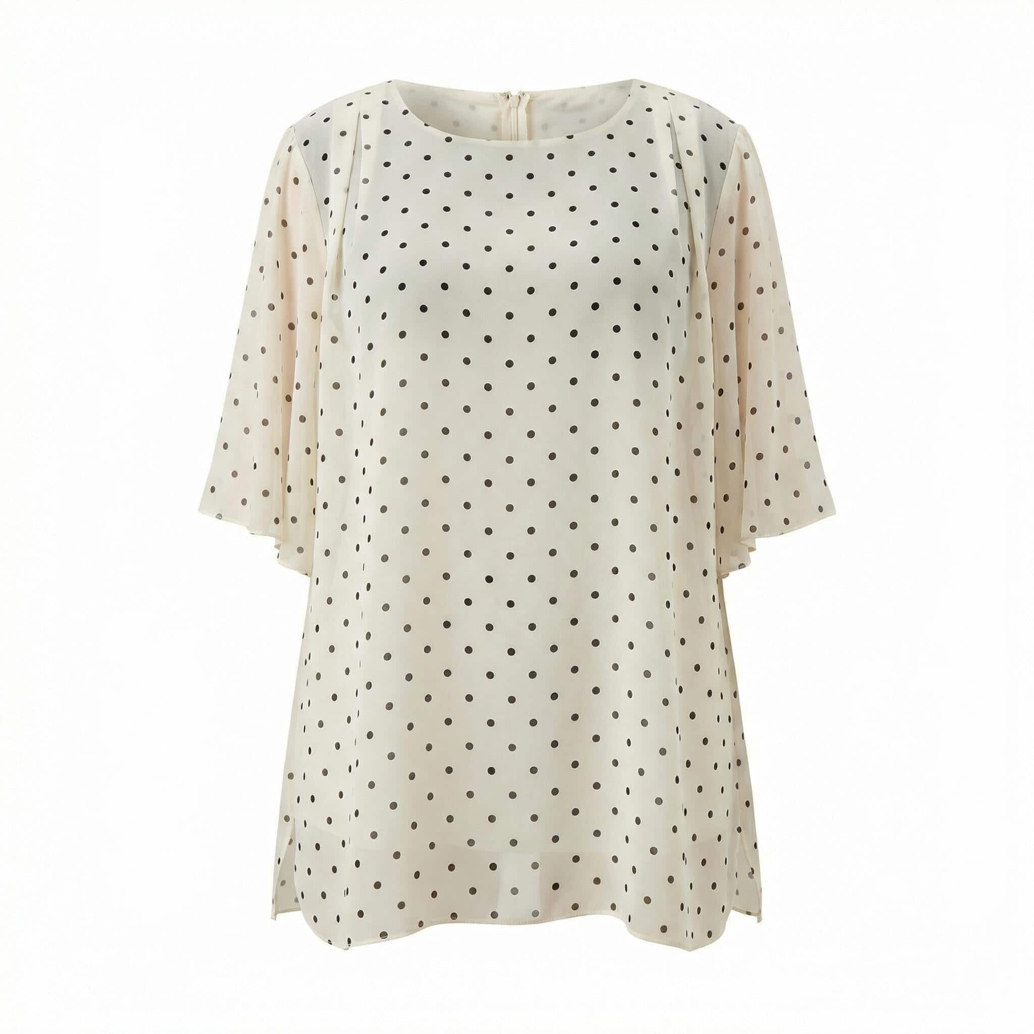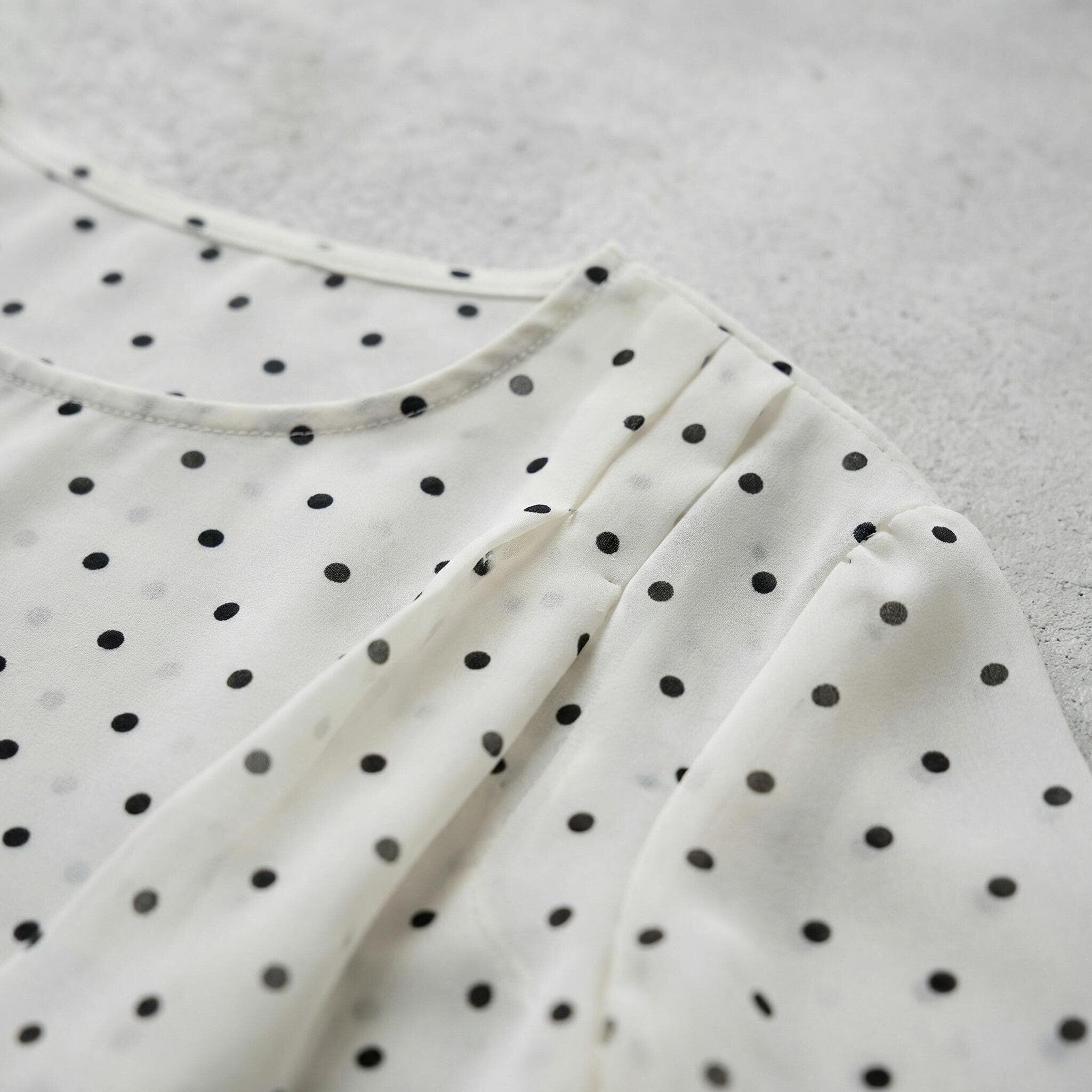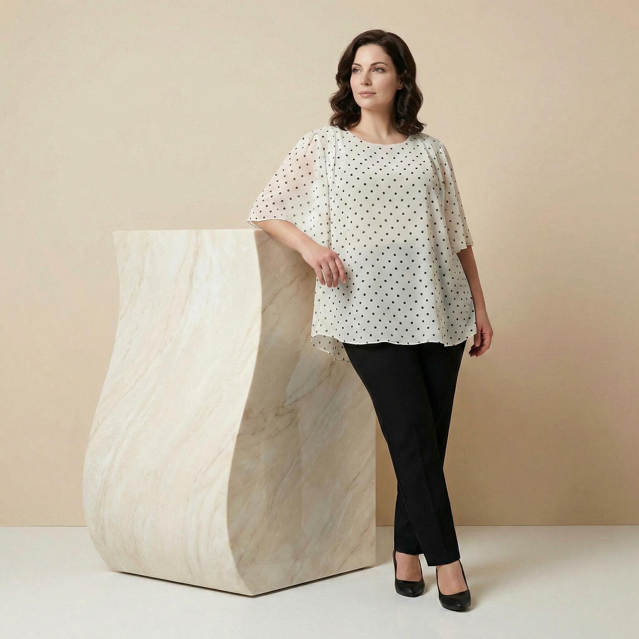 Επίσημη λευκή τουνίκ από σιφόν με μαύρο πουά μεγάλα μεγέθη
