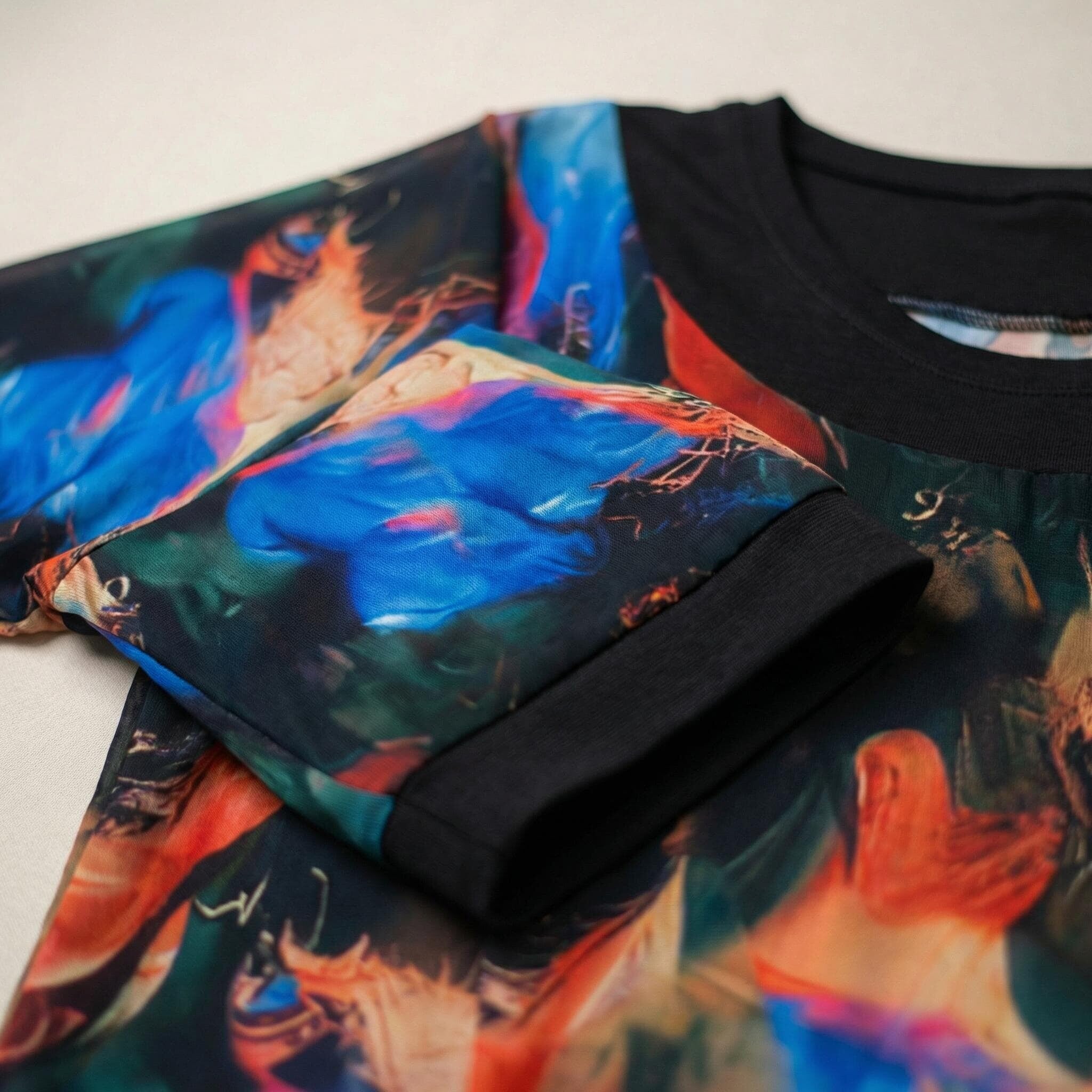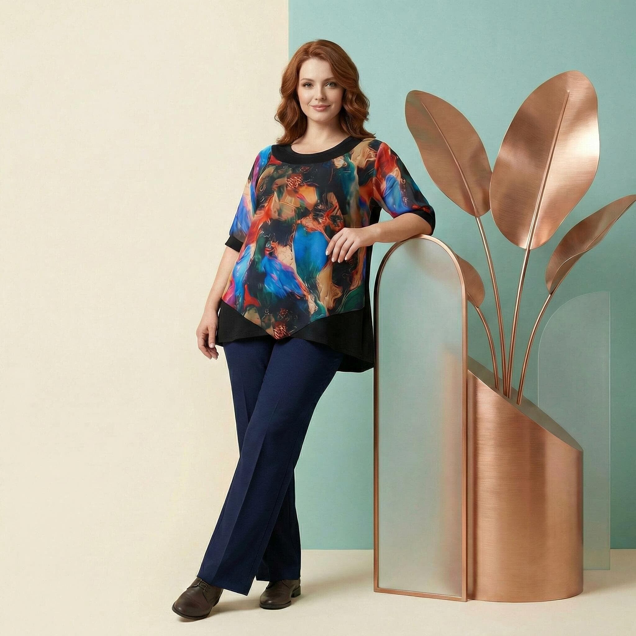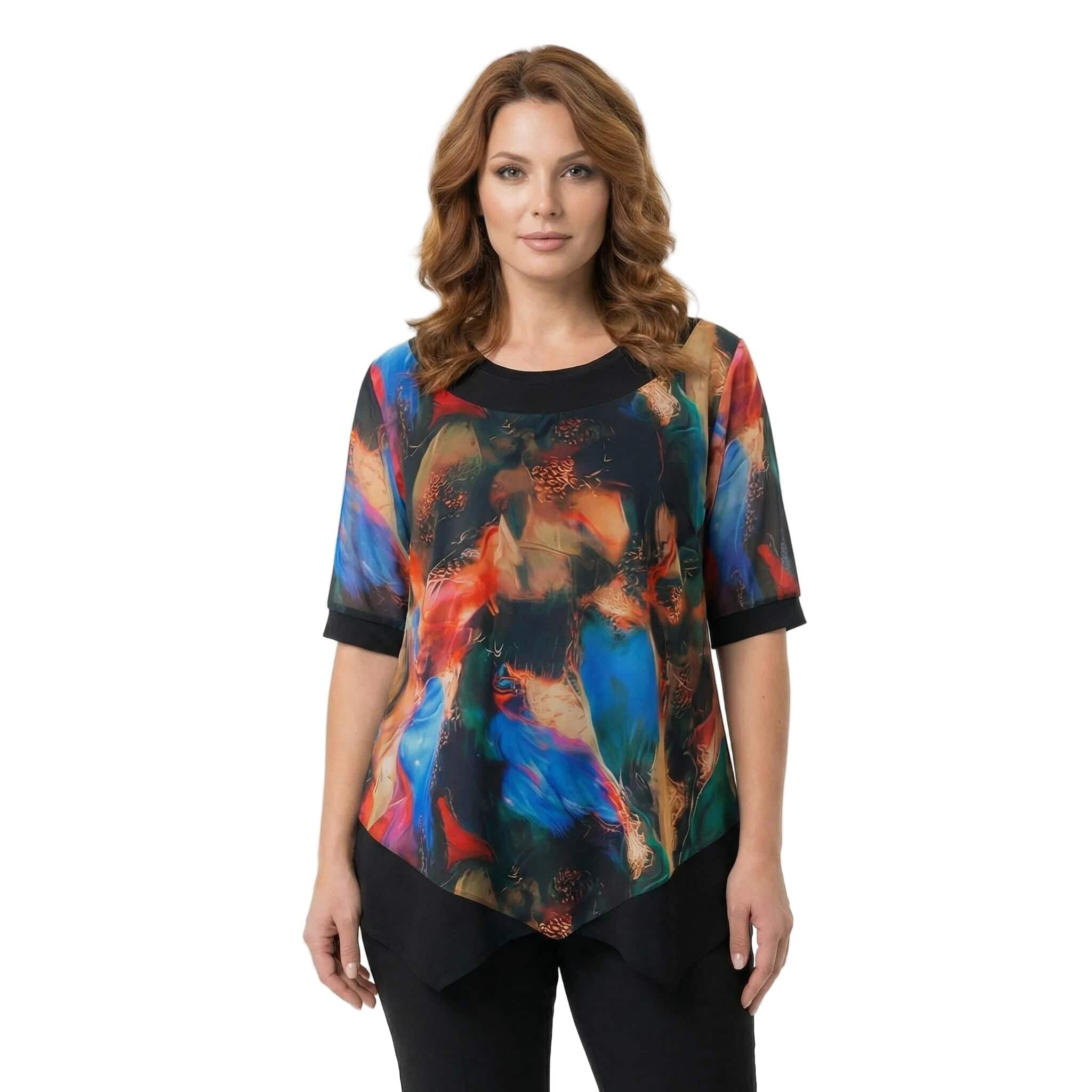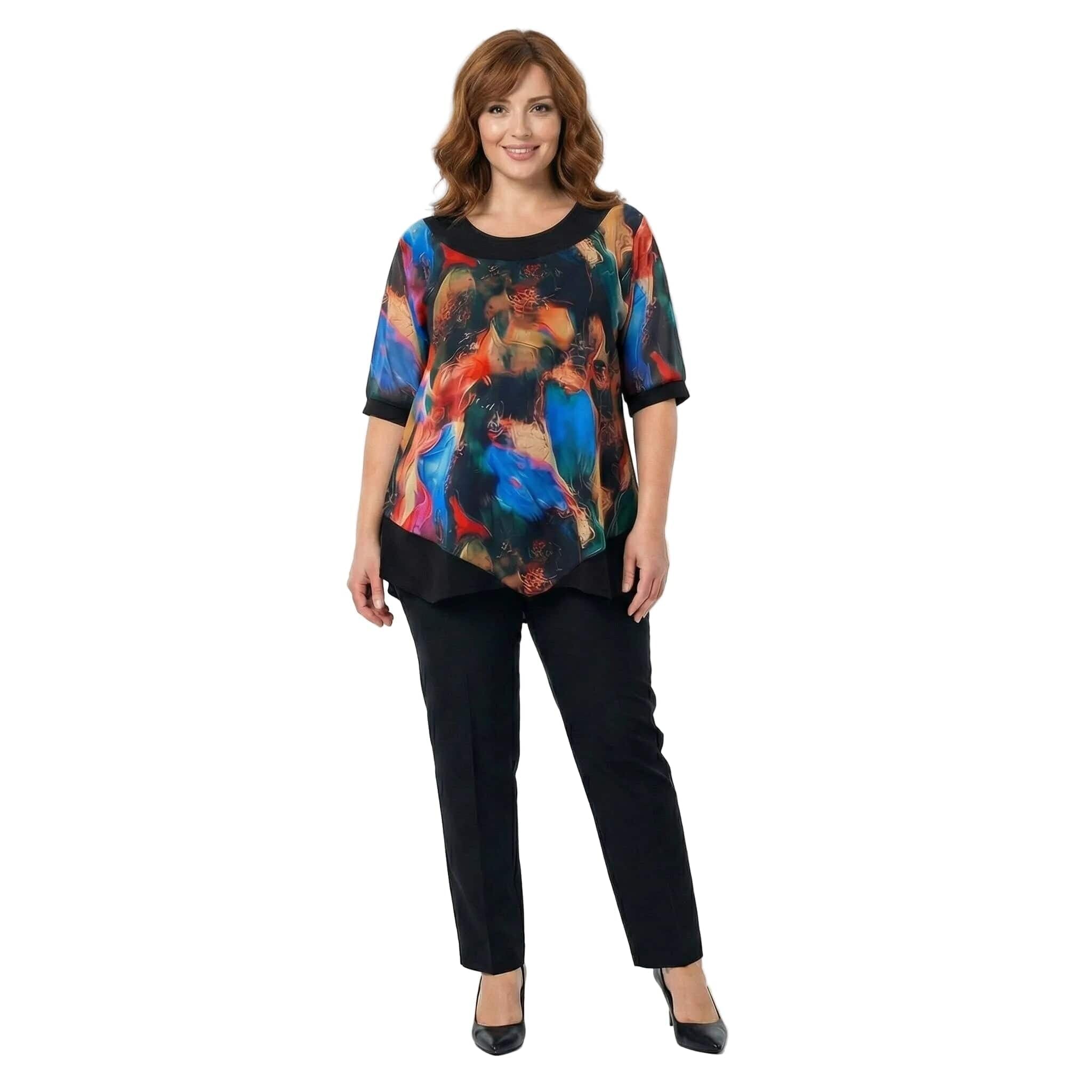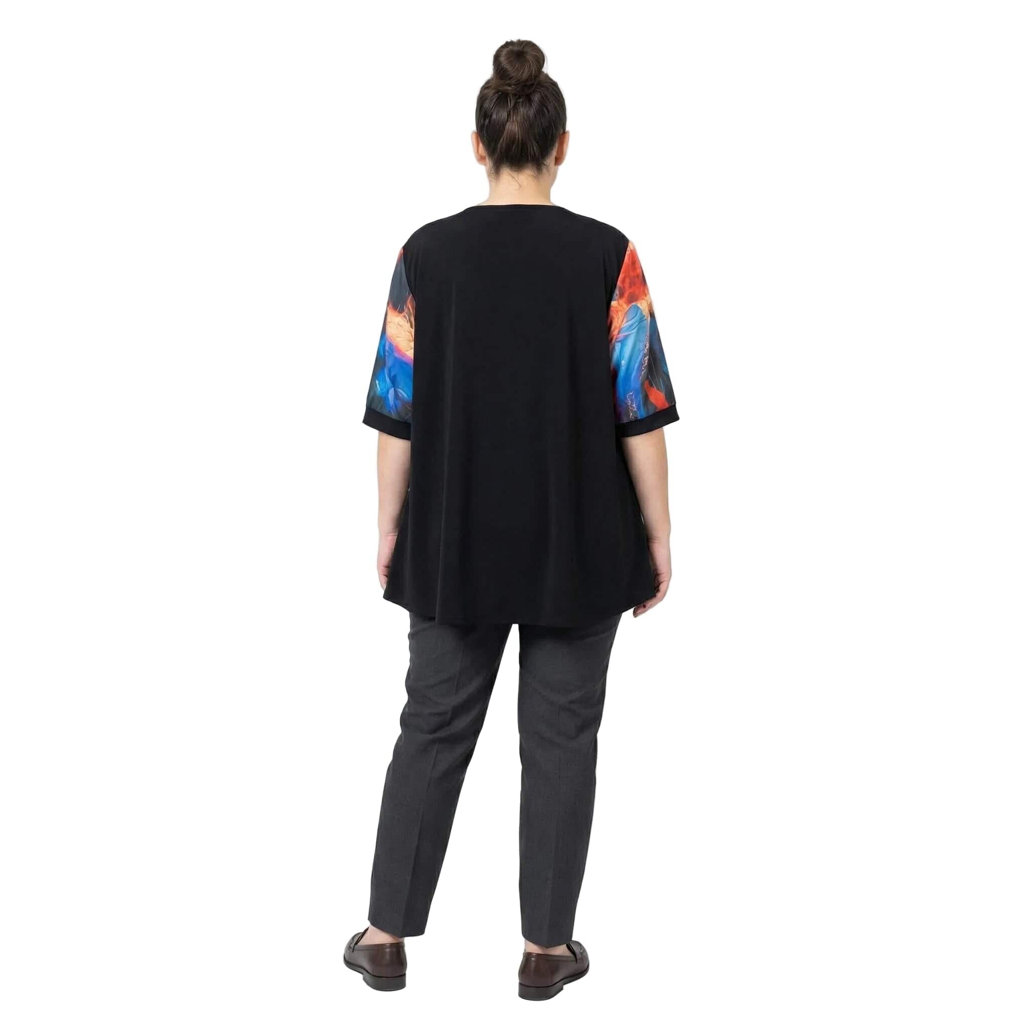 Επίσημη μαύρη τουνίκ με ασύμμετρο σιφόν και πολύχρωμο print