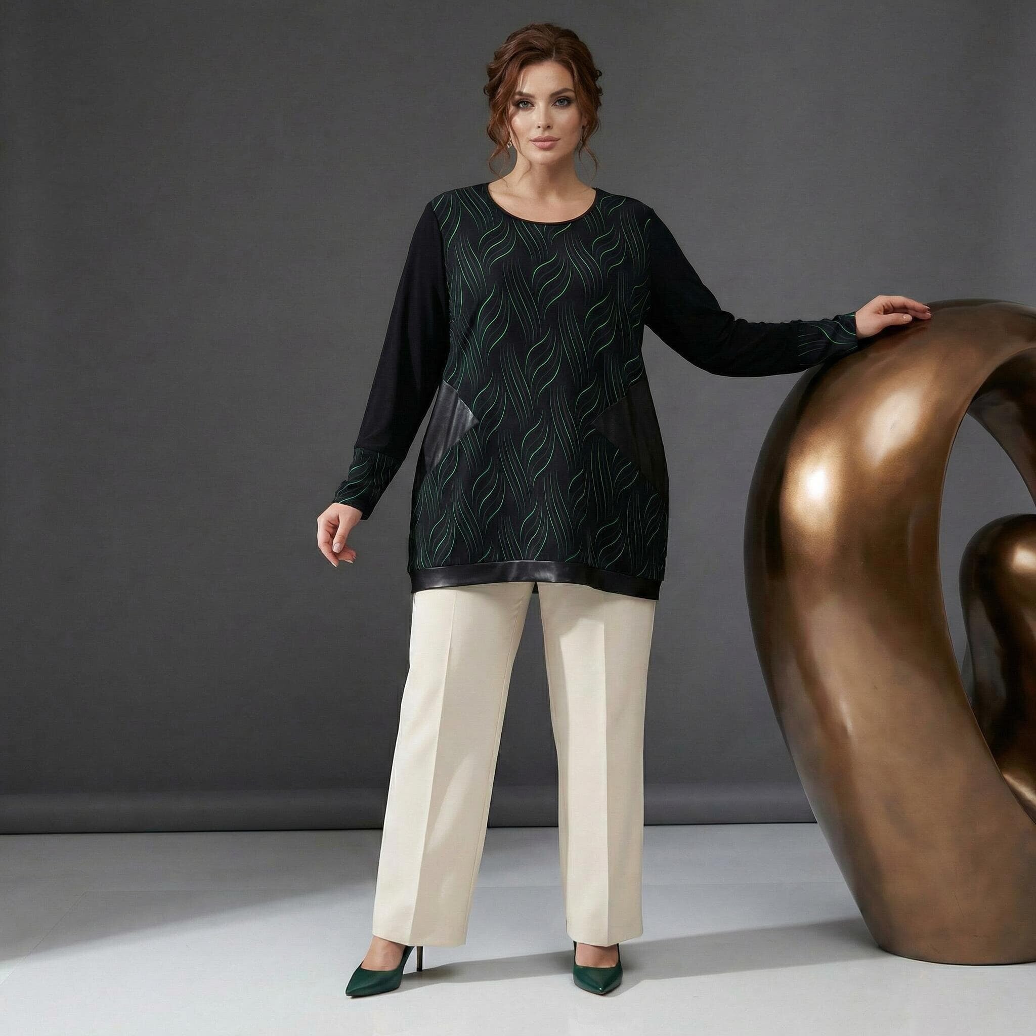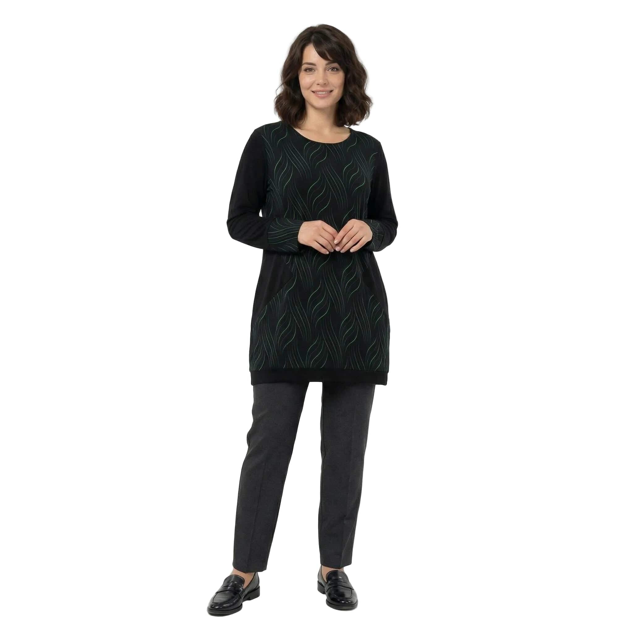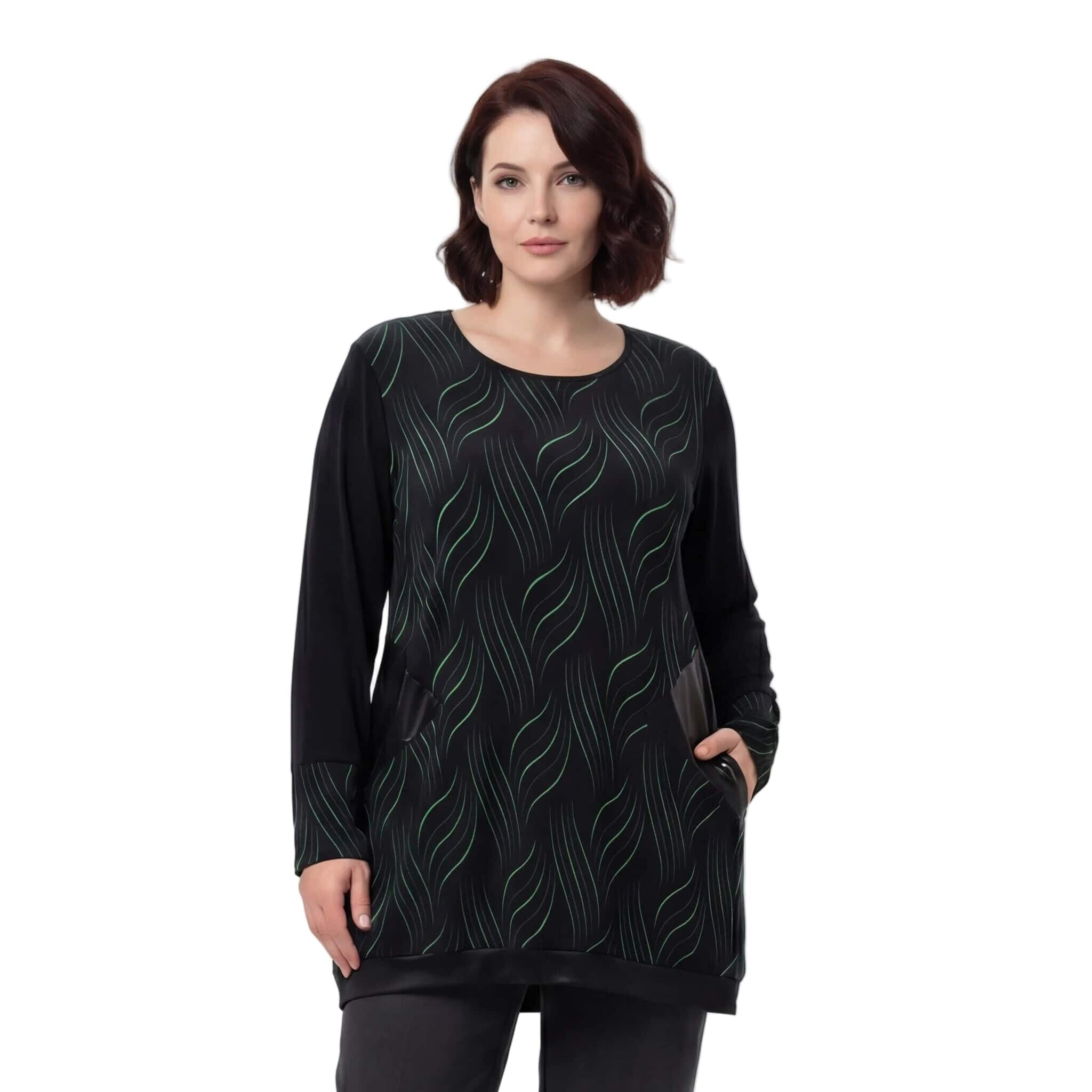 Επίσημη μαύρη τουνίκ με τσέπες και λεπτομέρειες από δερματίνη