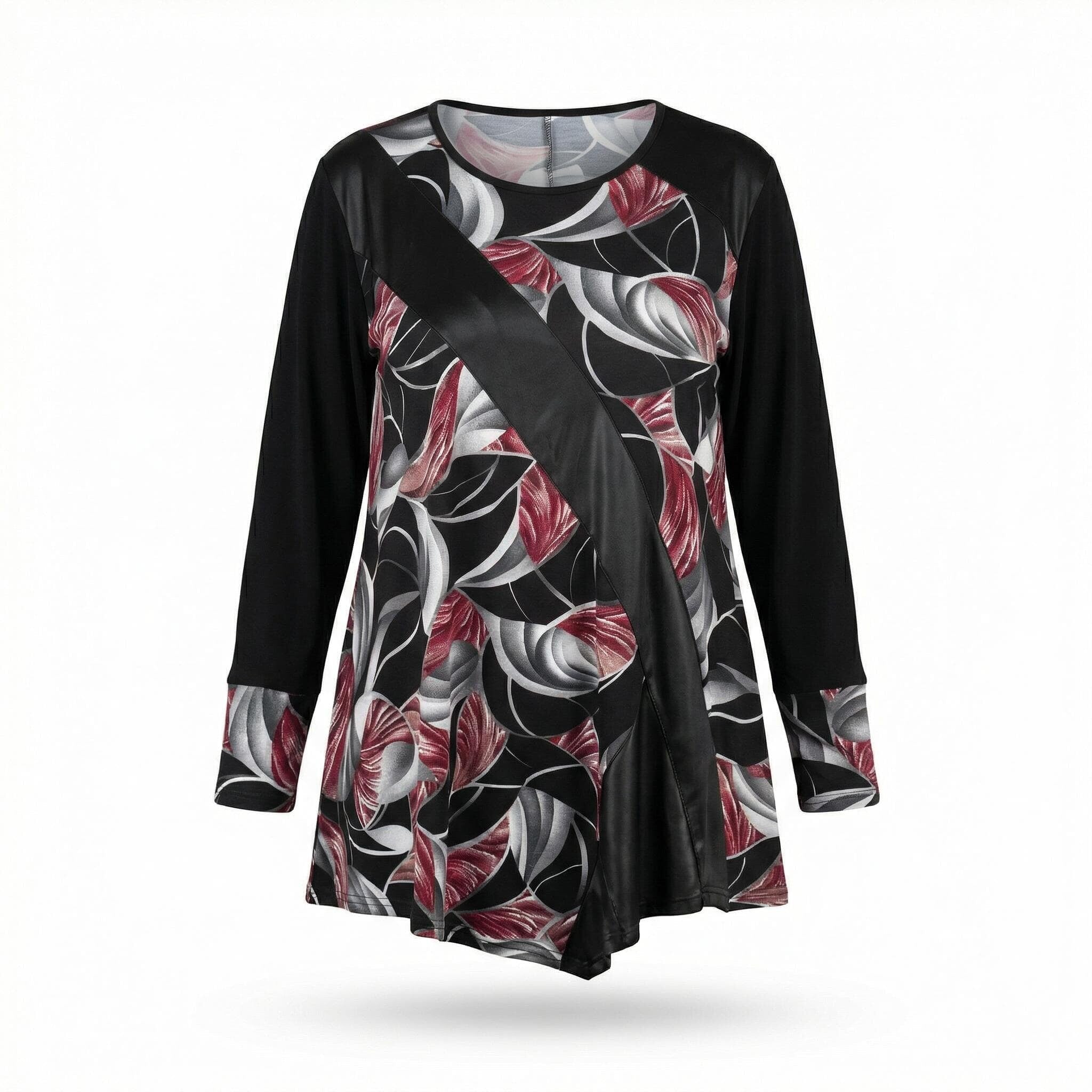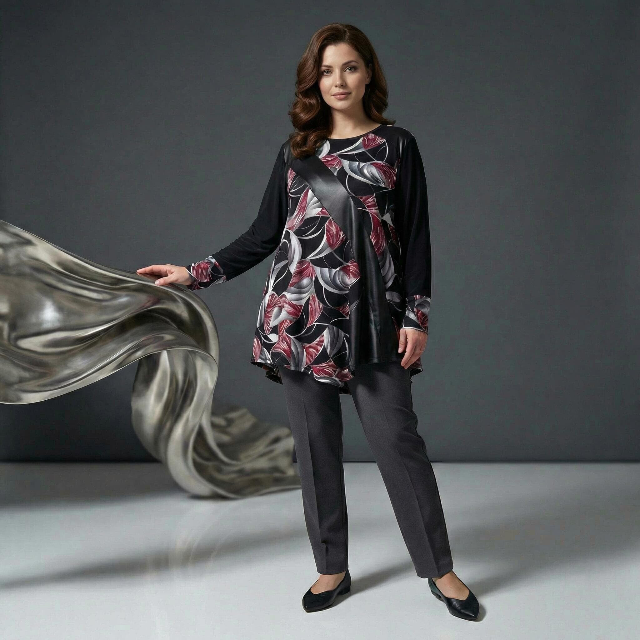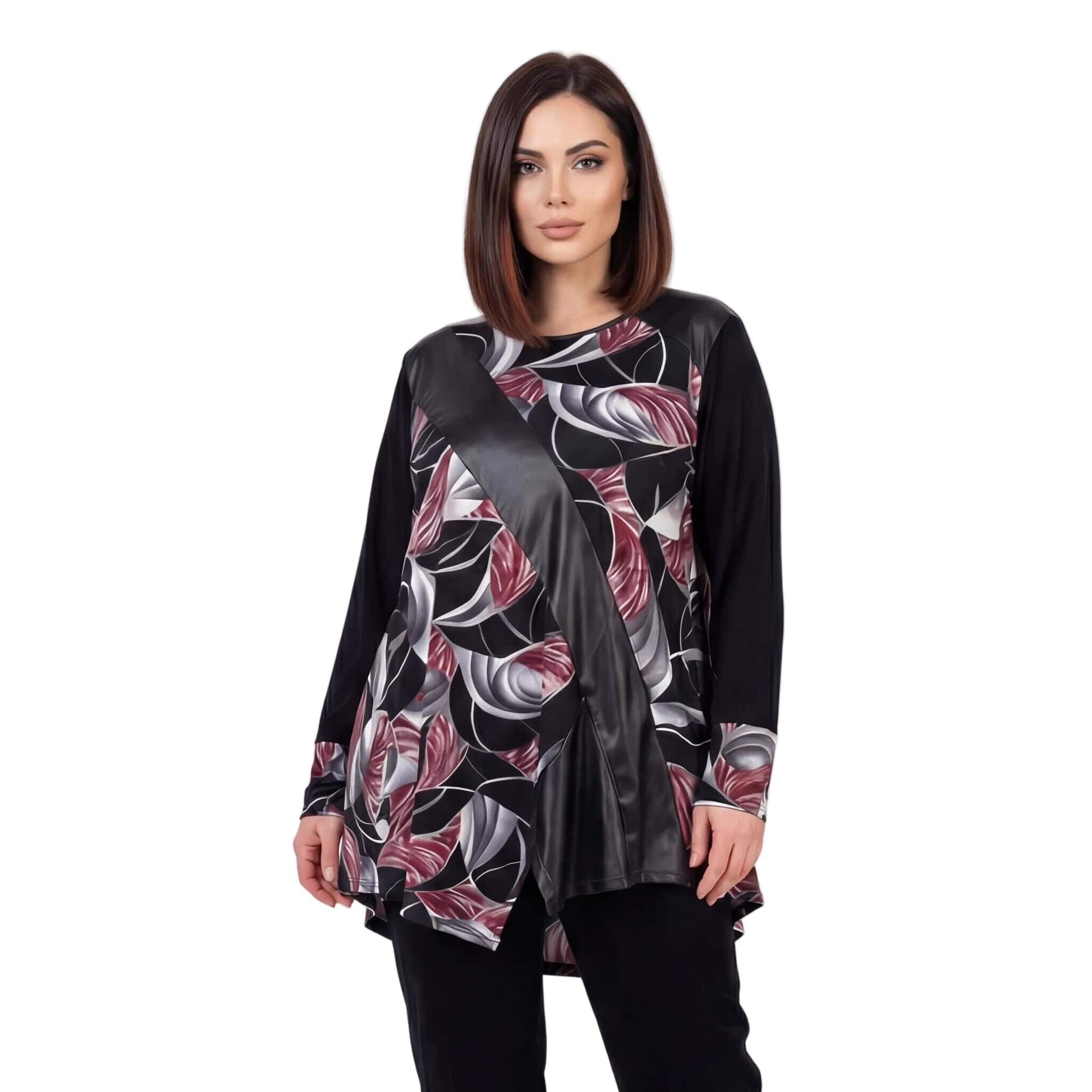 Επίσημη ριχτή τουνίκ plus size με δερματίνη και print