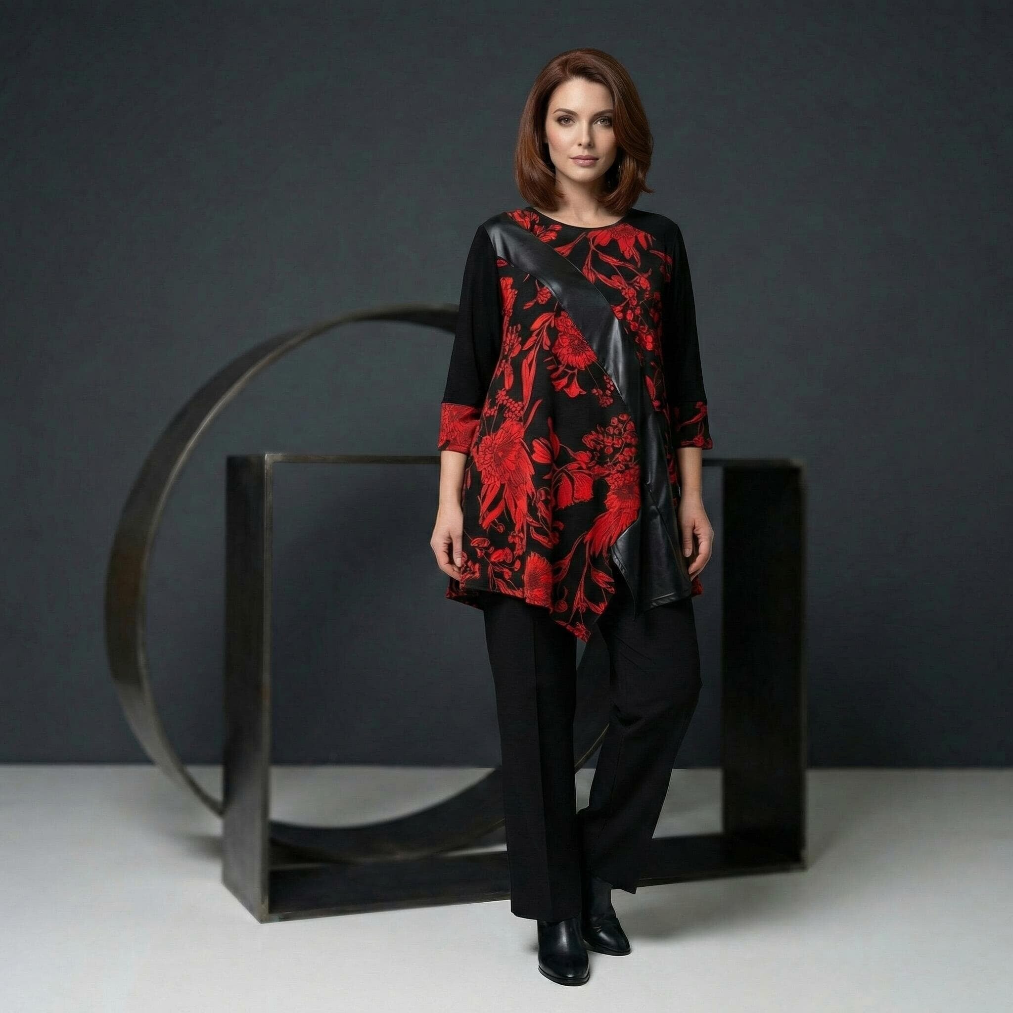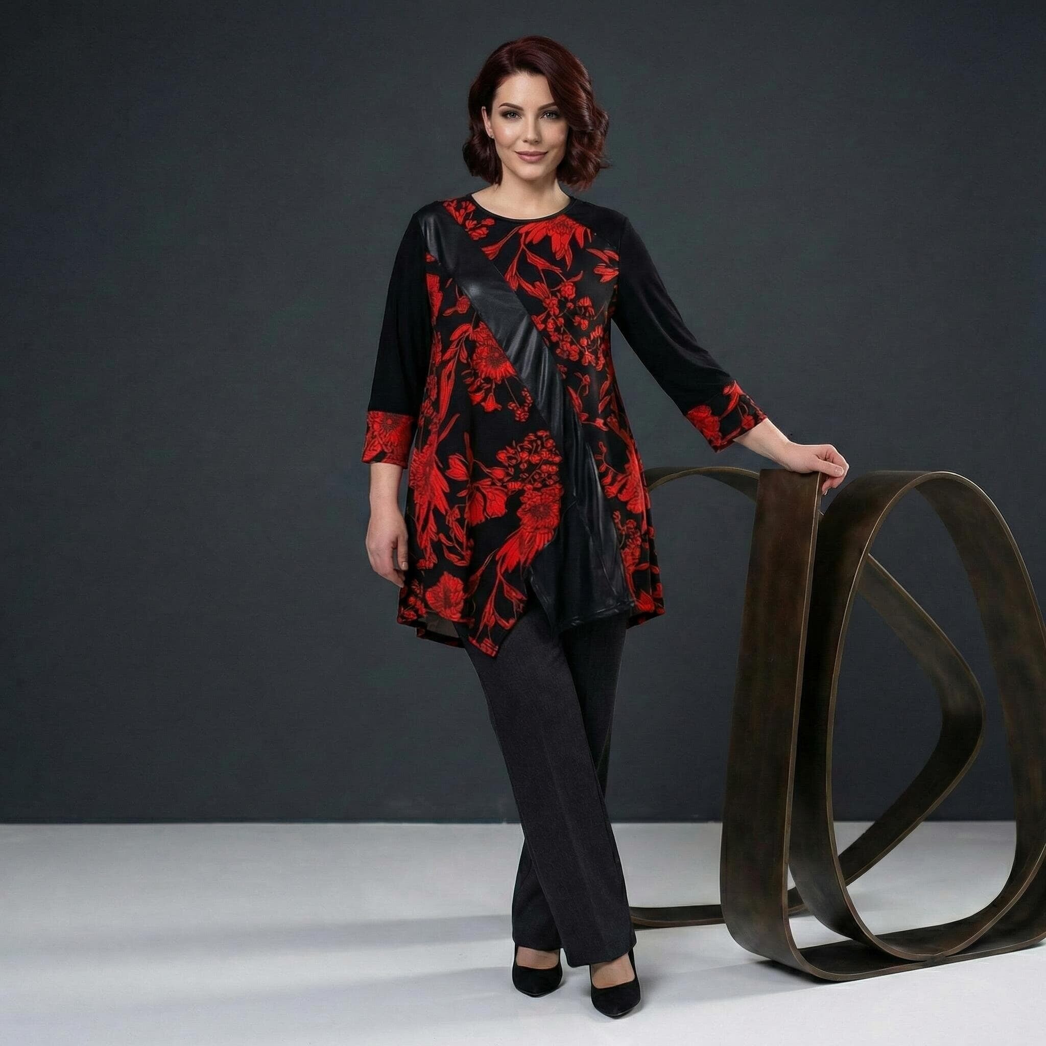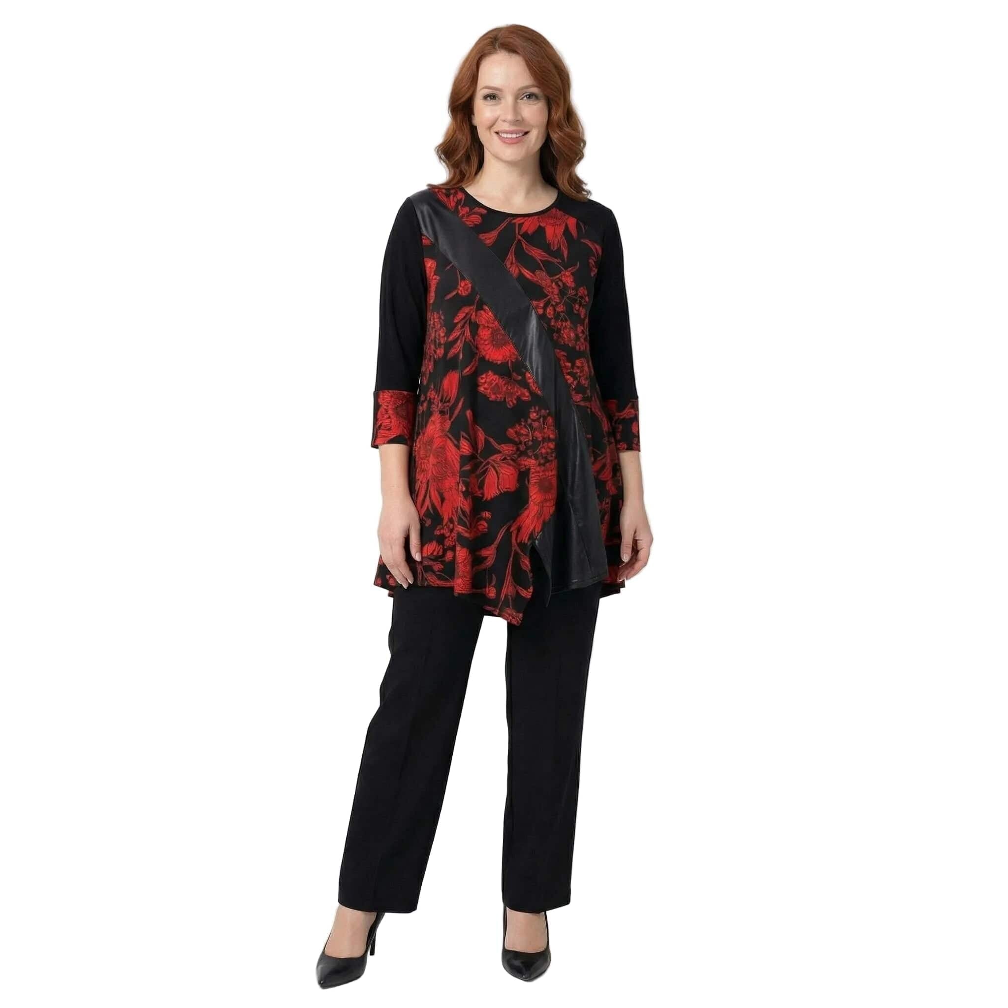 Επίσημη τουνίκ με δερματίνη και κόκκινα λουλούδια σε μεγάλα μεγέθη