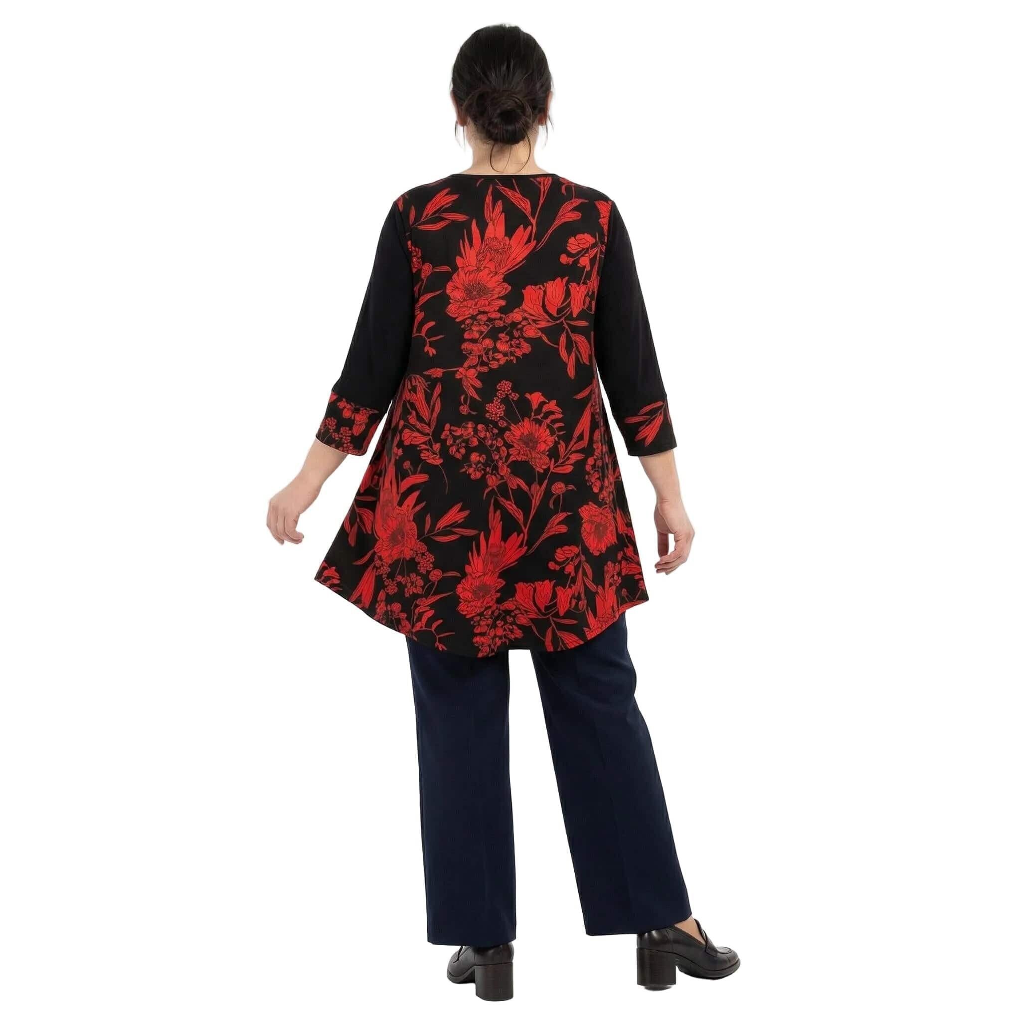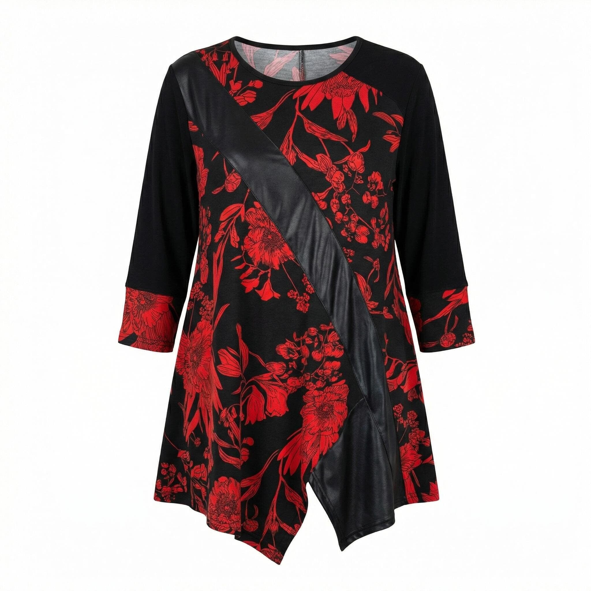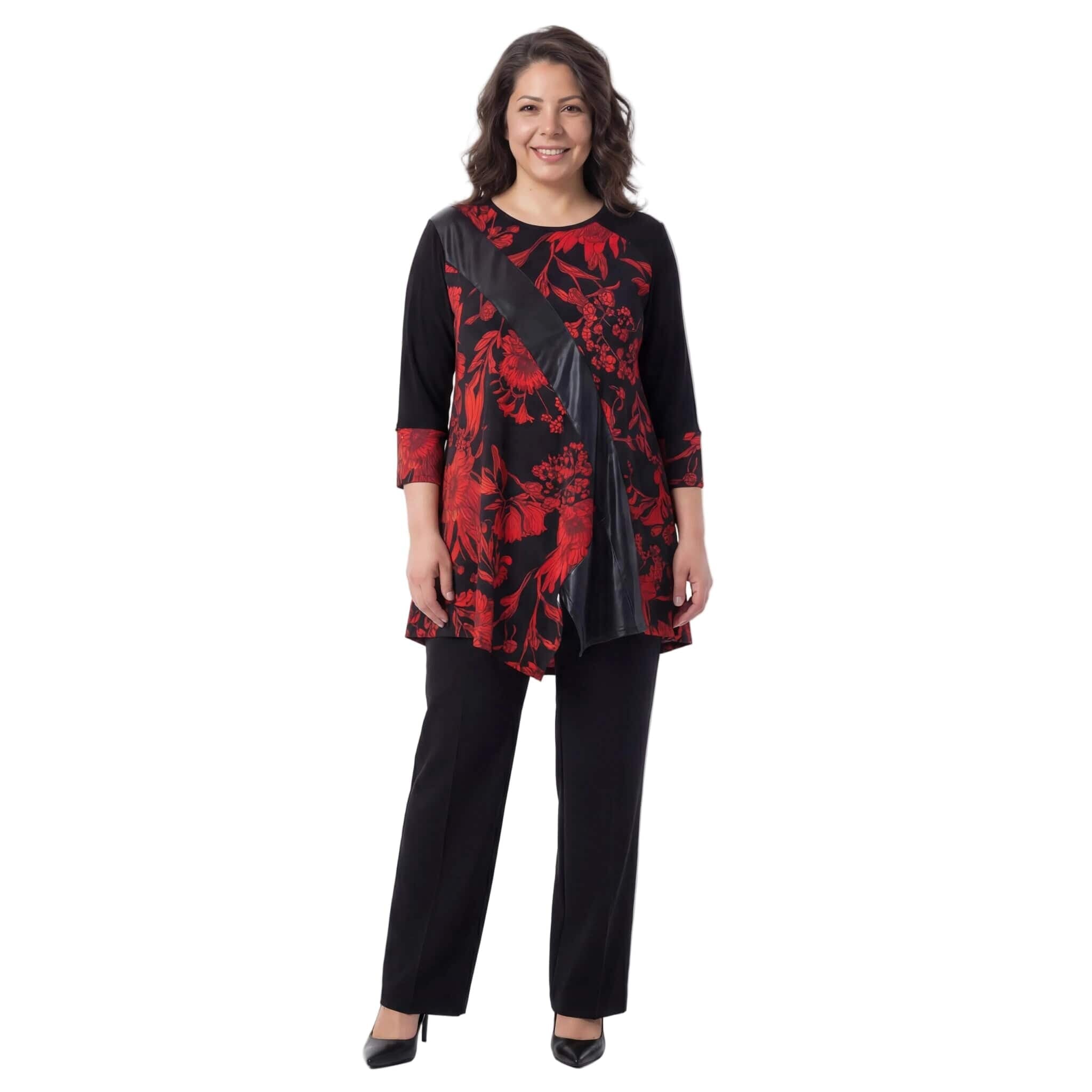 Επίσημη τουνίκ με δερματίνη και κόκκινα λουλούδια σε μεγάλα μεγέθη