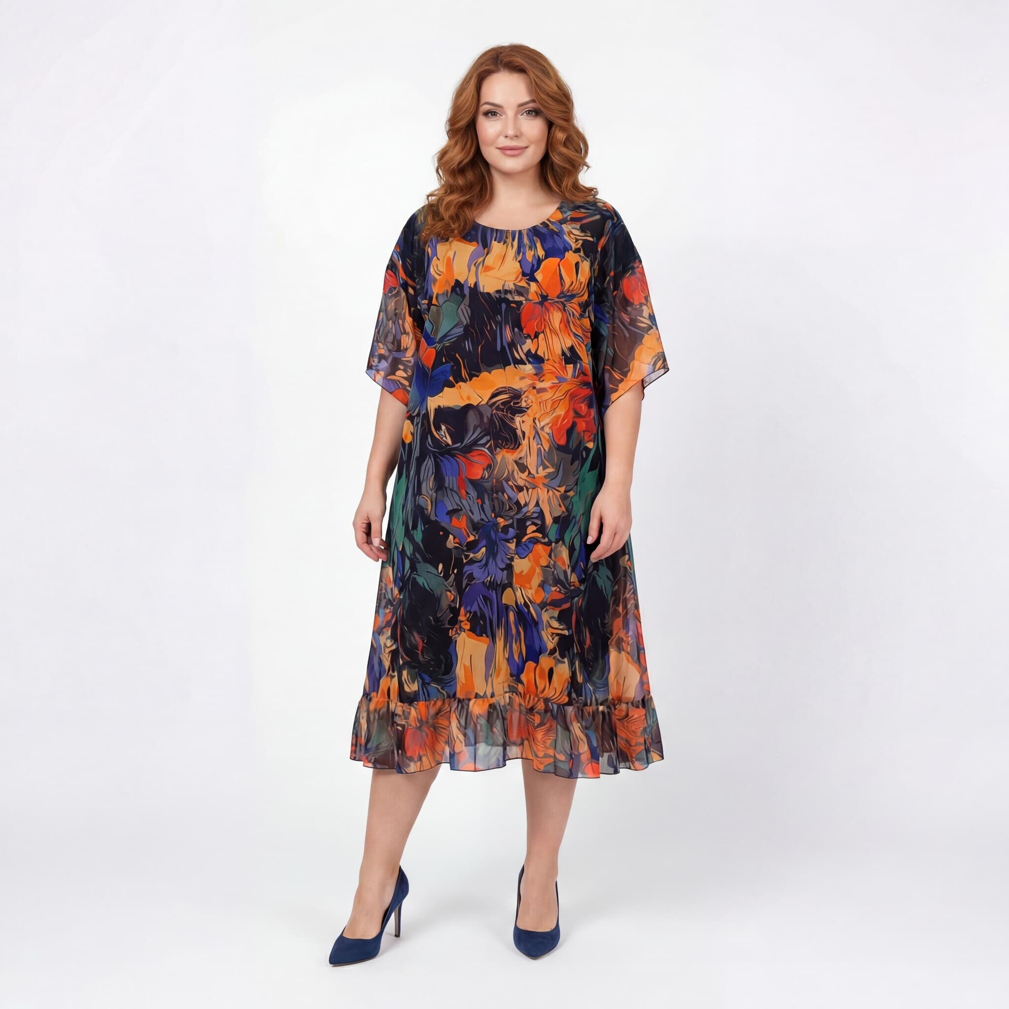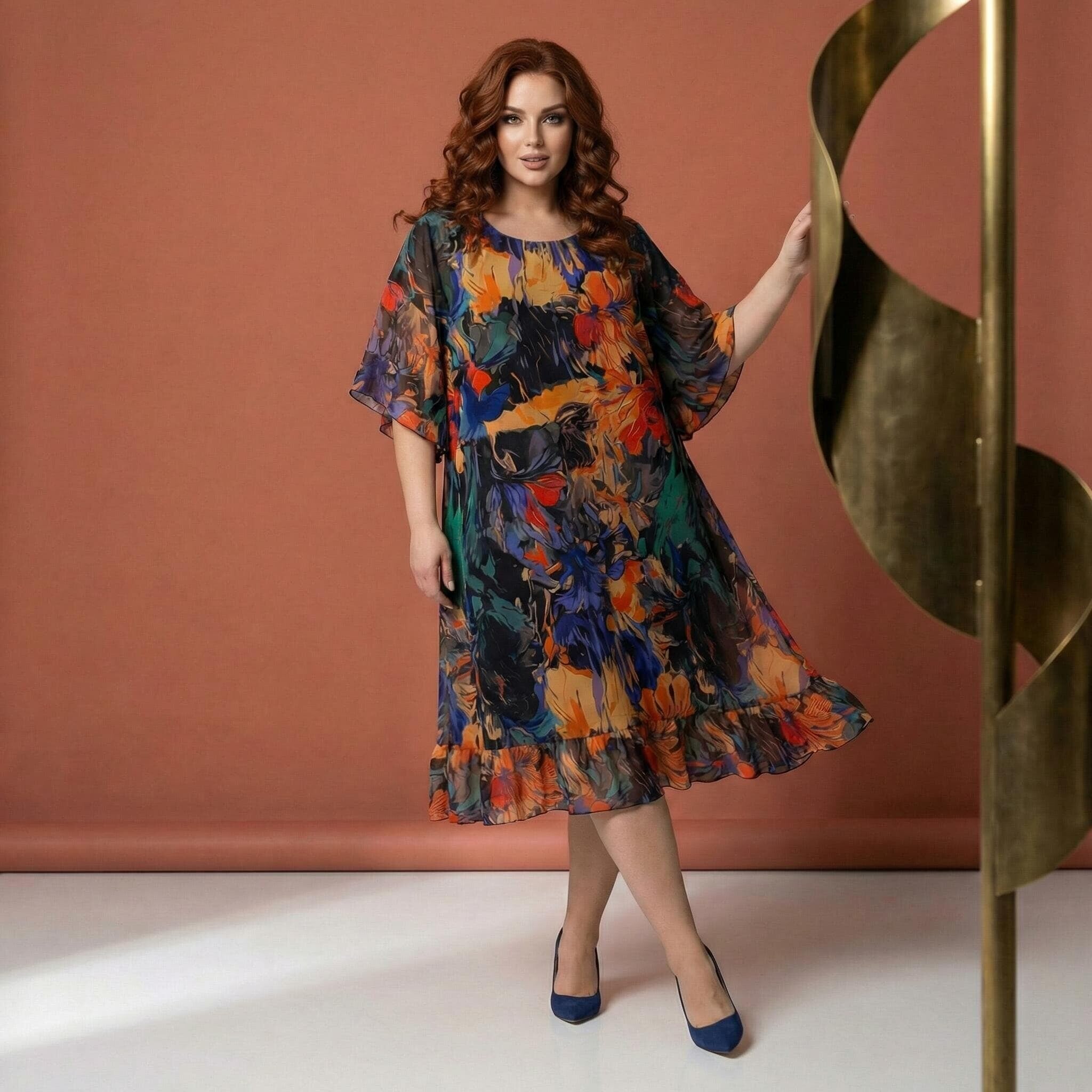 Επίσημο αέρινο εβαζέ φόρεμα σιφόν με χρωματιστό σχέδιο