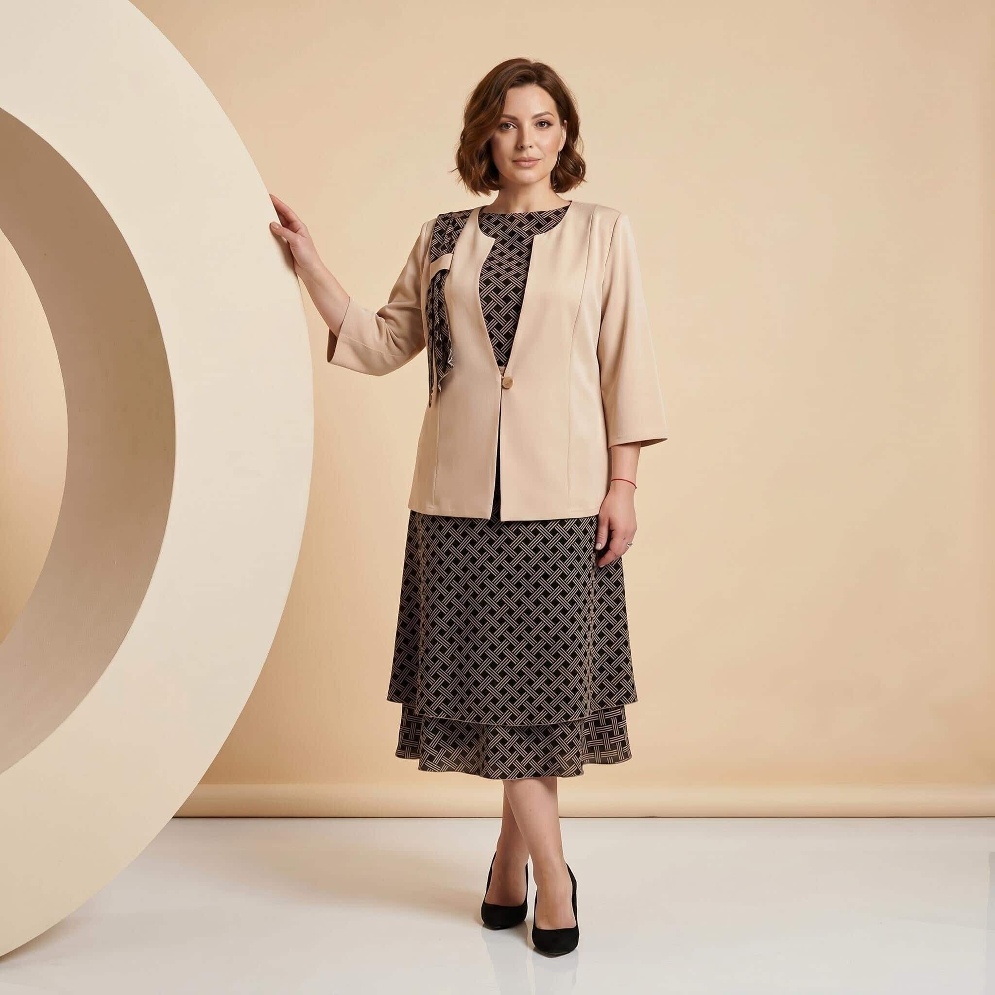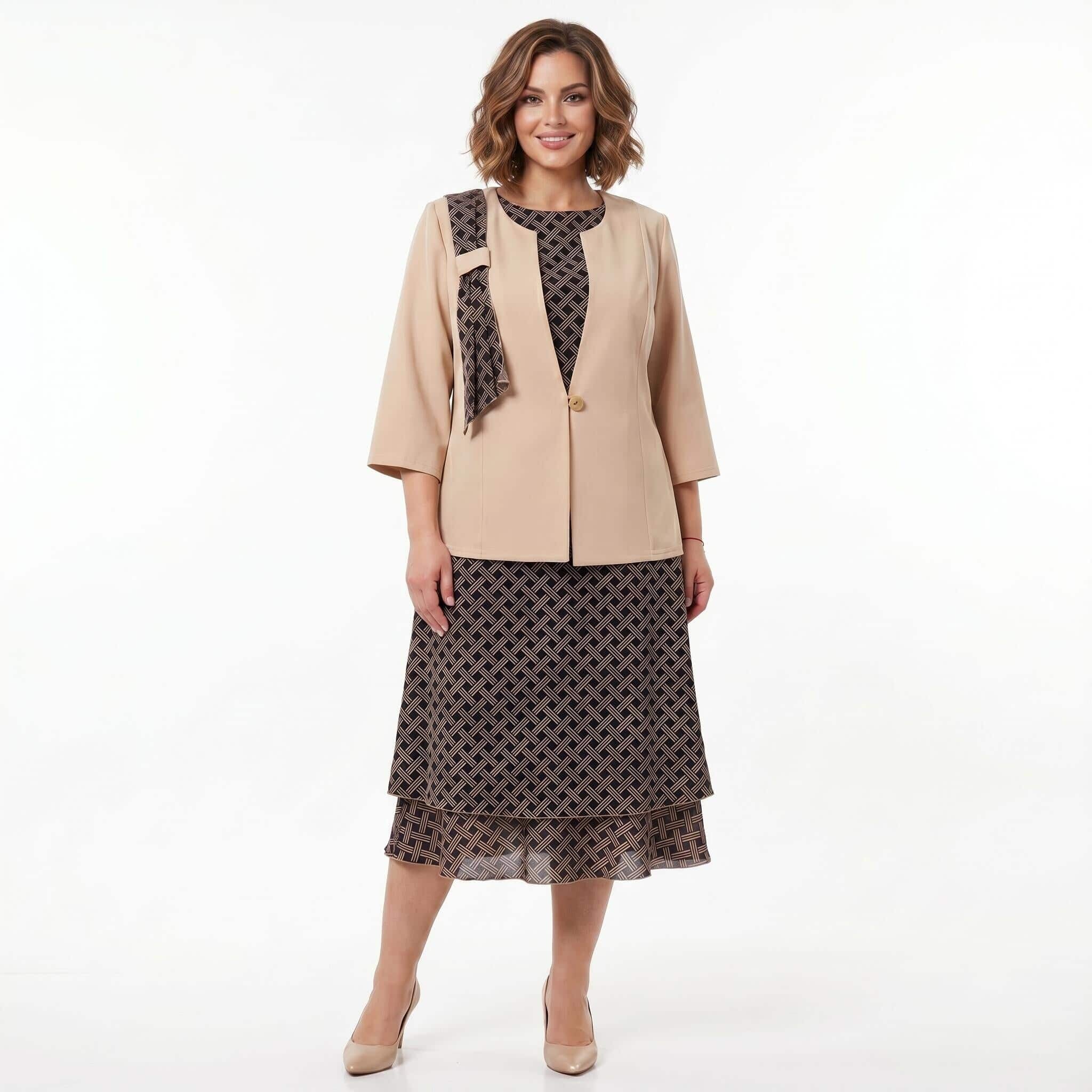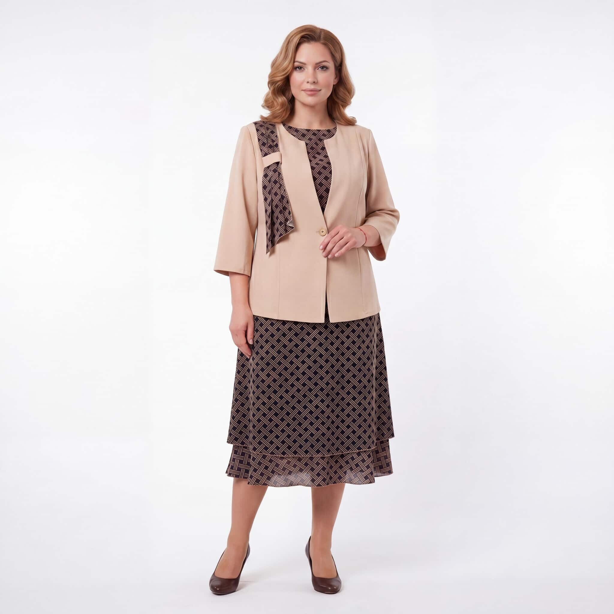 Επίσημο γυναικείο σετ με φόρεμα και σακάκι σε μπεζ