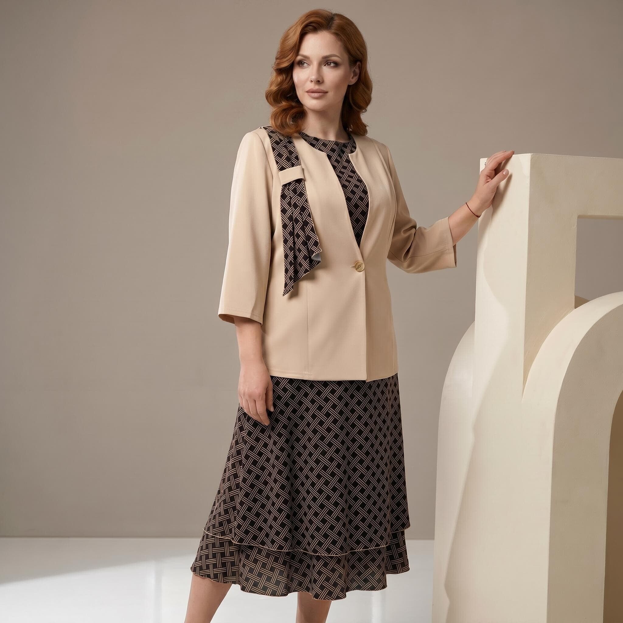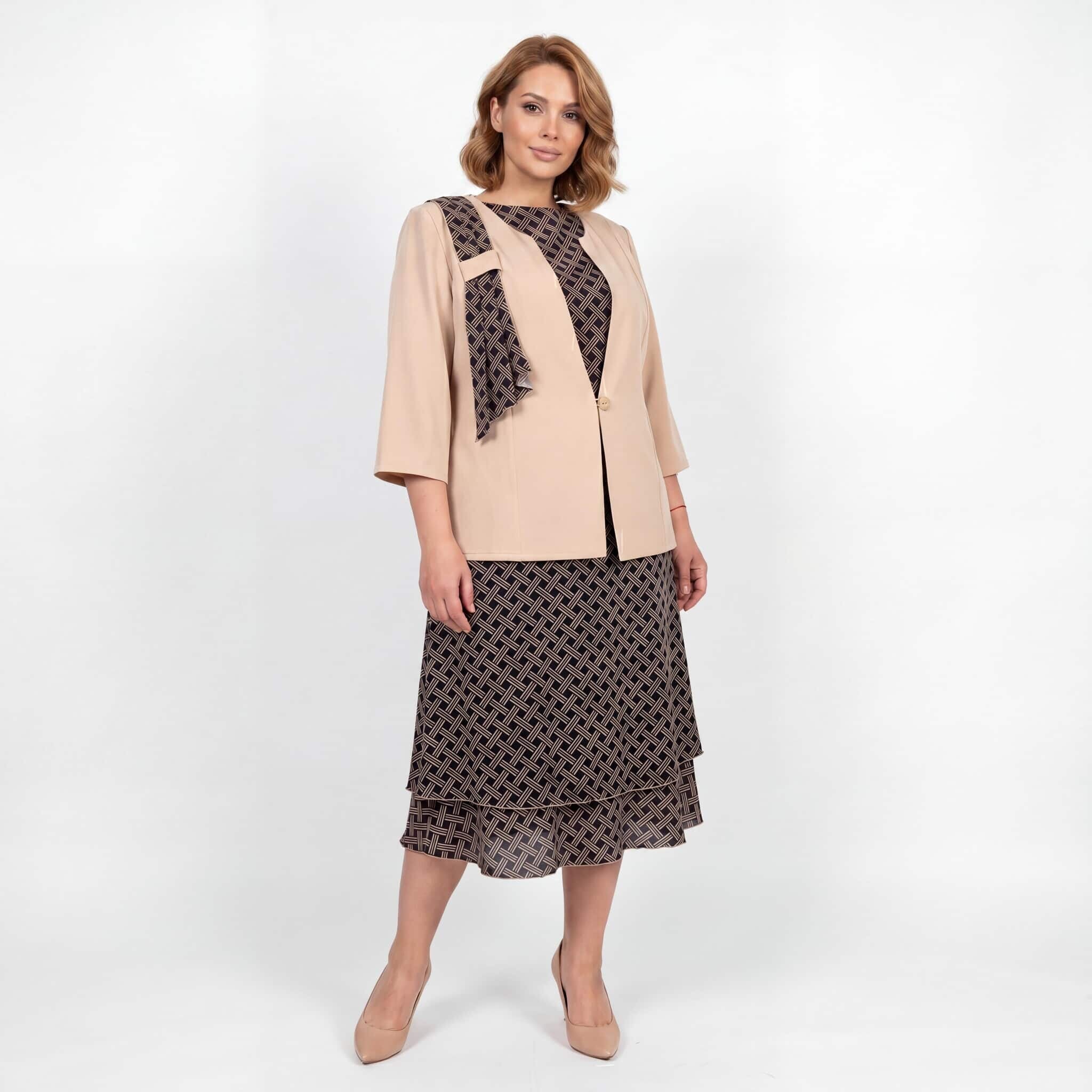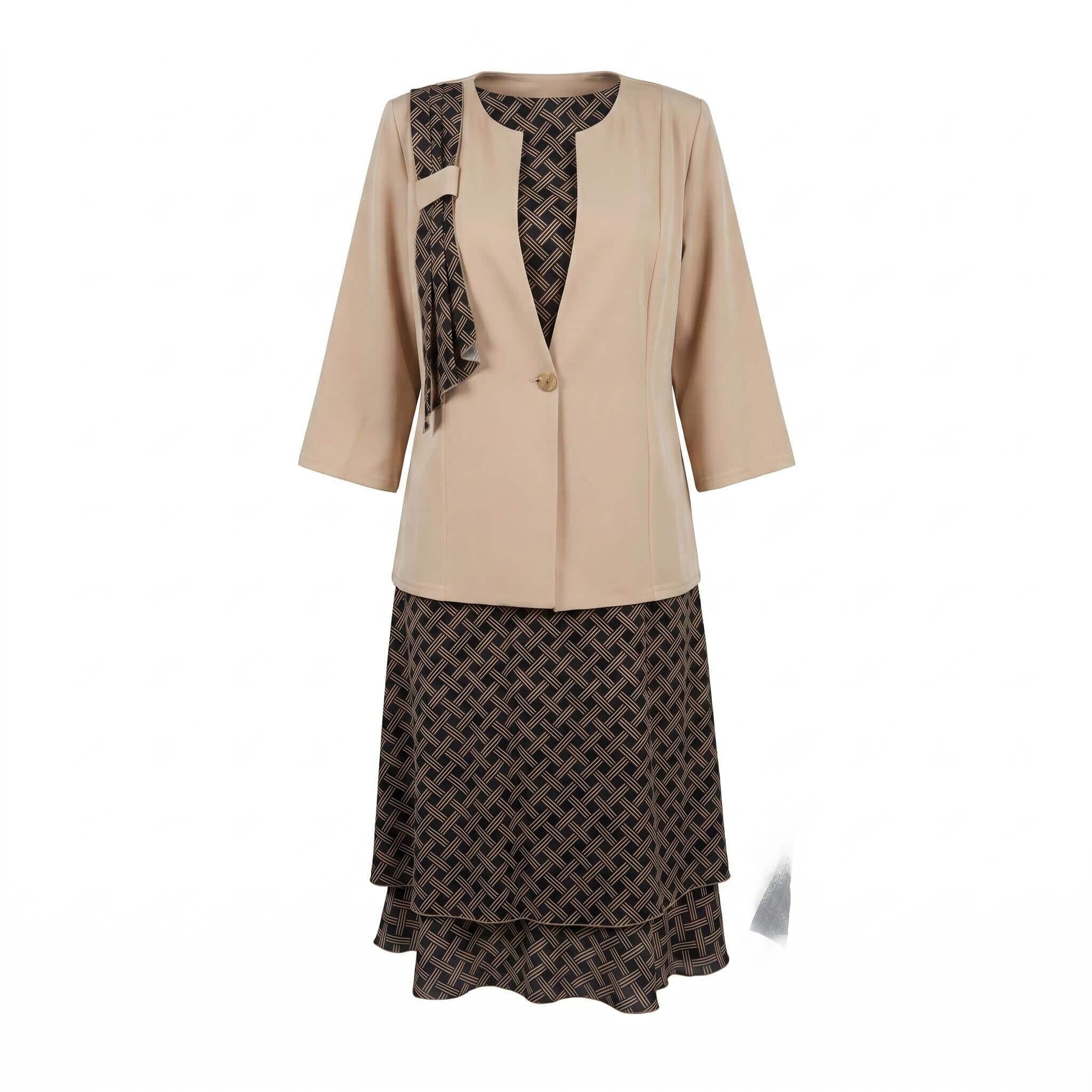 Επίσημο γυναικείο σετ με φόρεμα και σακάκι σε μπεζ