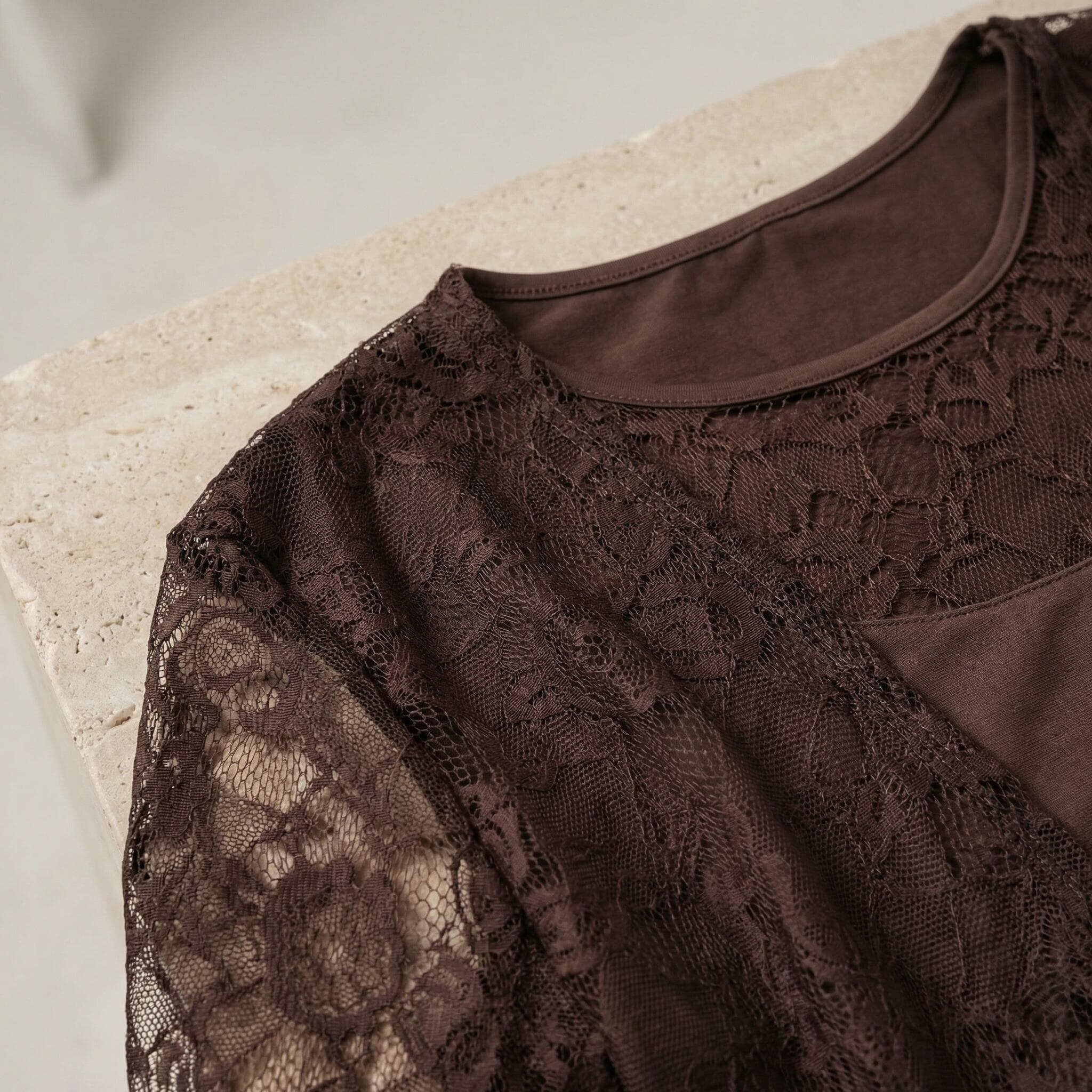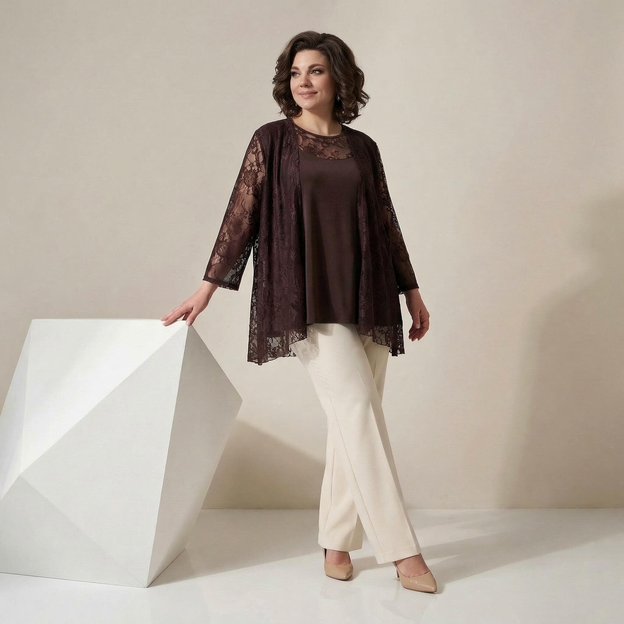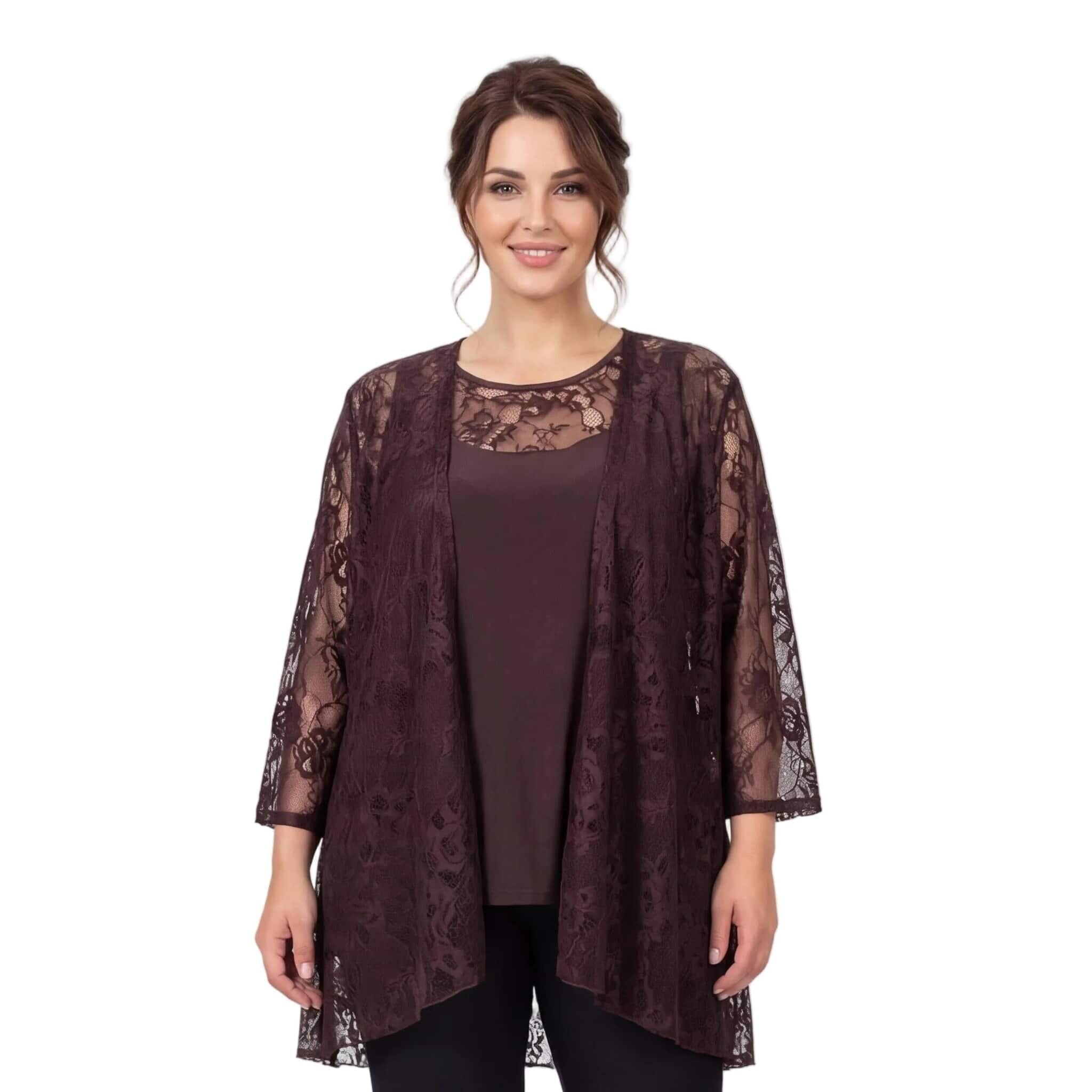 Επίσημο καφέ γυναικείο σετ δύο τεμαχίων με δαντέλα plus size