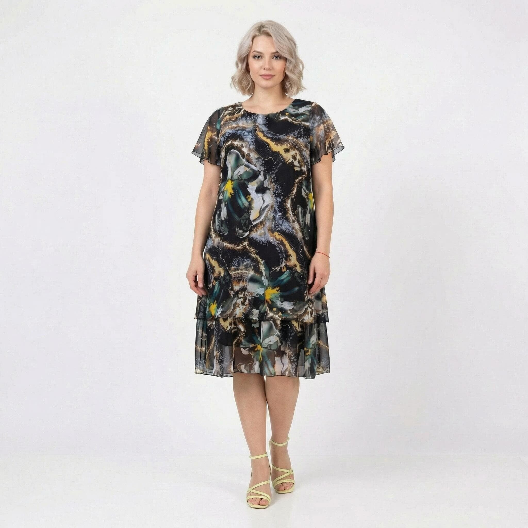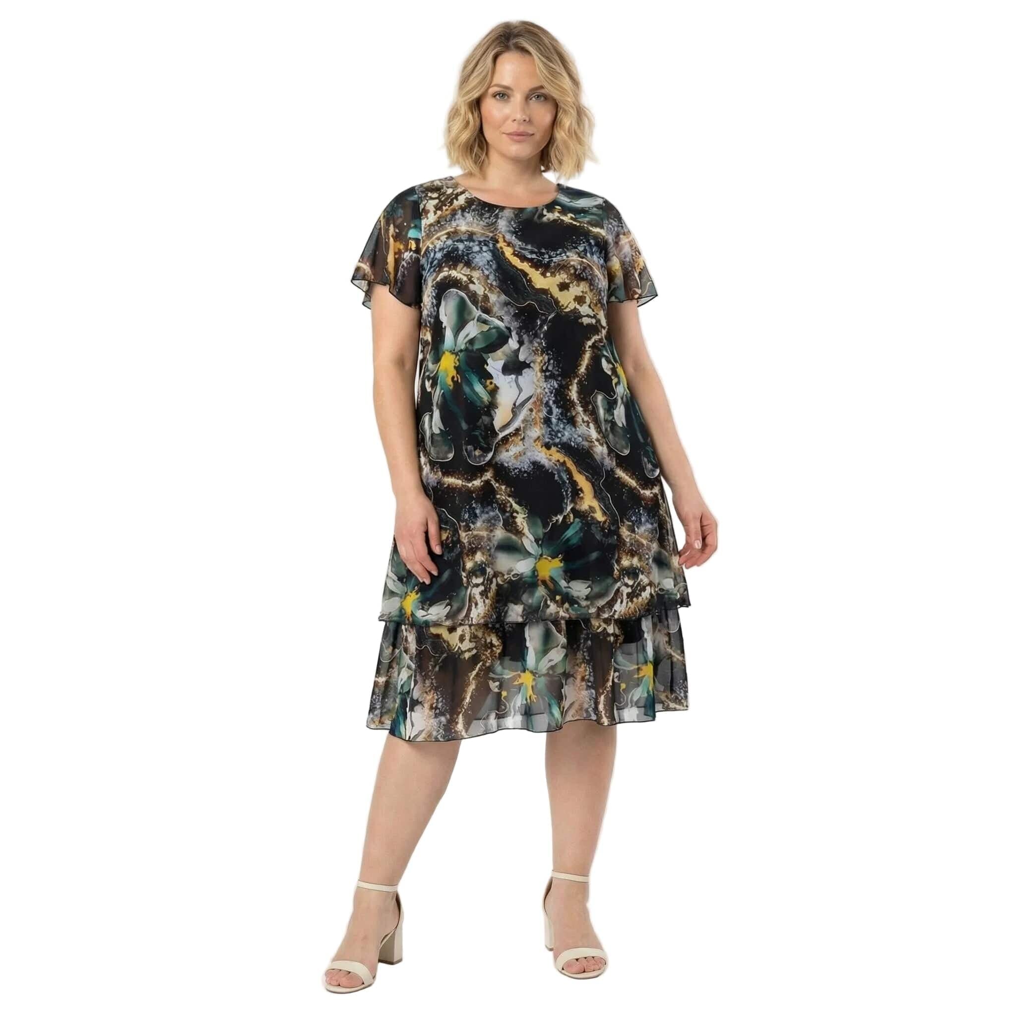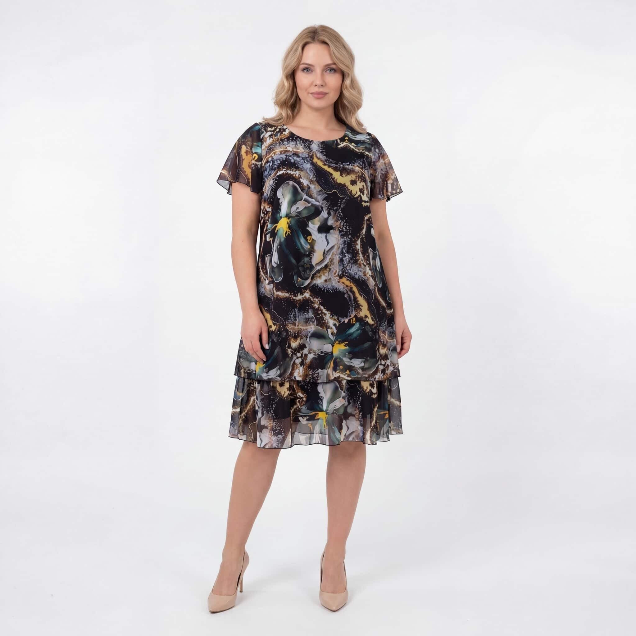 Επίσημο κλος φόρεμα σε μεγάλα μεγέθη από πολύχρωμο σιφόν