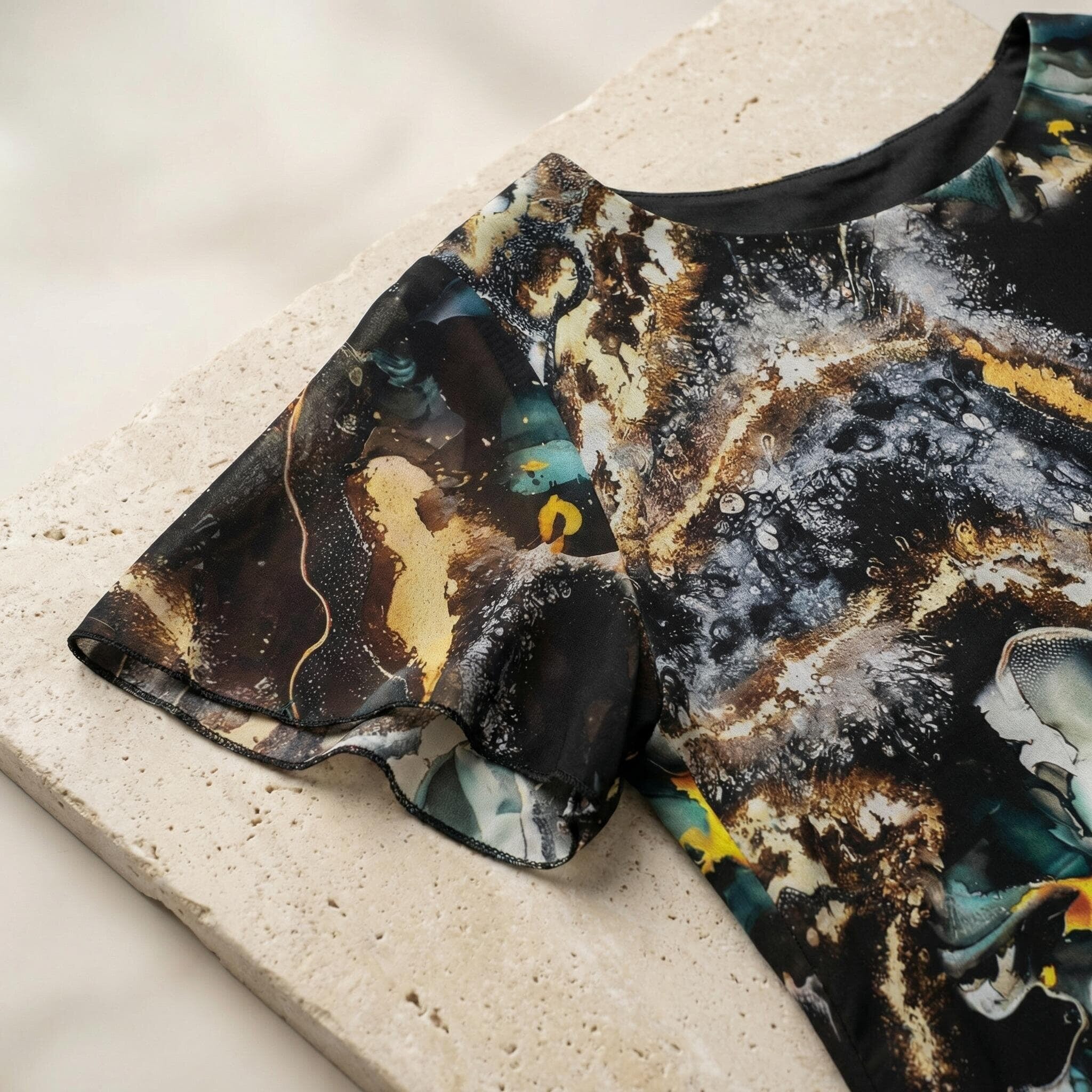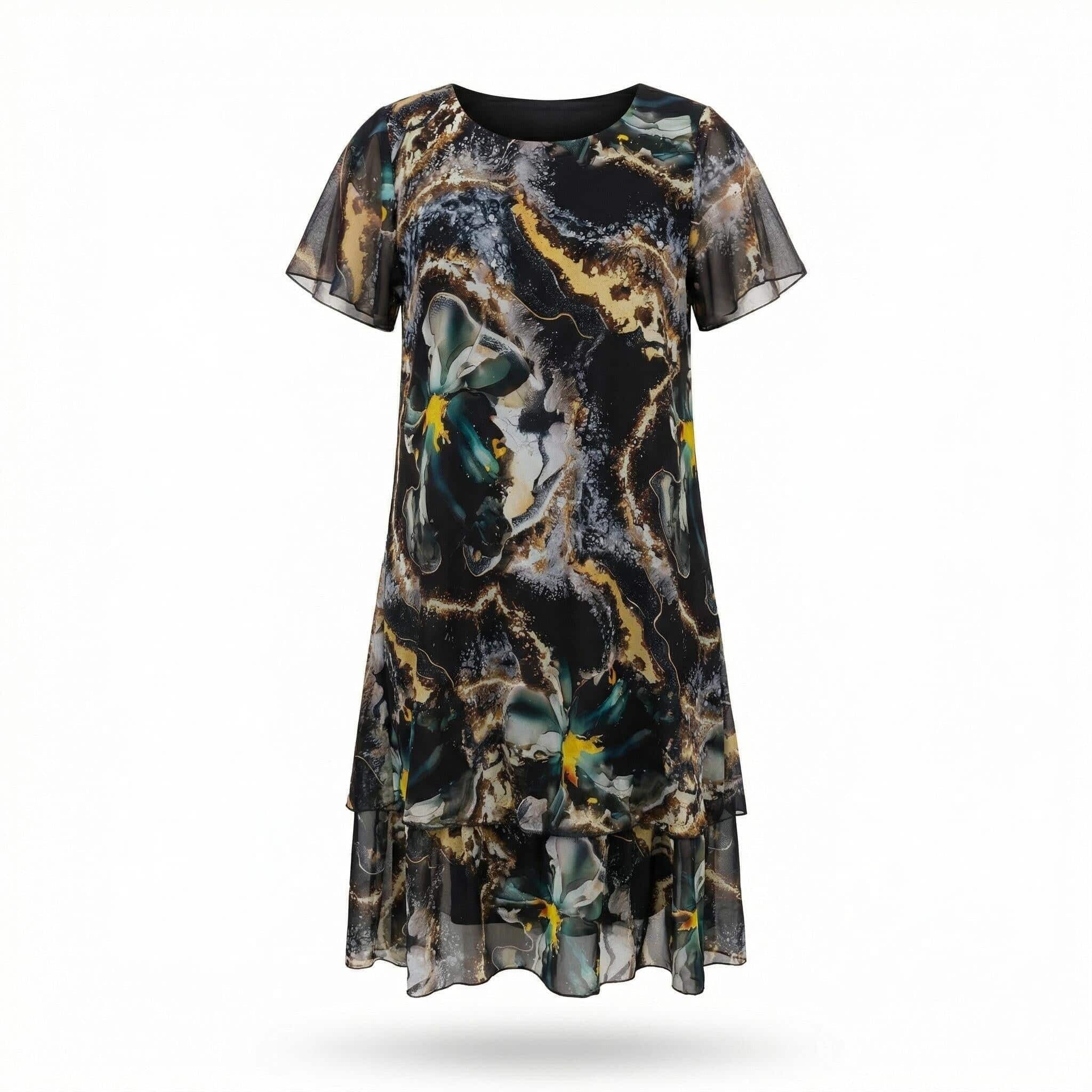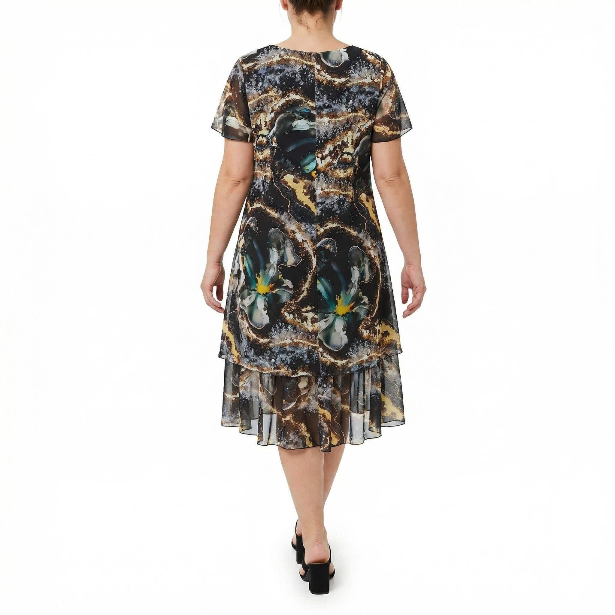 Επίσημο κλος φόρεμα σε μεγάλα μεγέθη από πολύχρωμο σιφόν