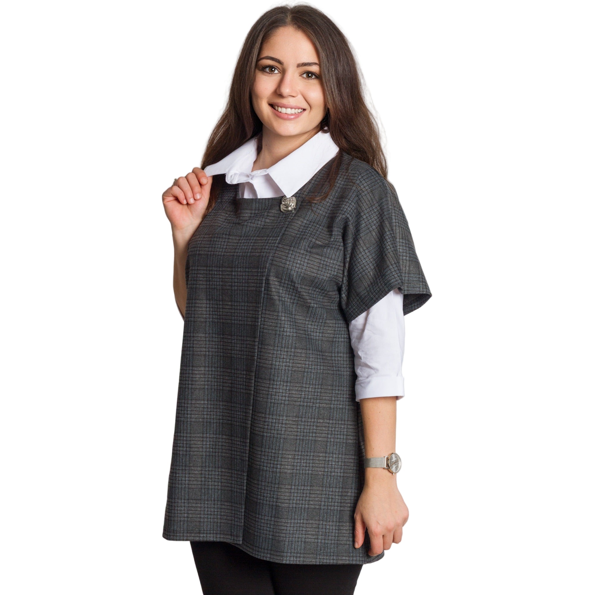 Επίσημο σετ με πουκάμισο και γκρι καρό γιλέκο