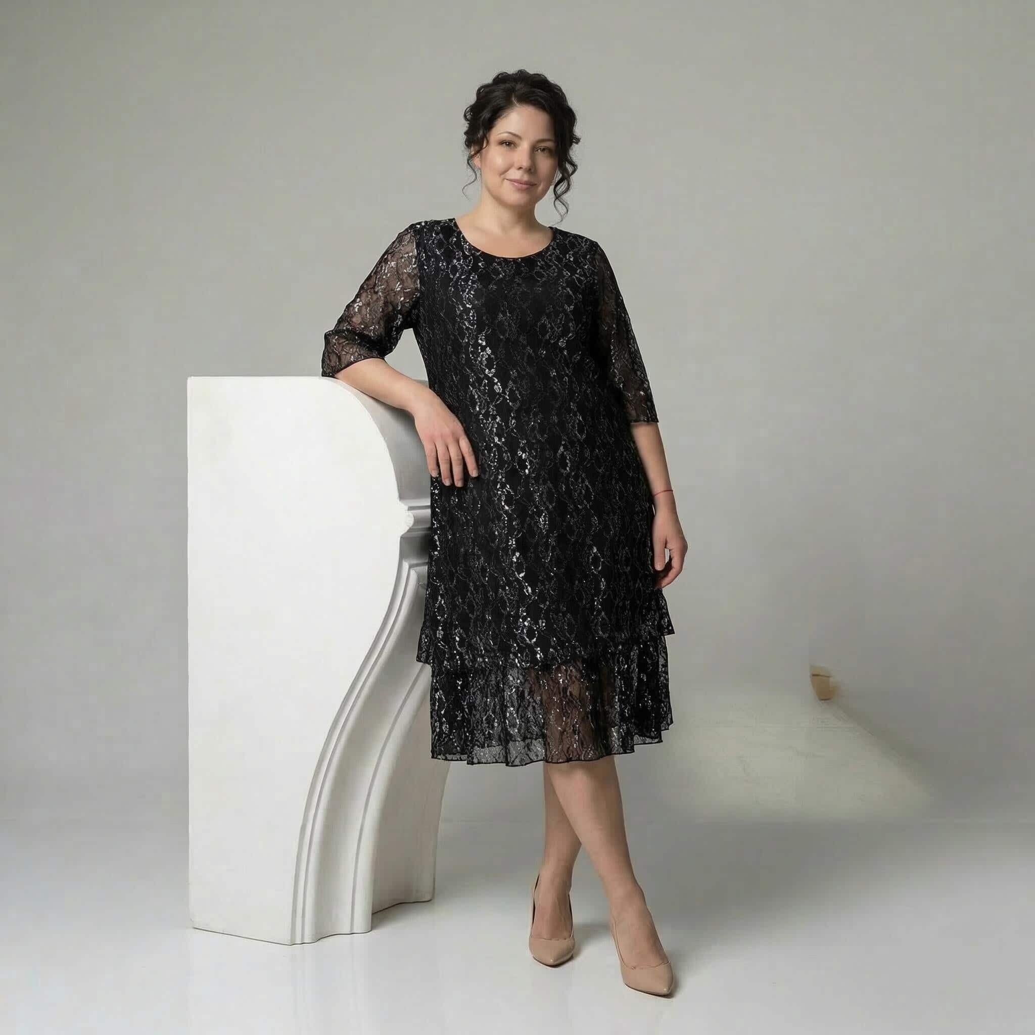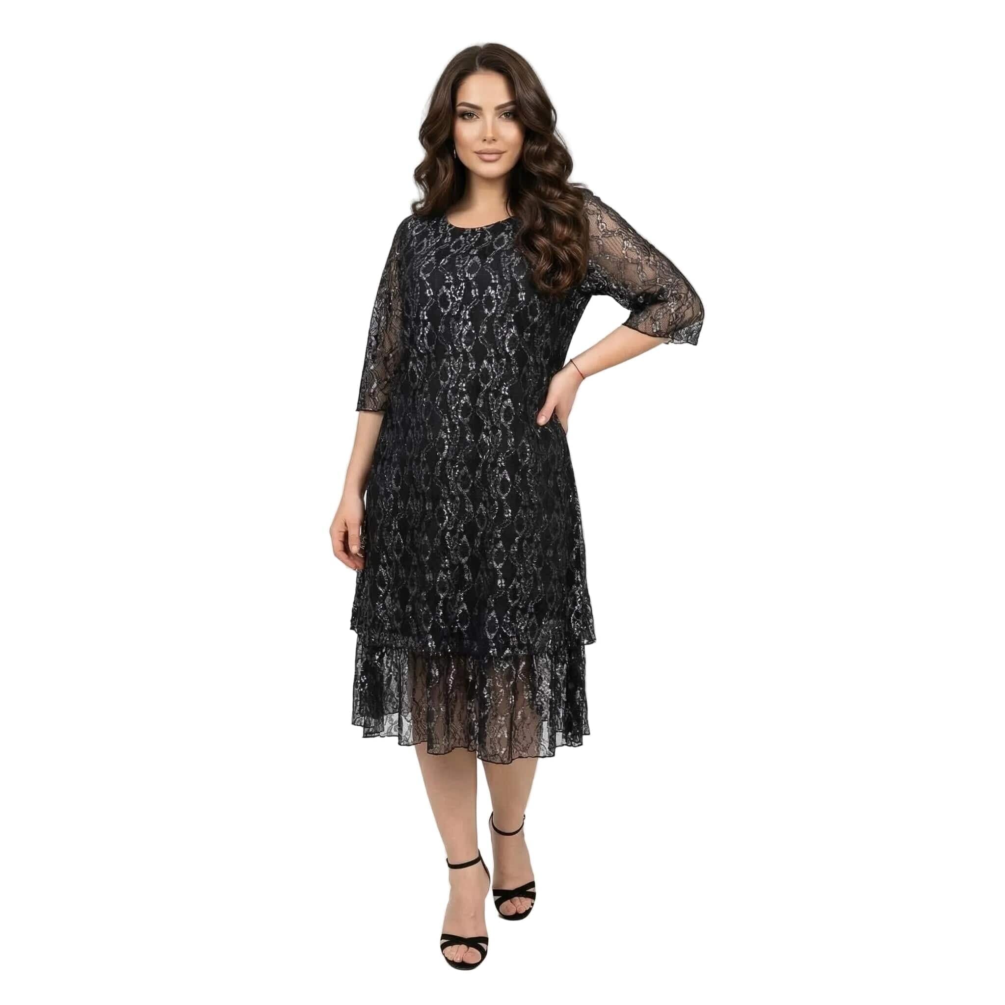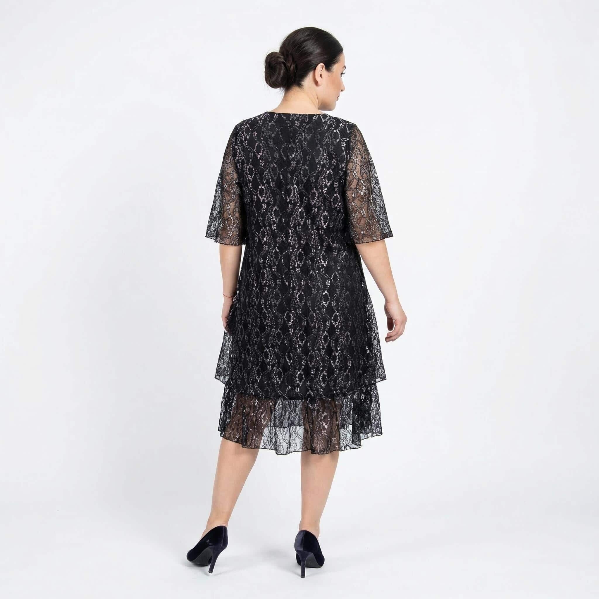Επίσημο μαύρο φόρεμα σε μεγάλα μεγέθη με εντυπωσιακή δαντέλα