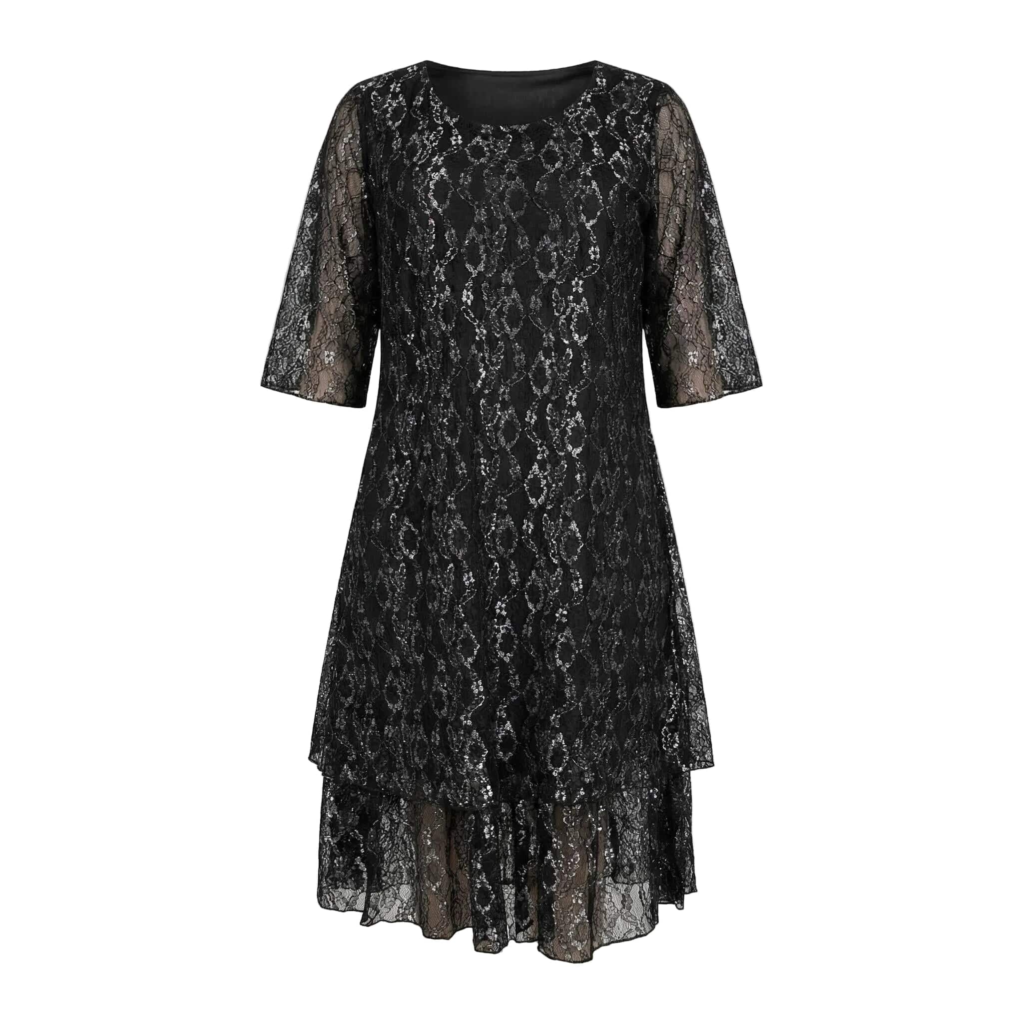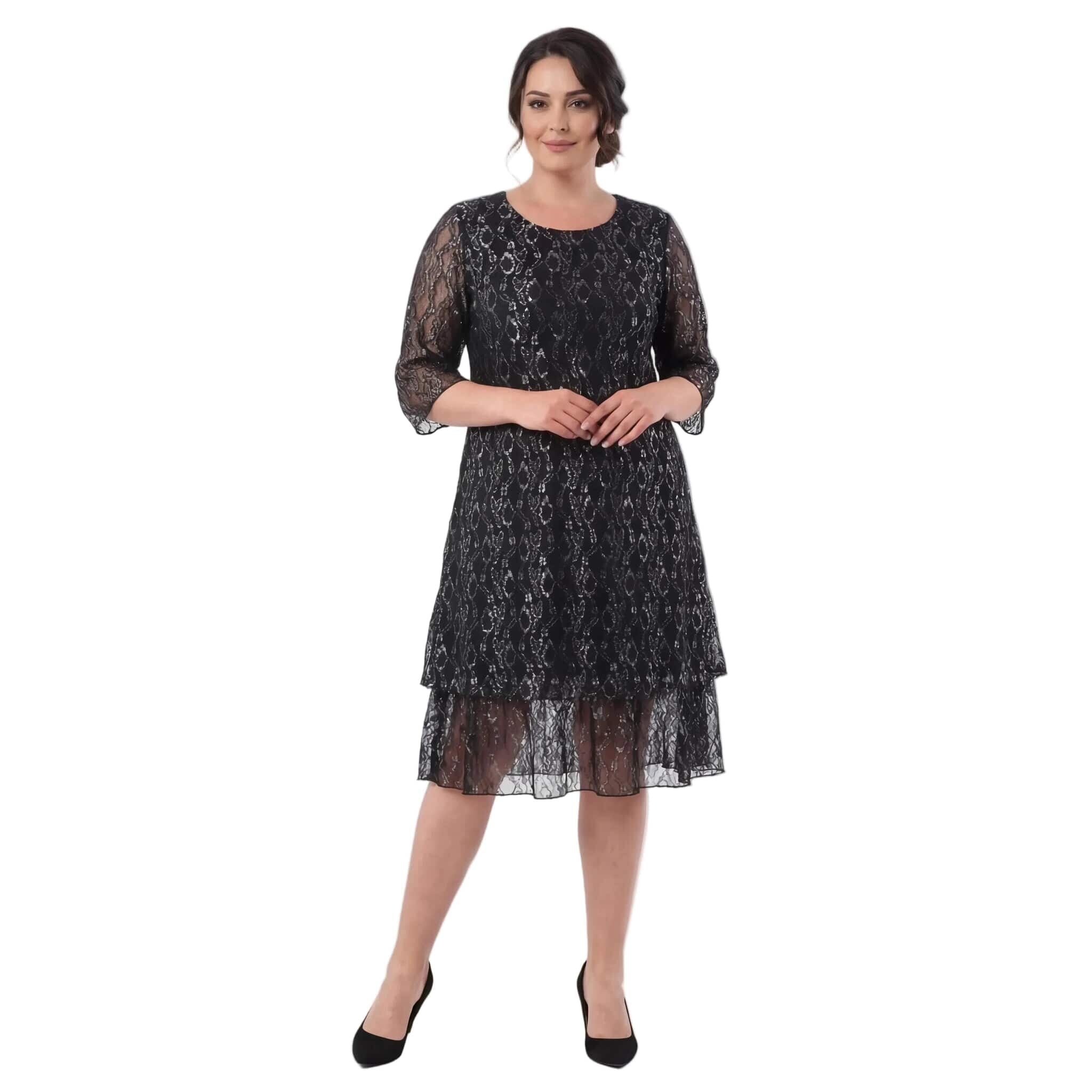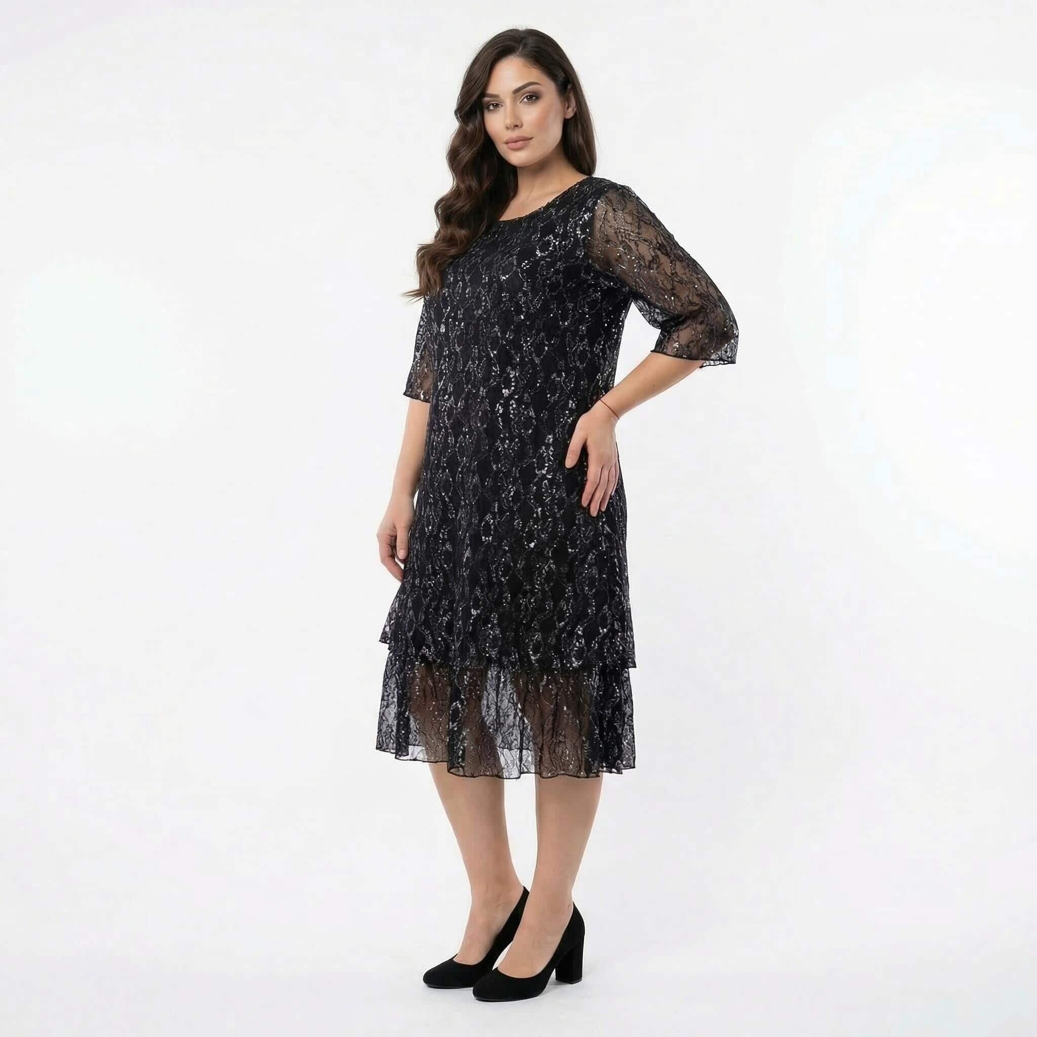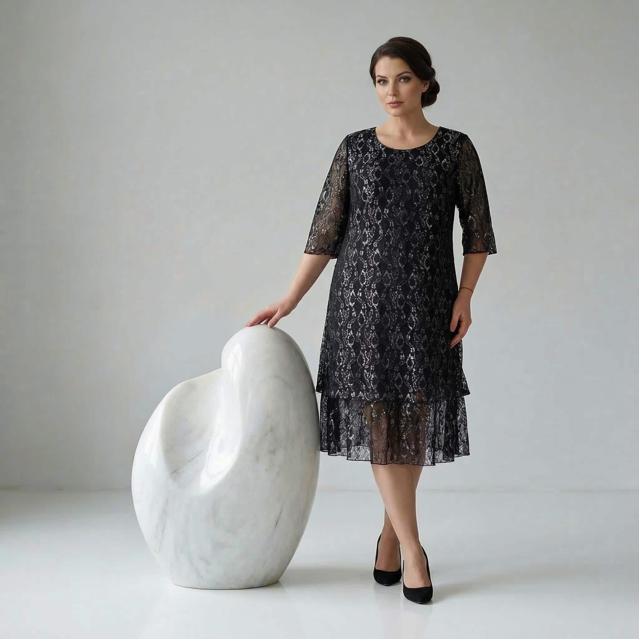 Επίσημο μαύρο φόρεμα σε μεγάλα μεγέθη με εντυπωσιακή δαντέλα