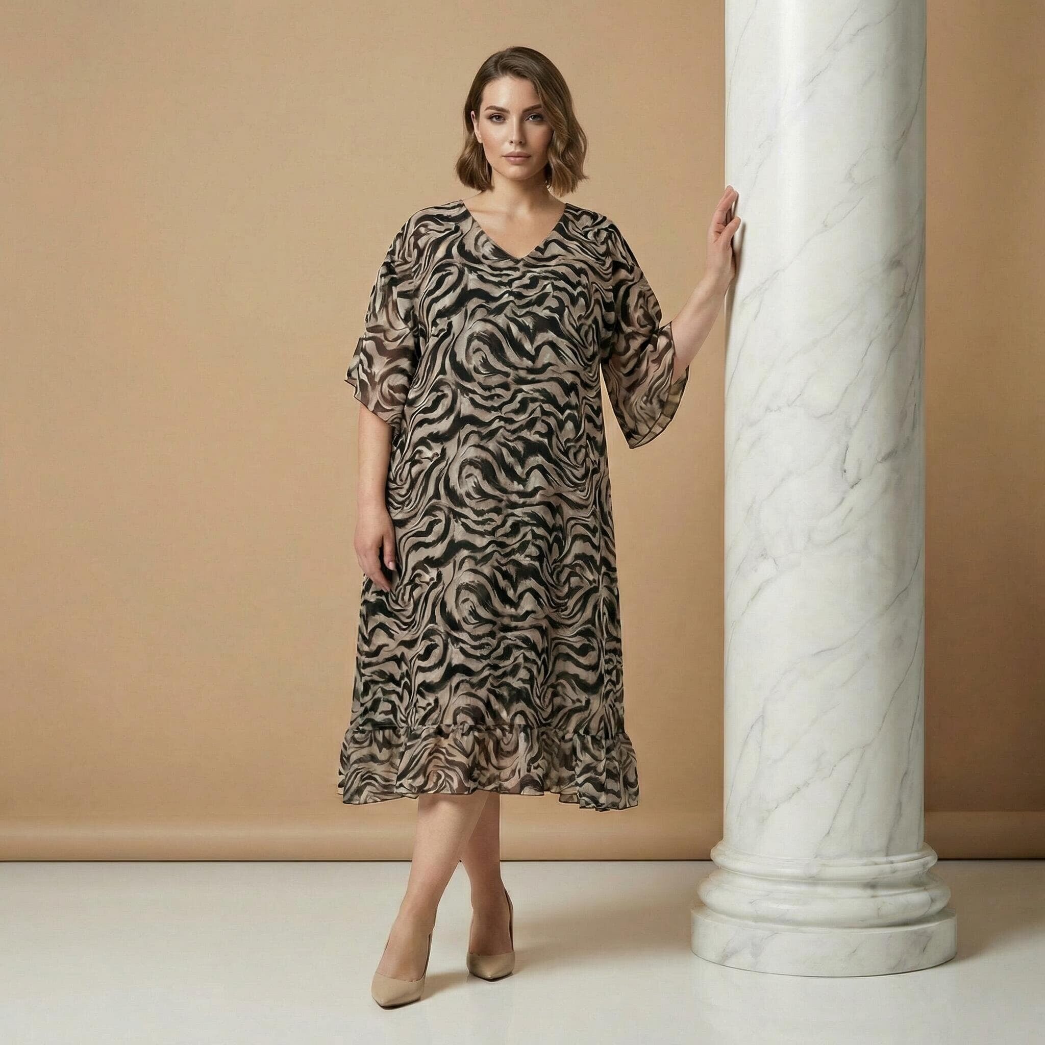 Επίσημο μαύρο φόρεμα από σιφόν σε μεγάλα μεγέθη με άνετη γραμμή