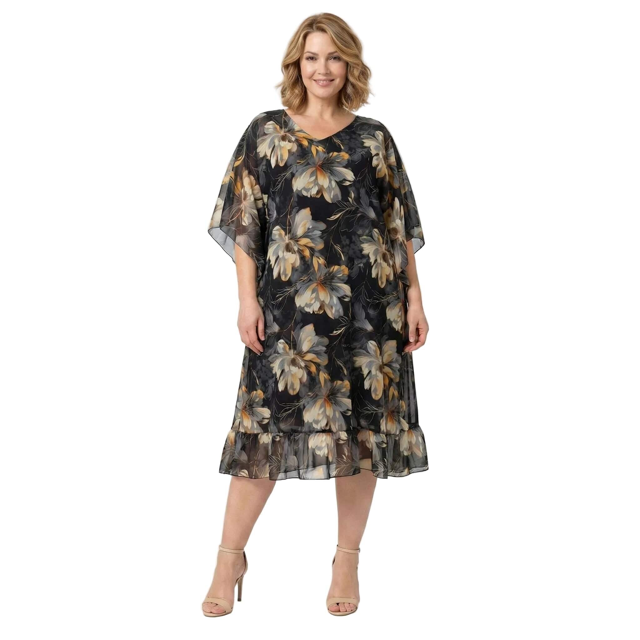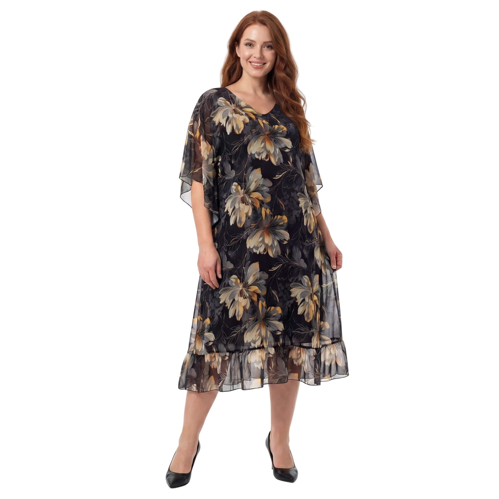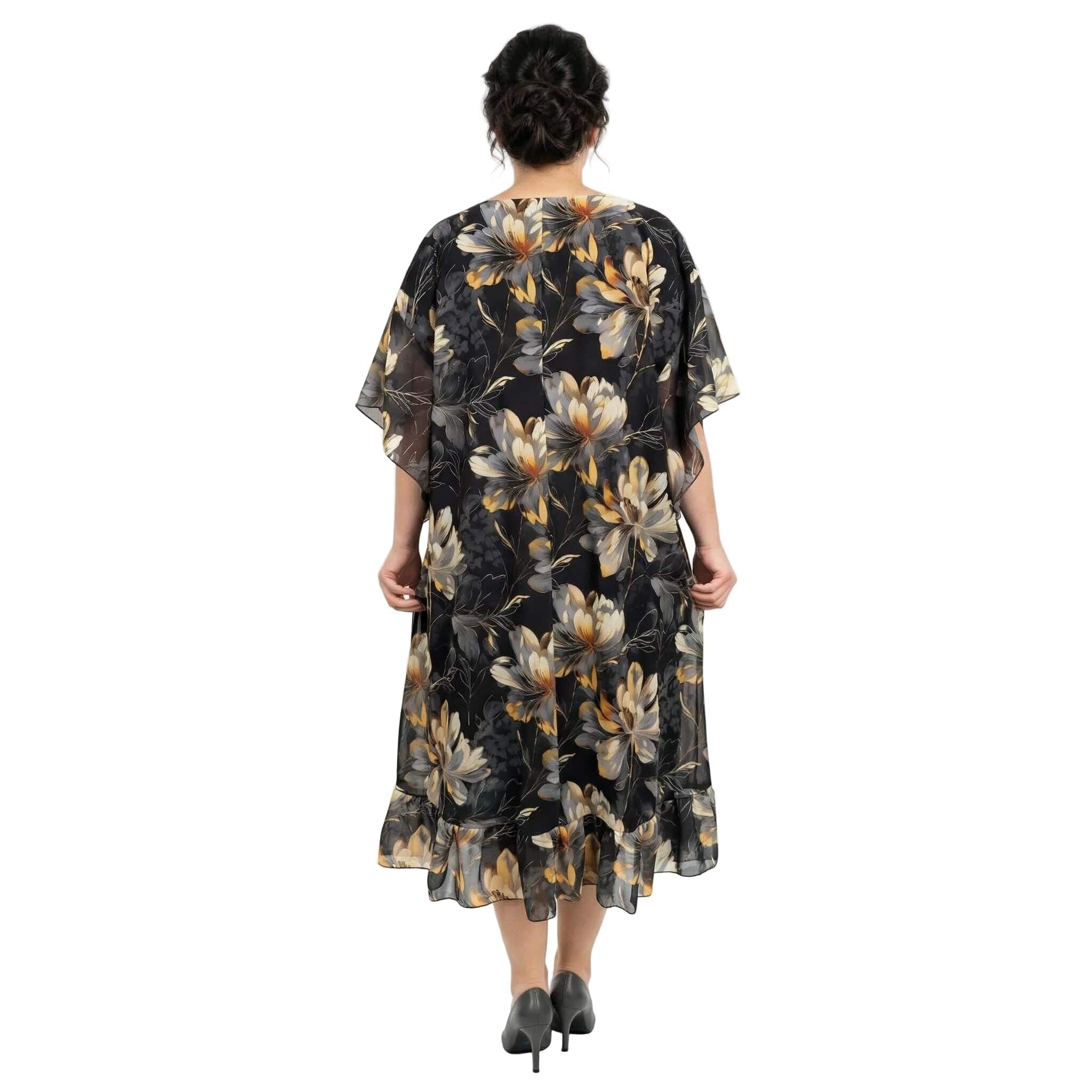 Επίσημο Μαύρο Φόρεμα Σιφόν Με Φλοράλ Σχέδιο