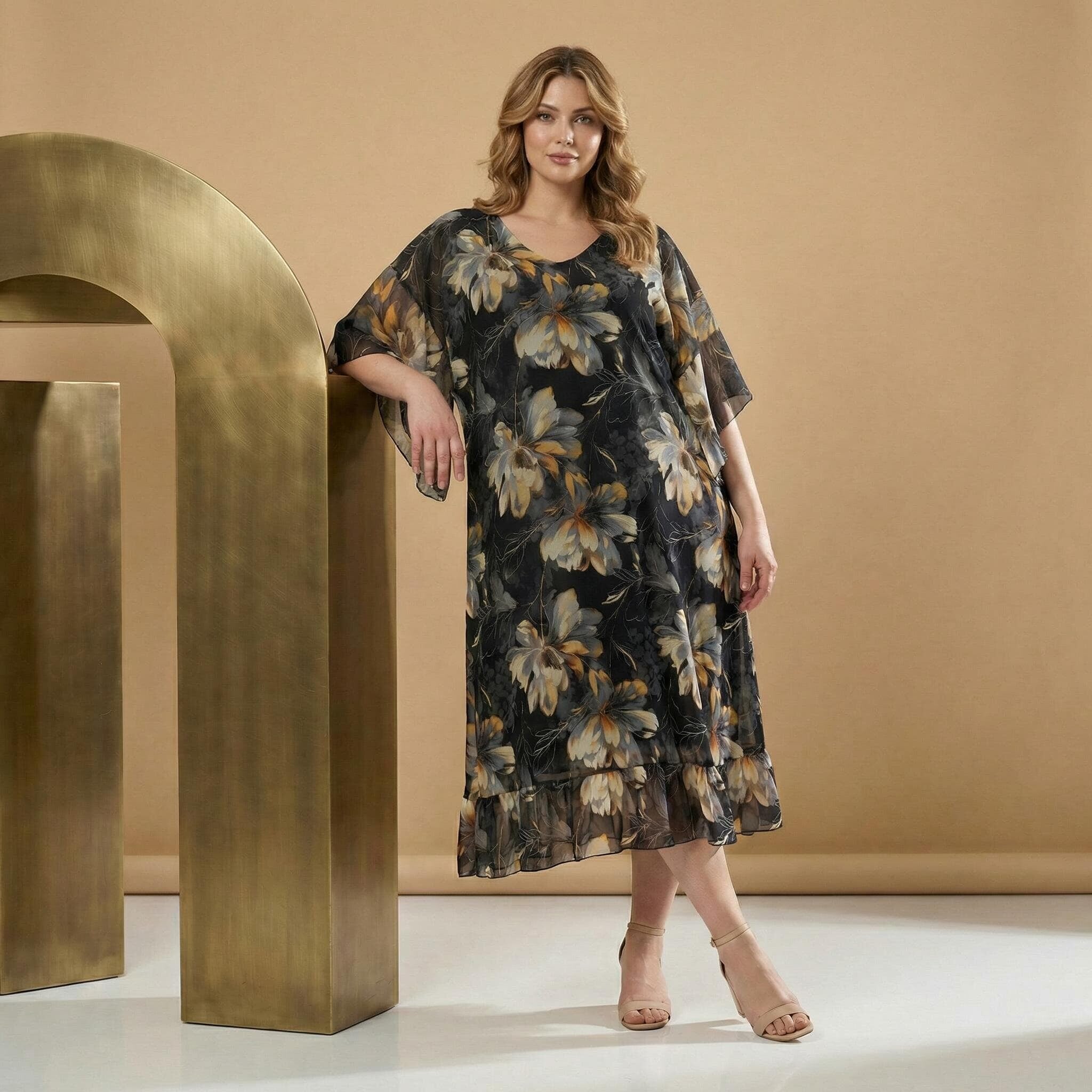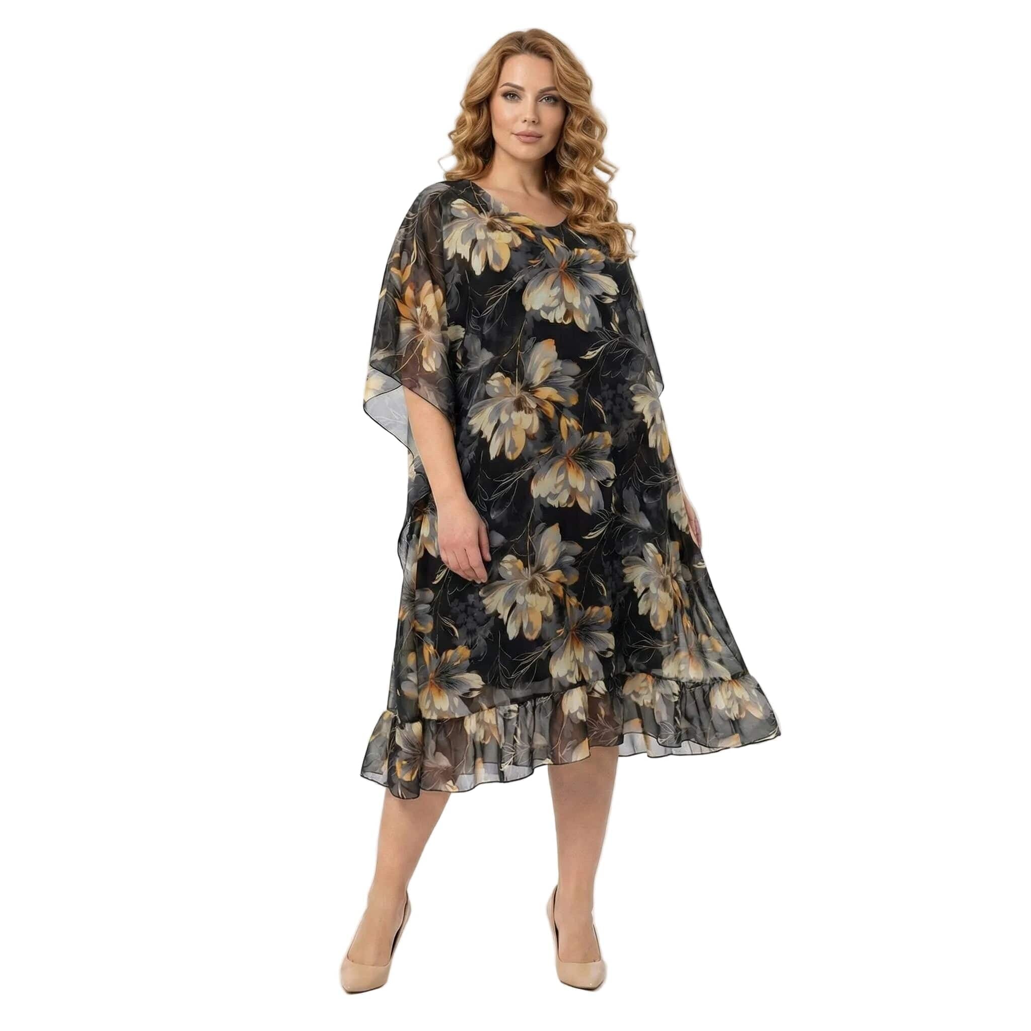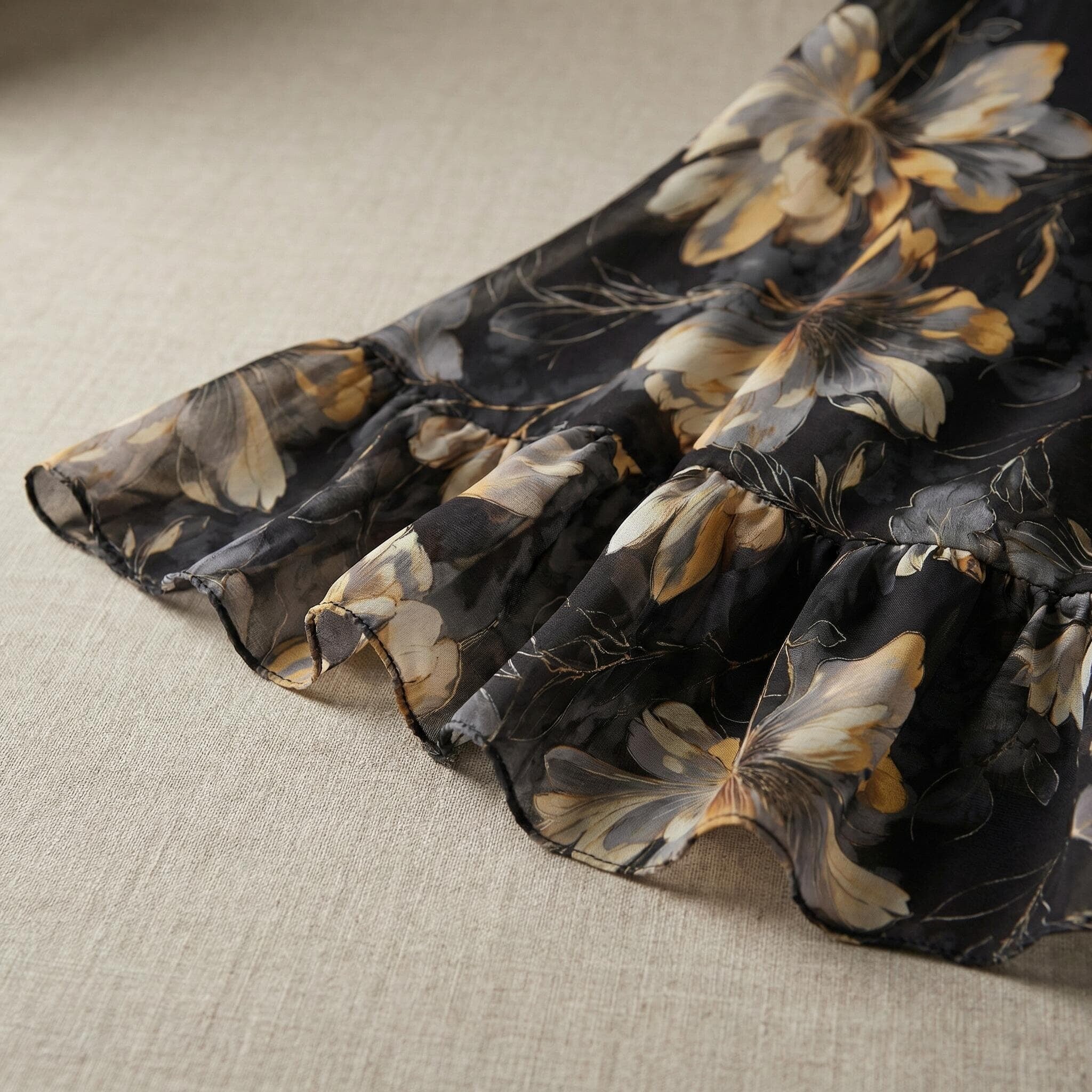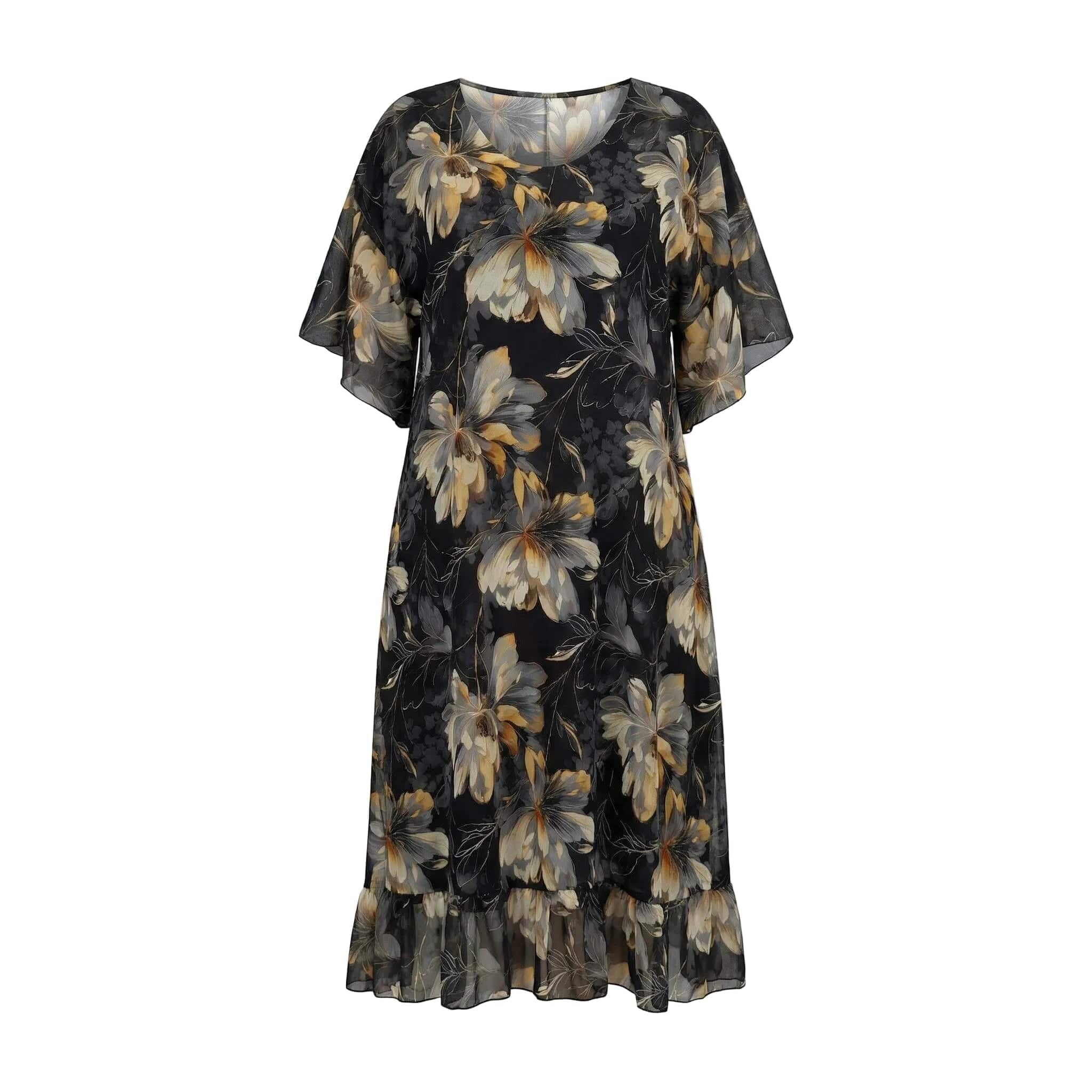 Επίσημο Μαύρο Φόρεμα Σιφόν Με Φλοράλ Σχέδιο
