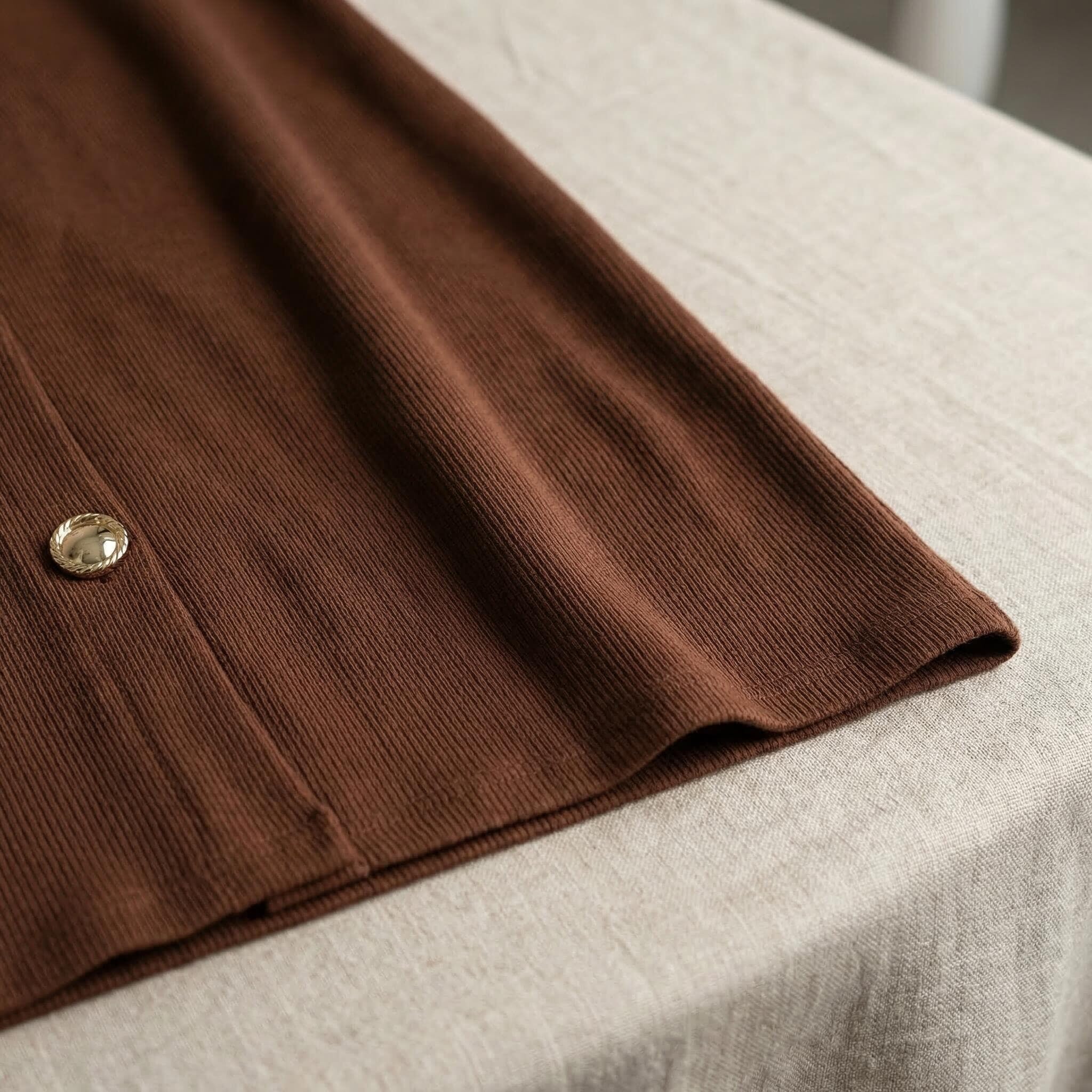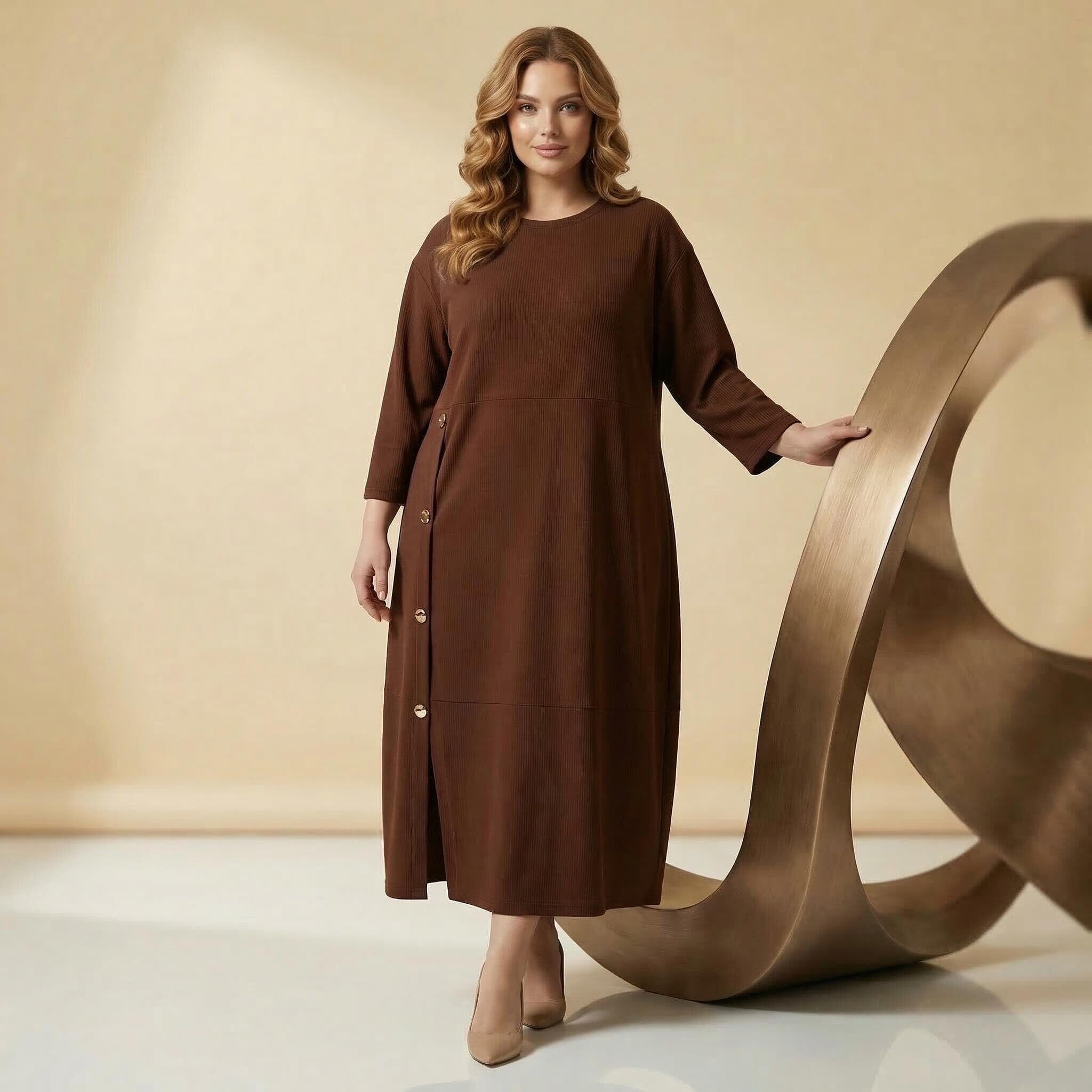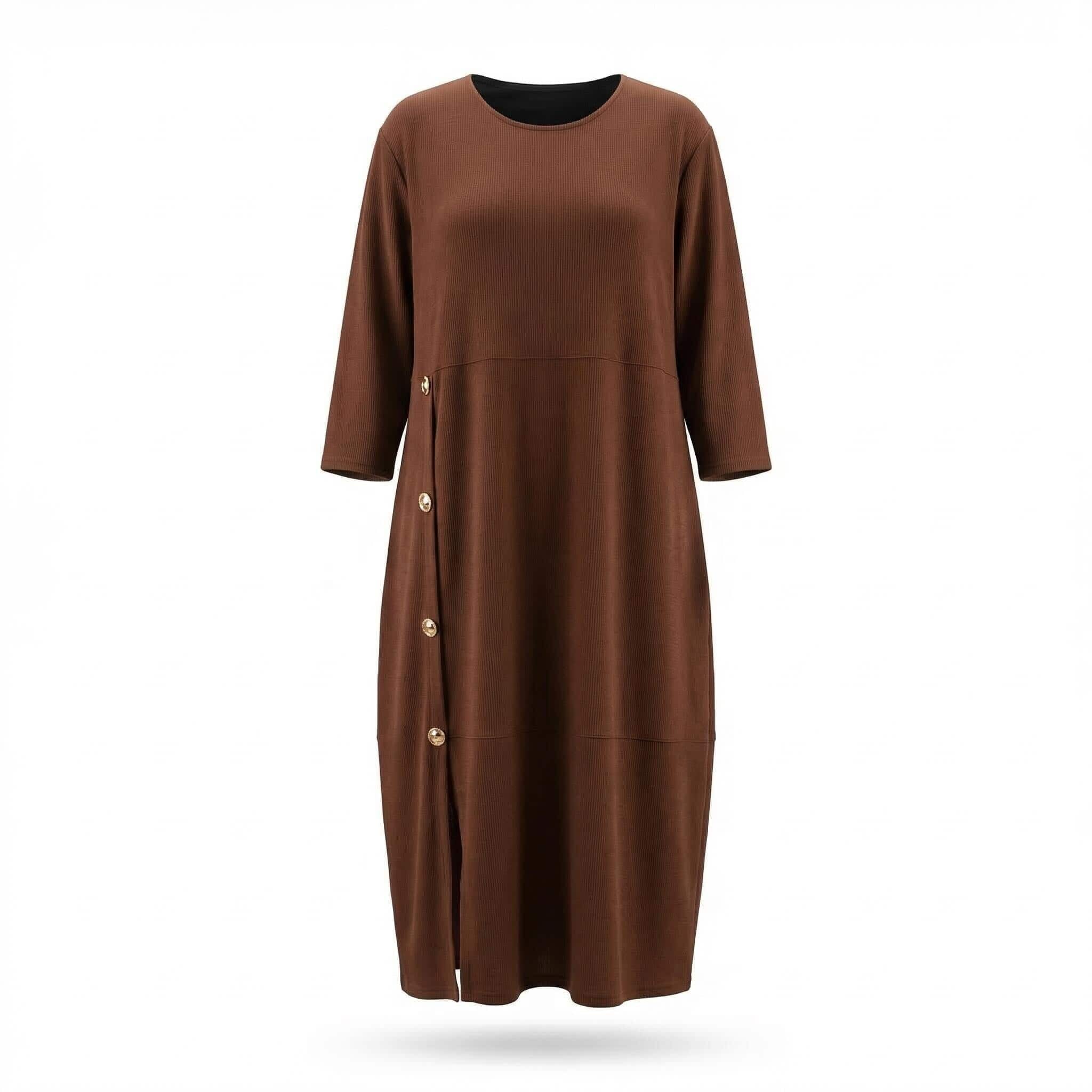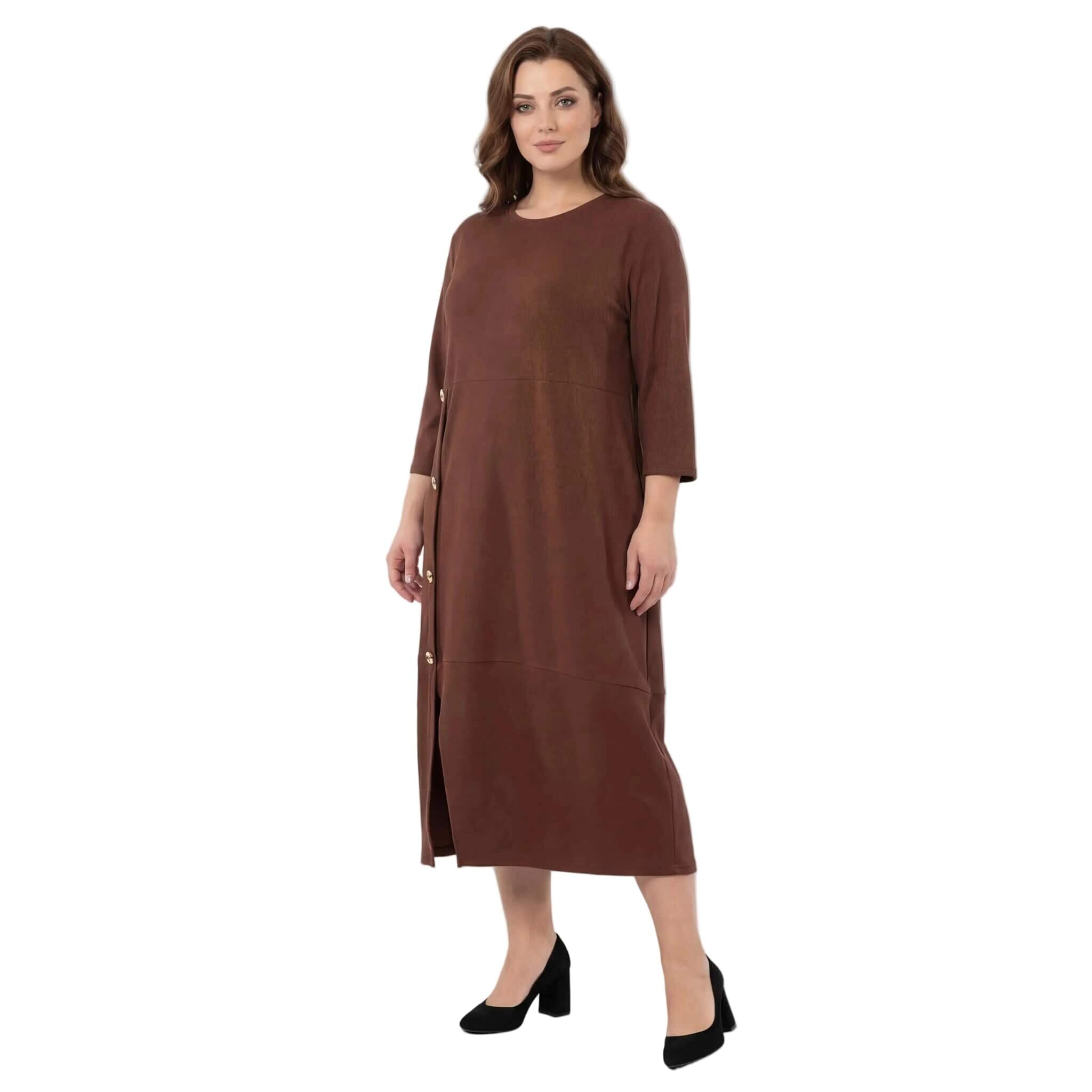 Επίσημο plus size μάξι φόρεμα καφέ με διακοσμητικά κουμπιά