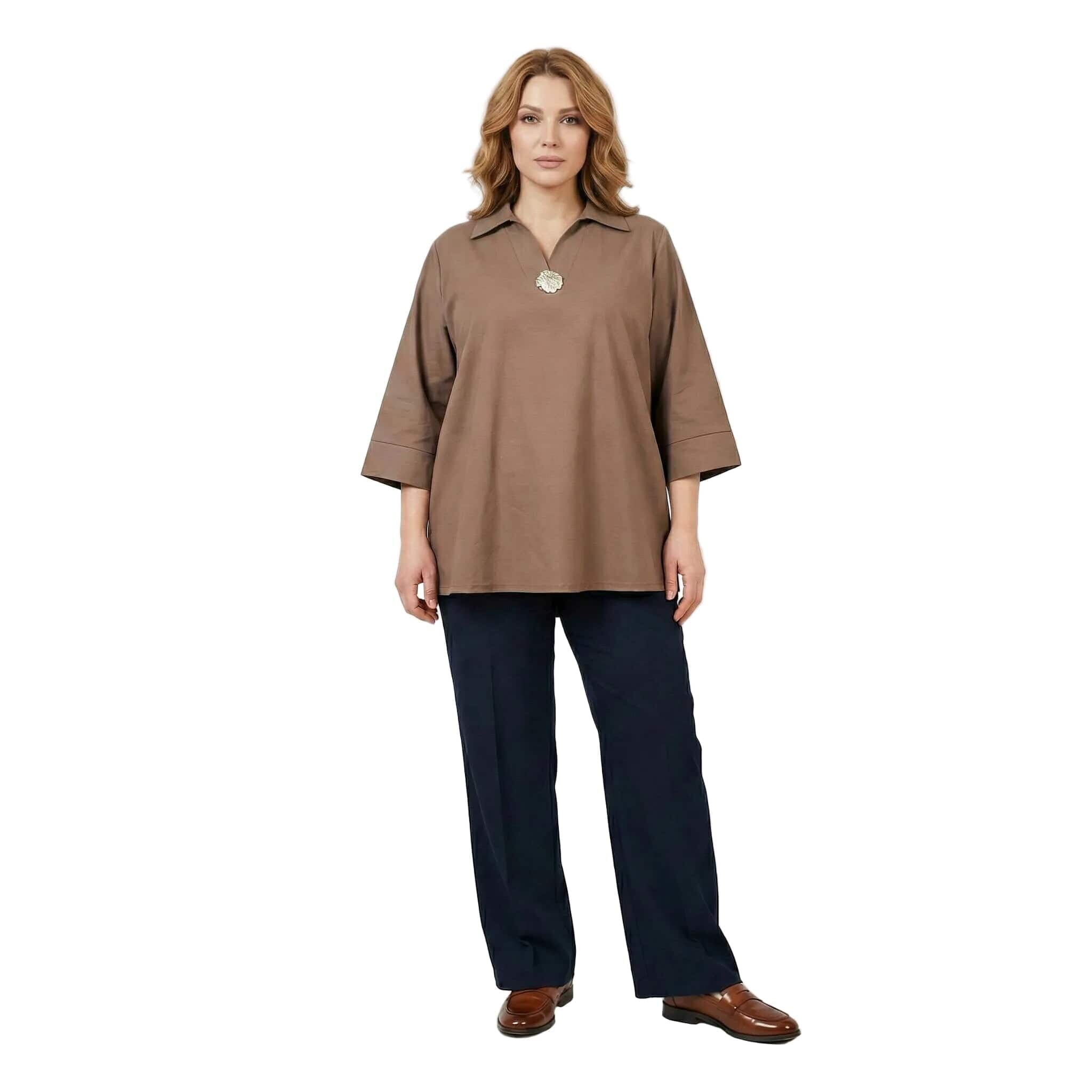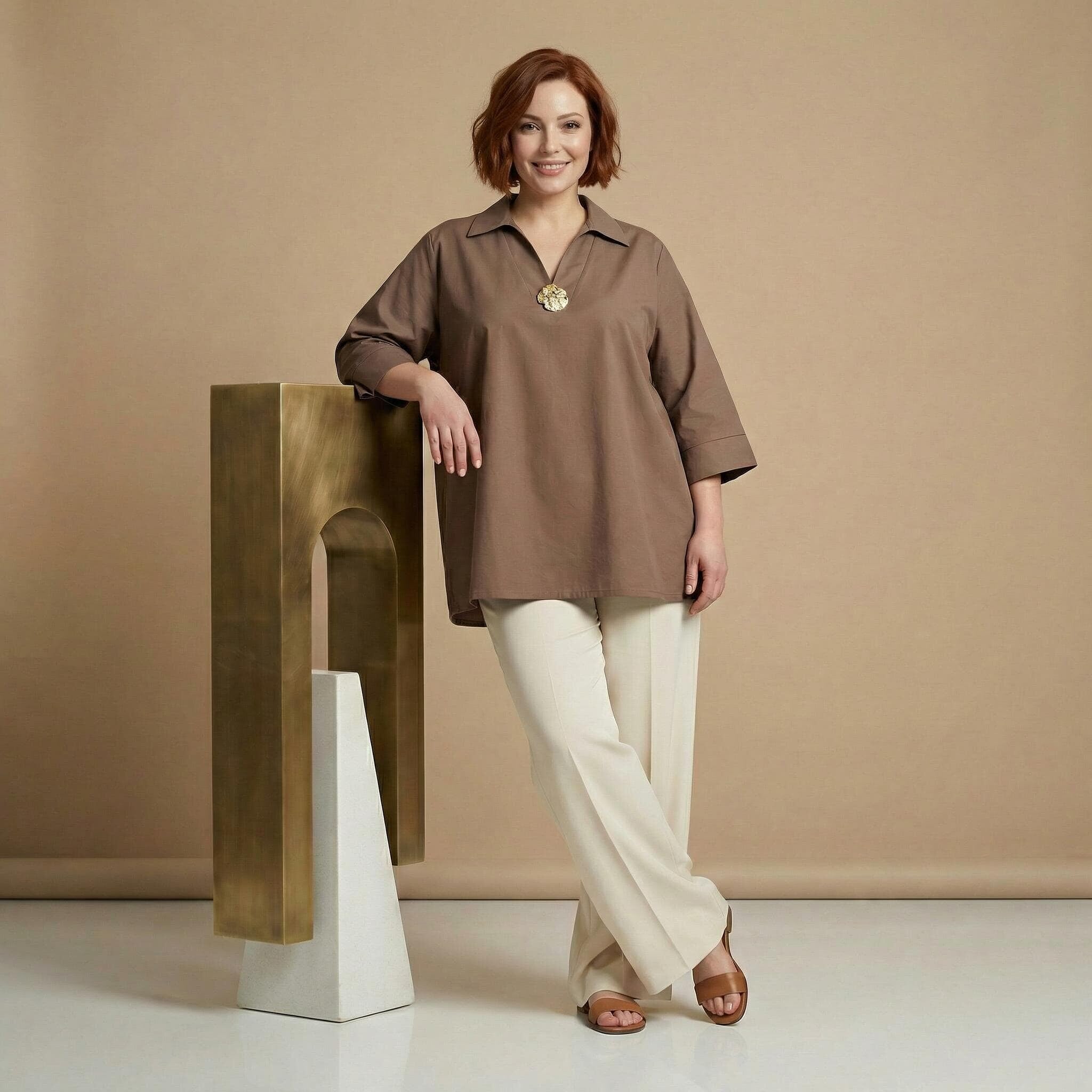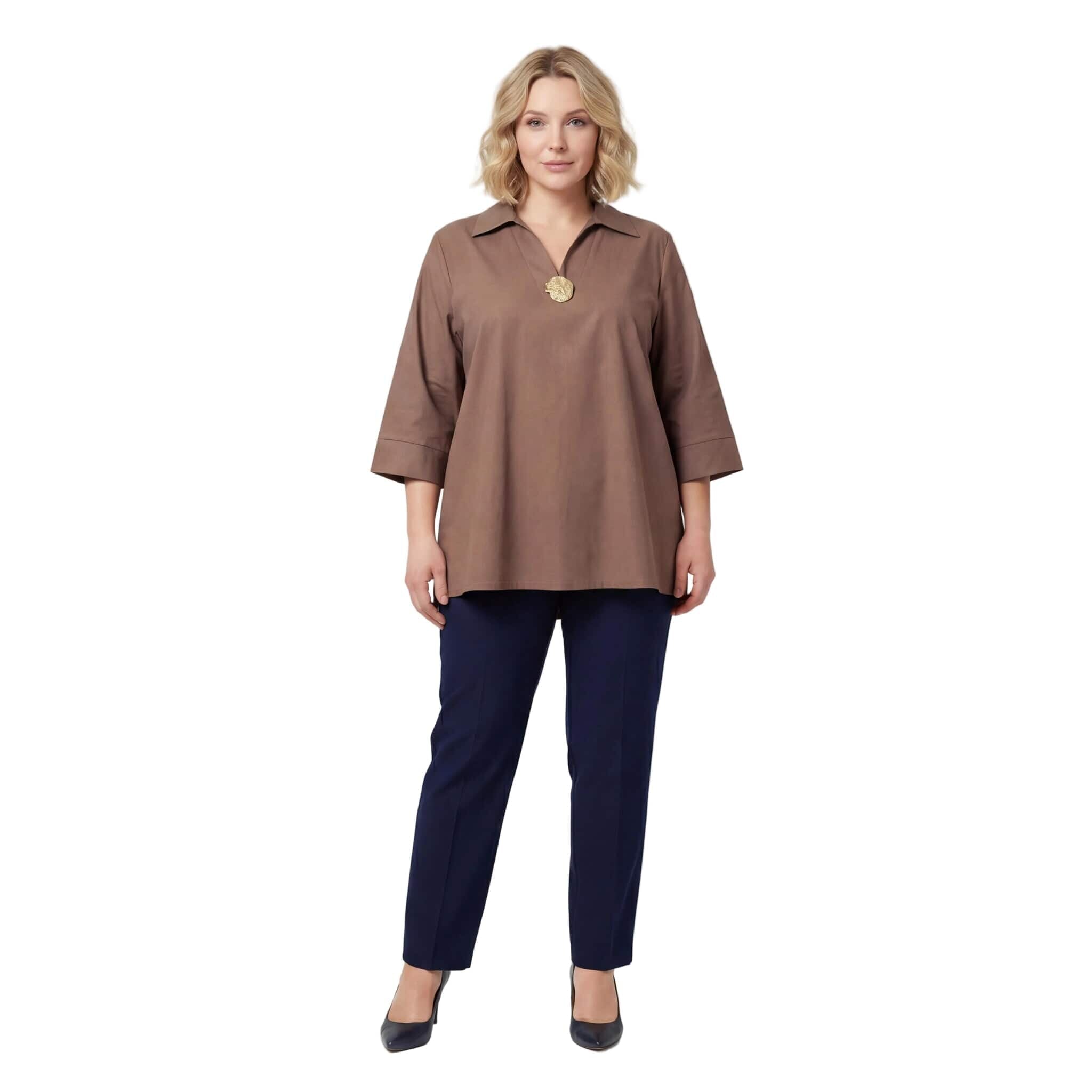 Επίσημο βαμβακερό πουκάμισο μόκα σε ριχτή γραμμή plus size