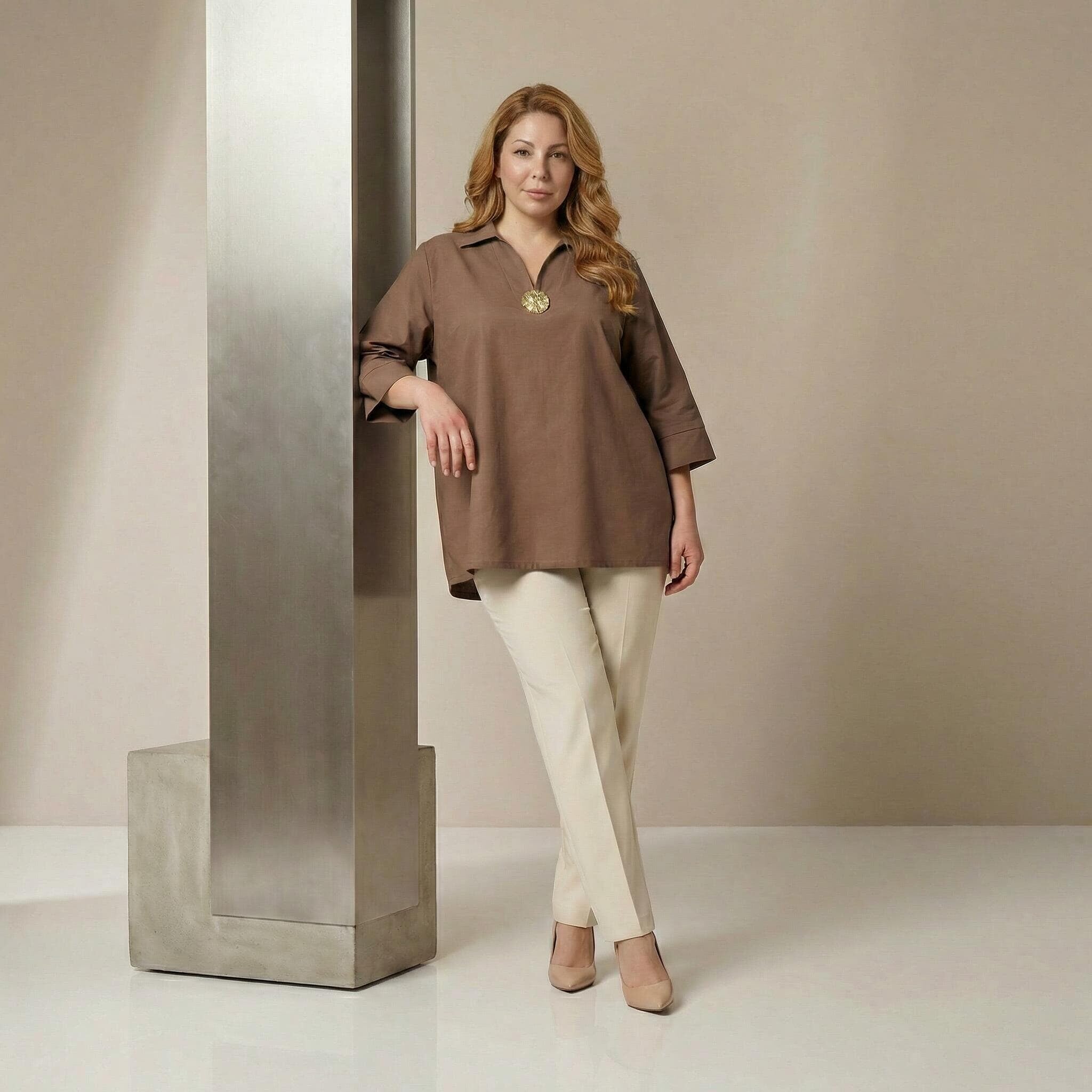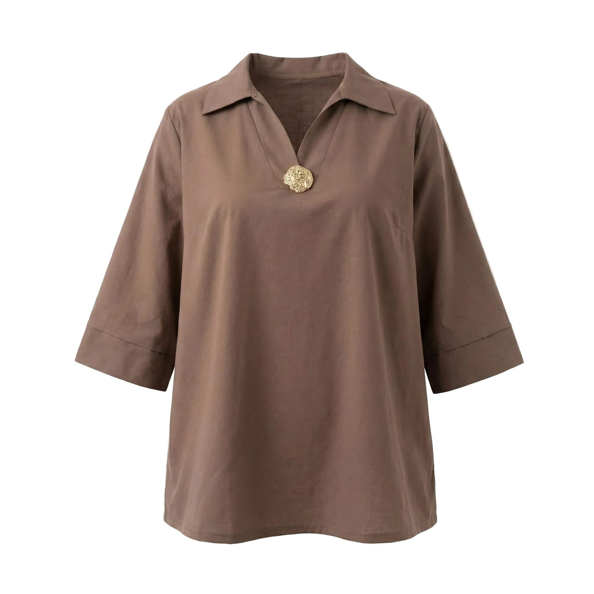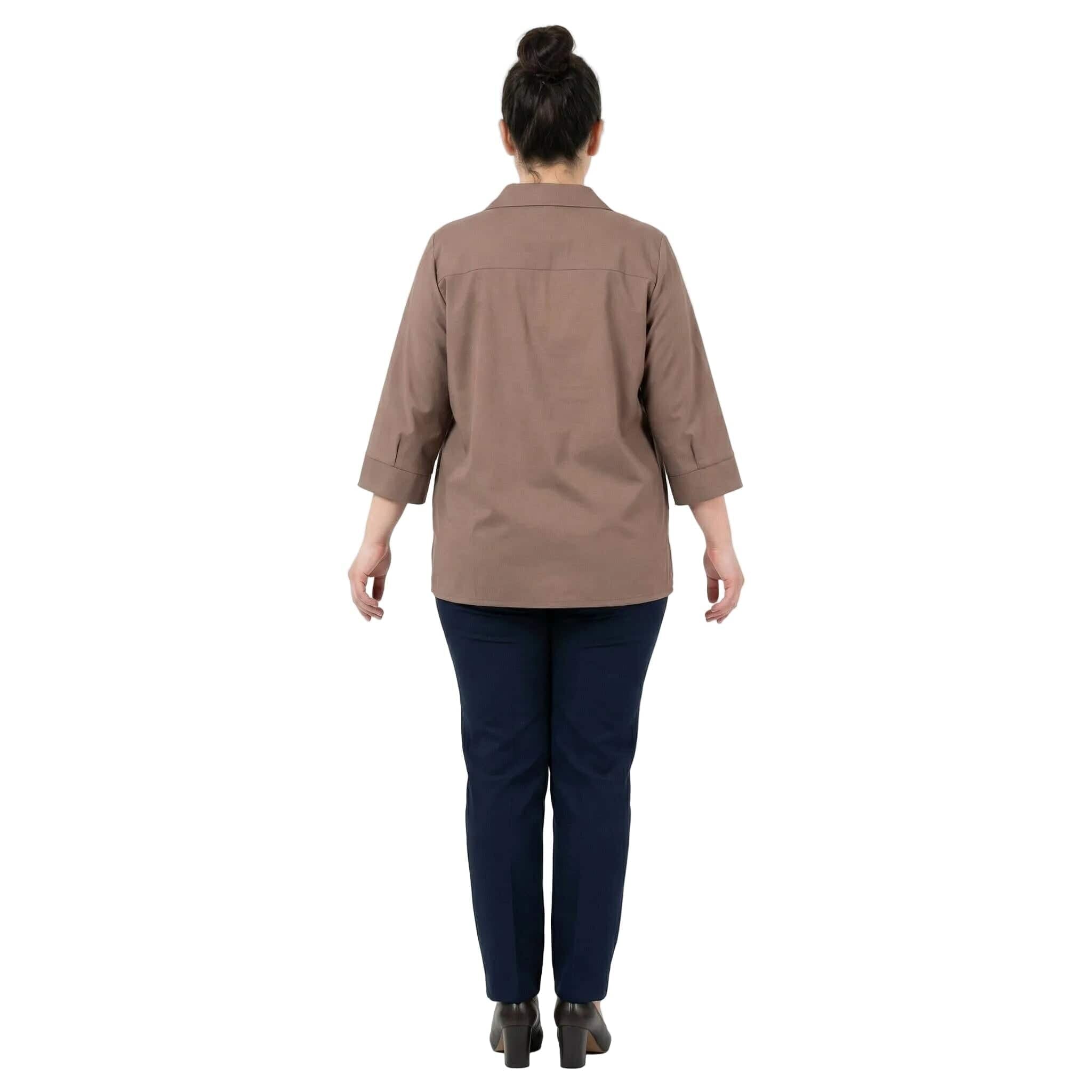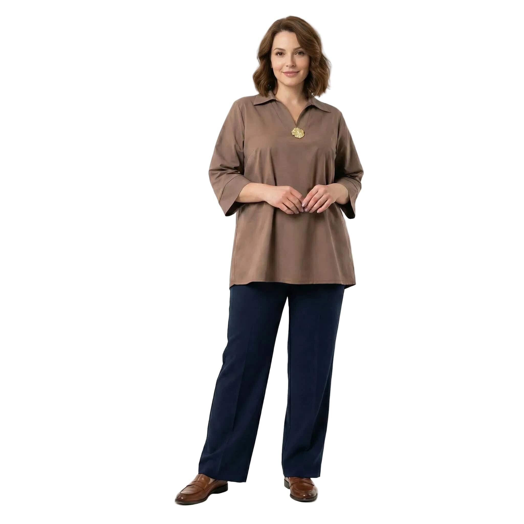 Επίσημο βαμβακερό πουκάμισο μόκα σε ριχτή γραμμή plus size