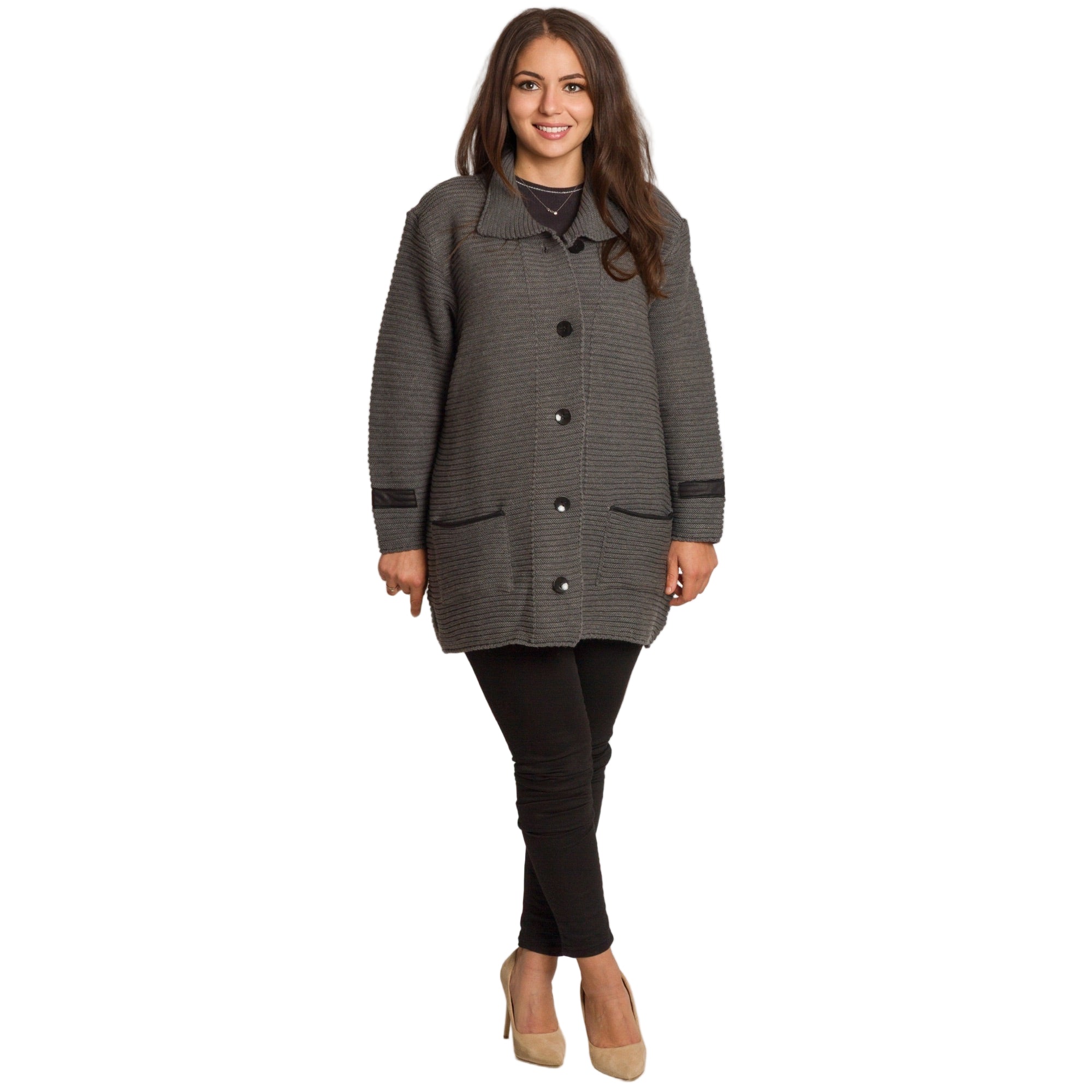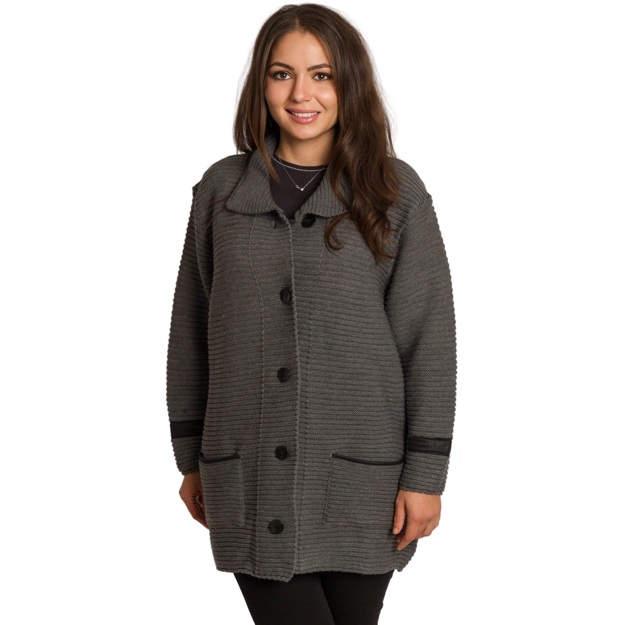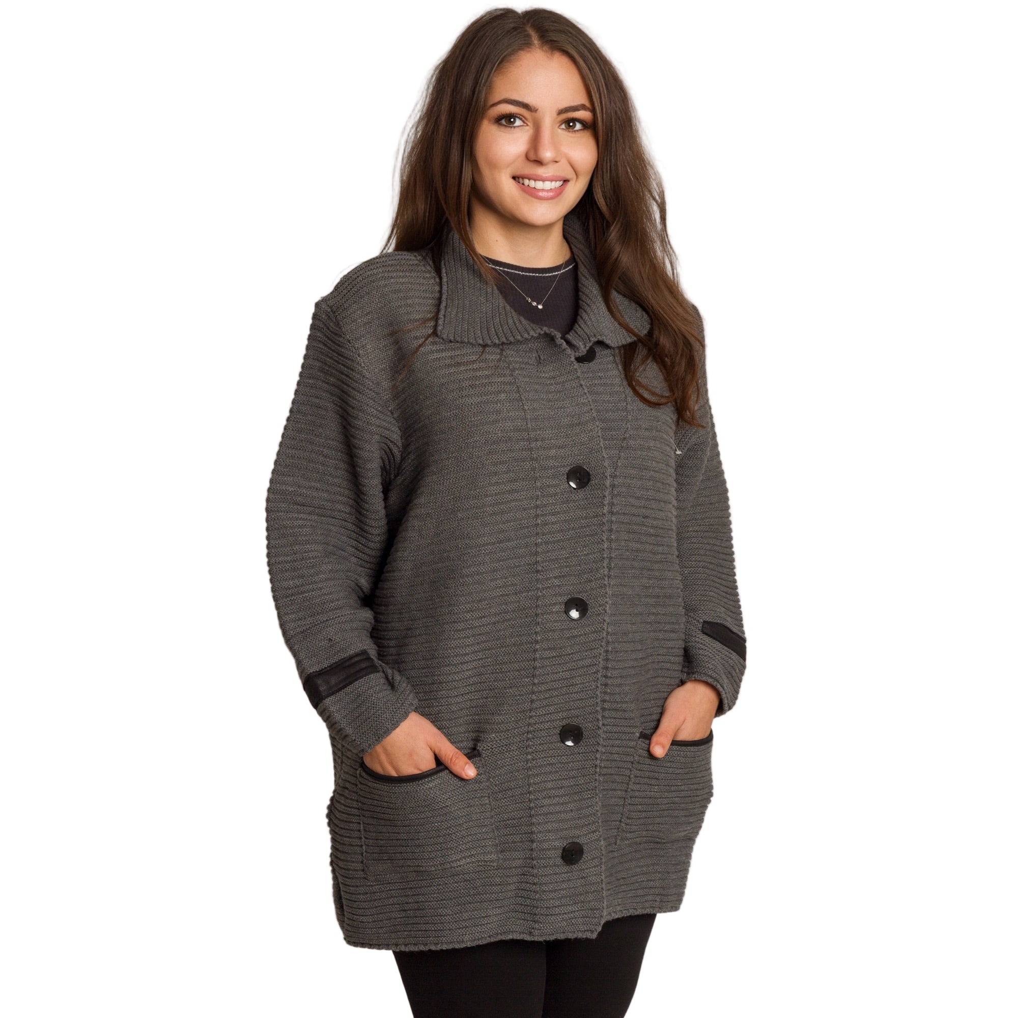 Γκρι πλεκτή ζακέτα με κουμπιά και τσέπες σε μεγάλα μεγέθη