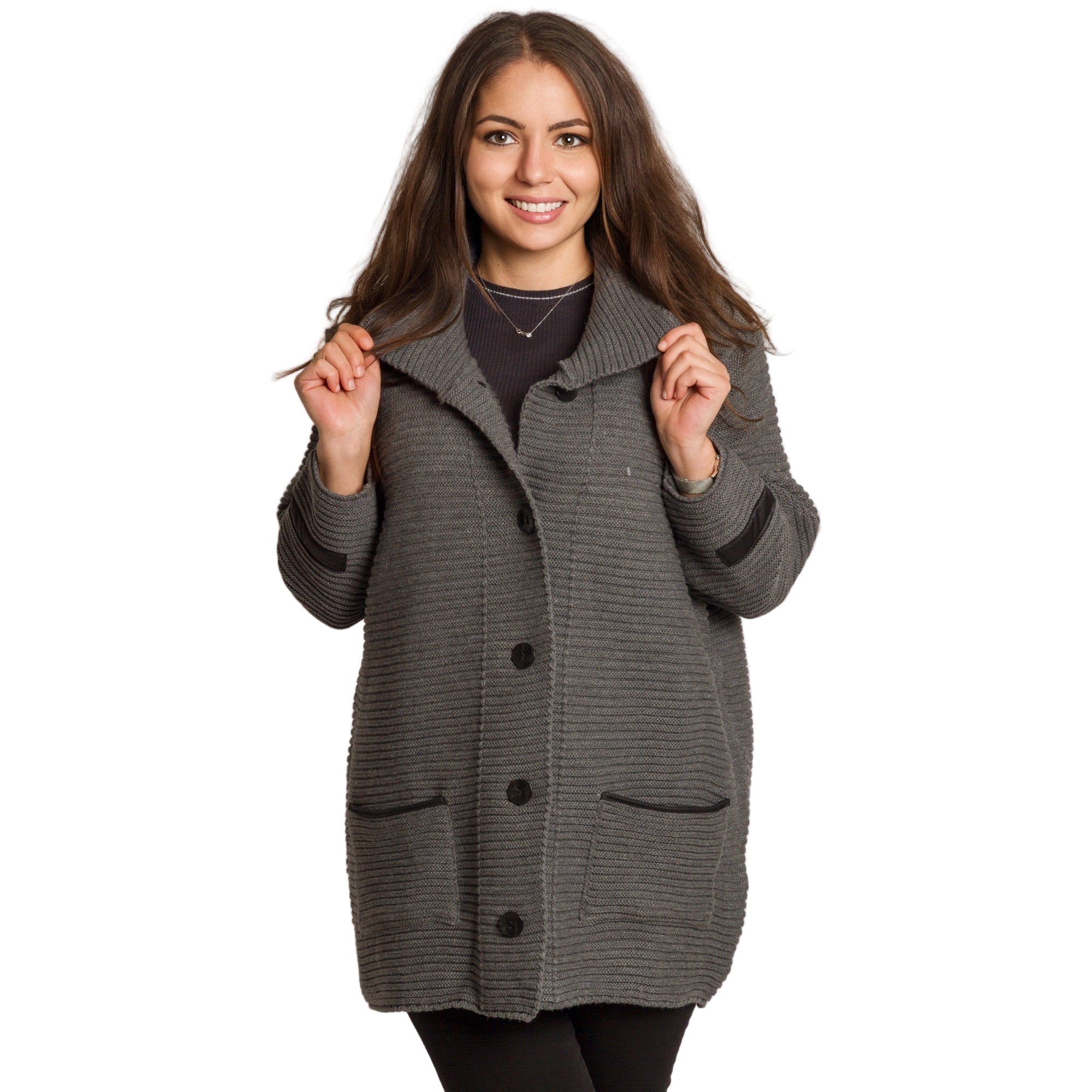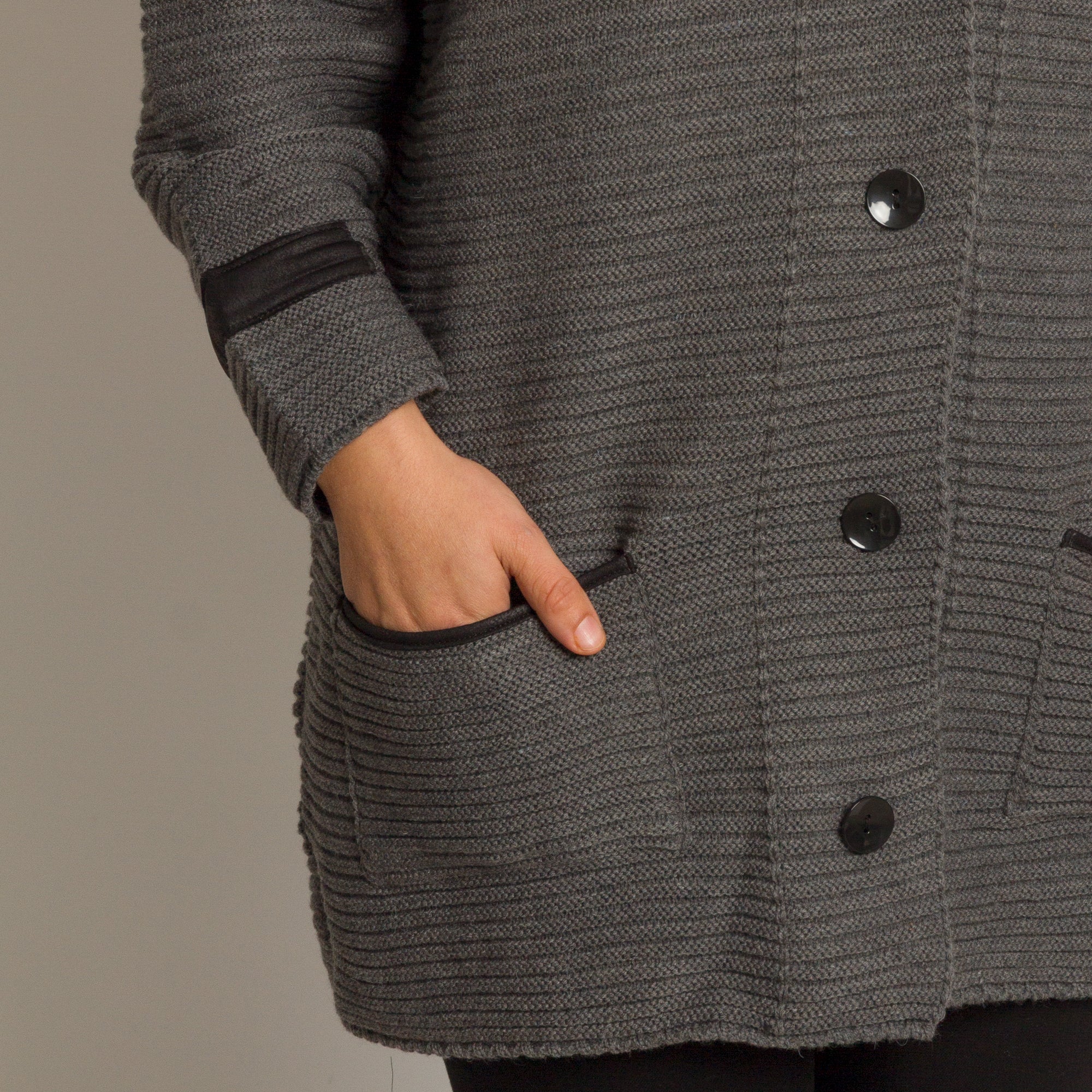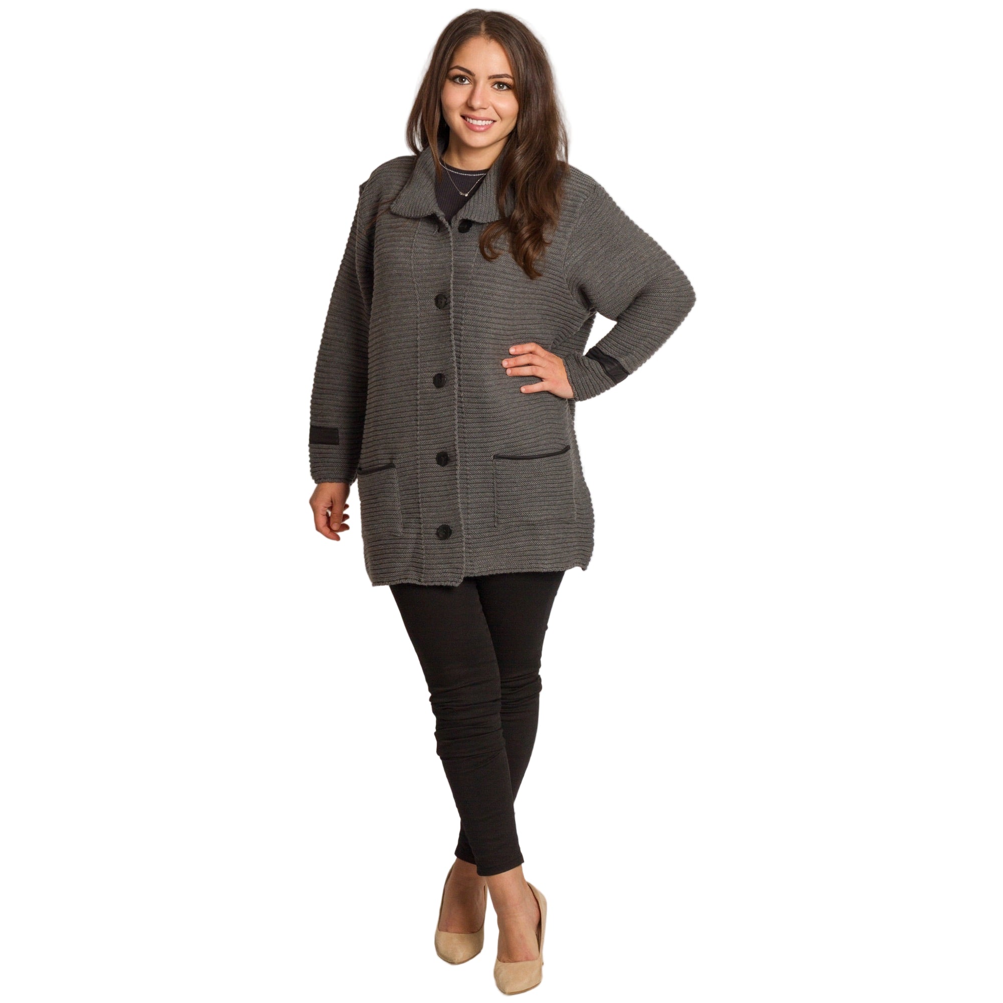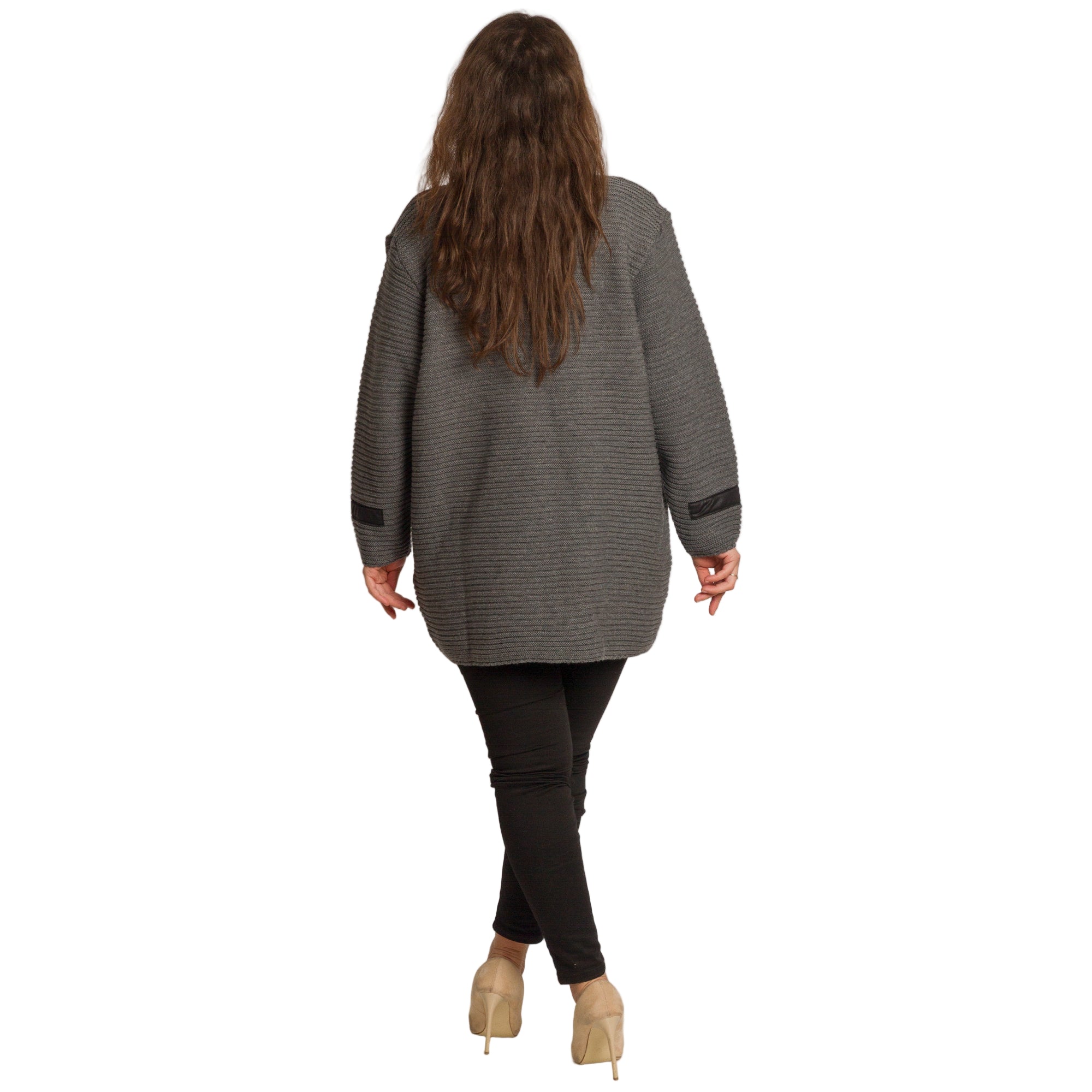 Γκρι πλεκτή ζακέτα με κουμπιά και τσέπες σε μεγάλα μεγέθη