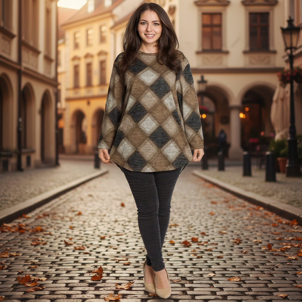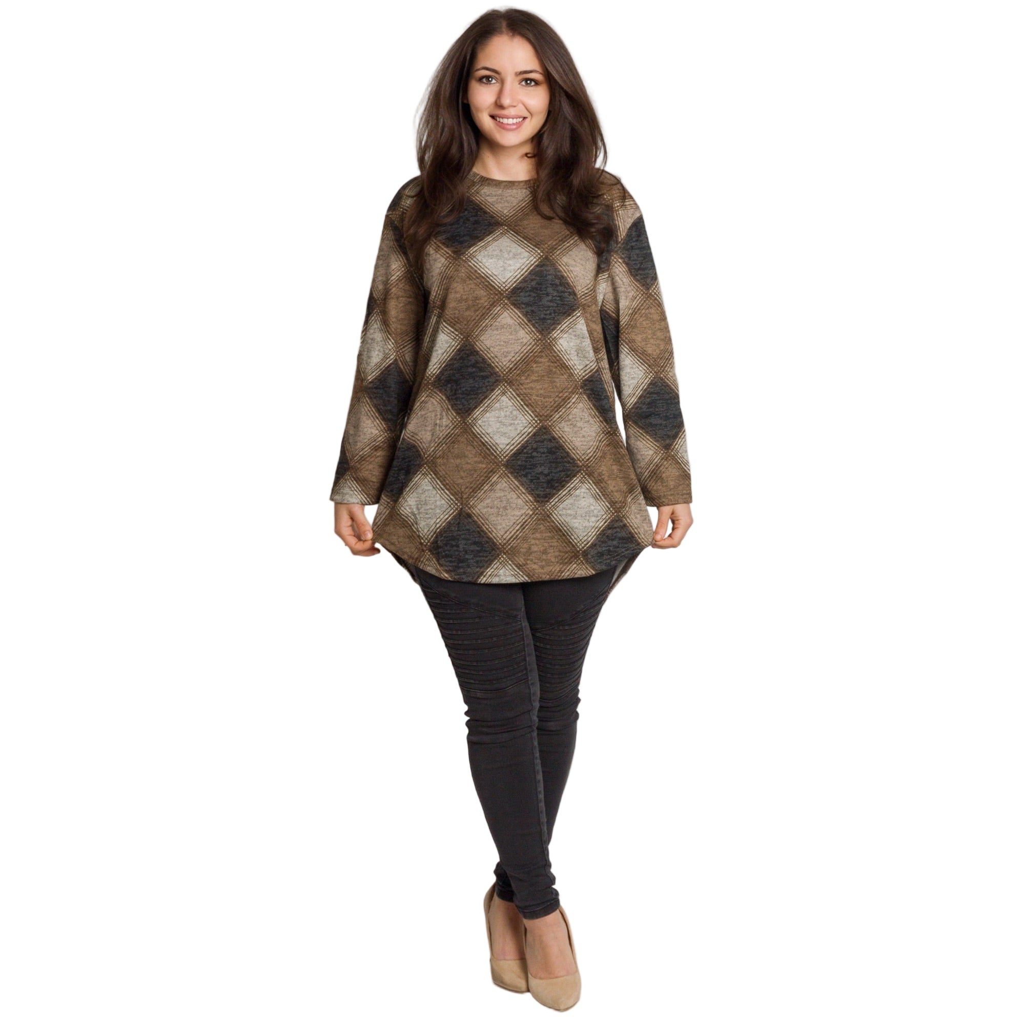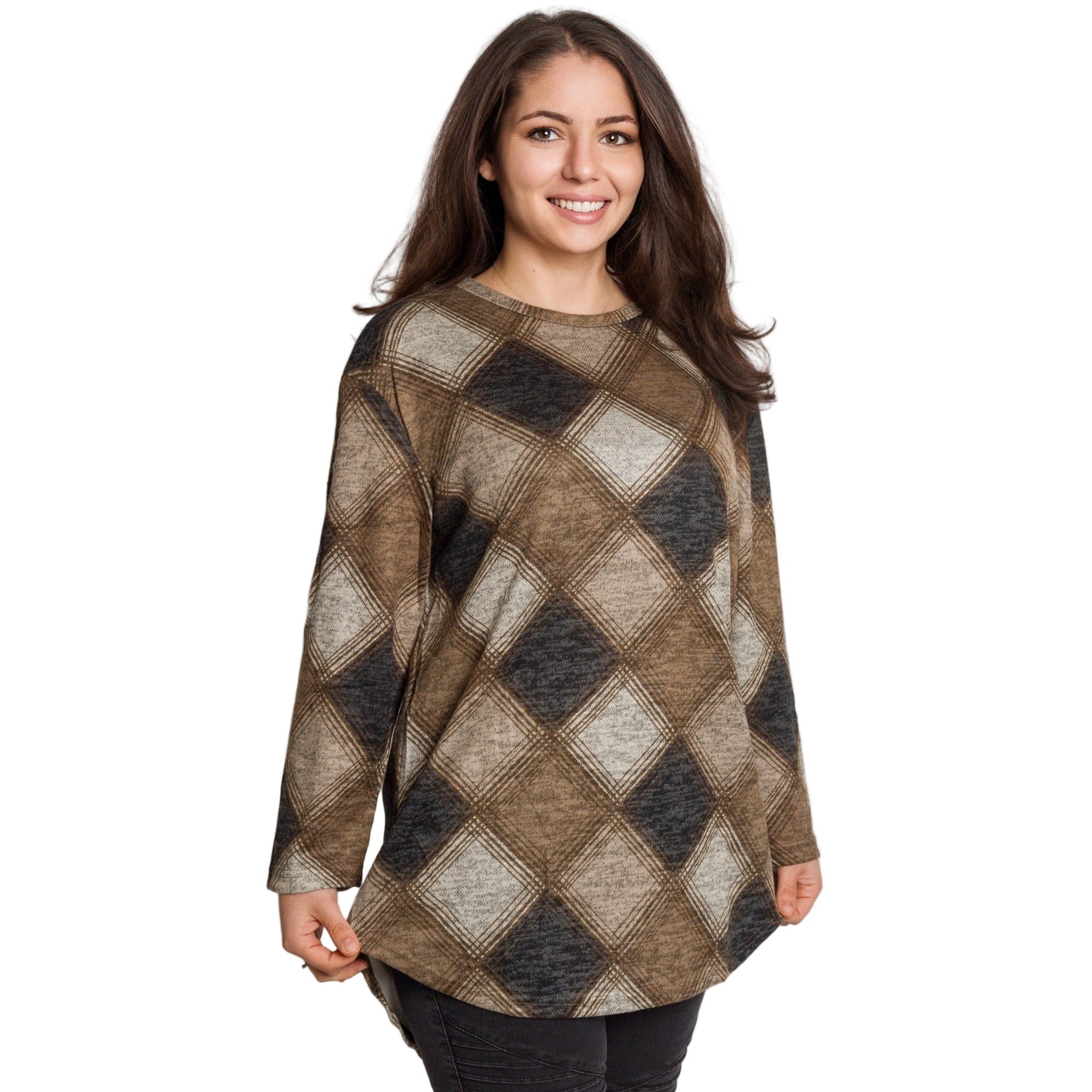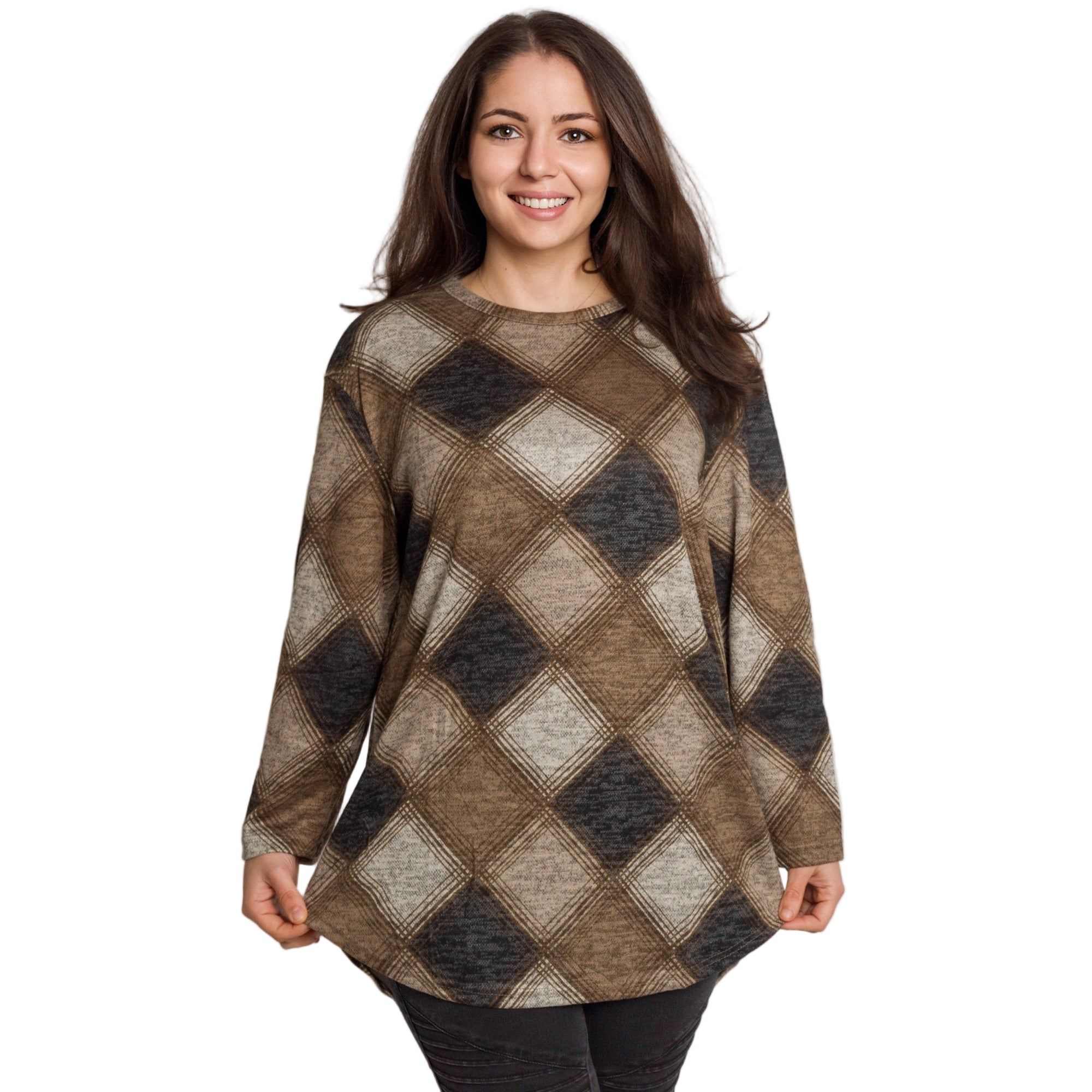 Γυναικεία τουνίκ σε καφέ καρό με ίσια γραμμή