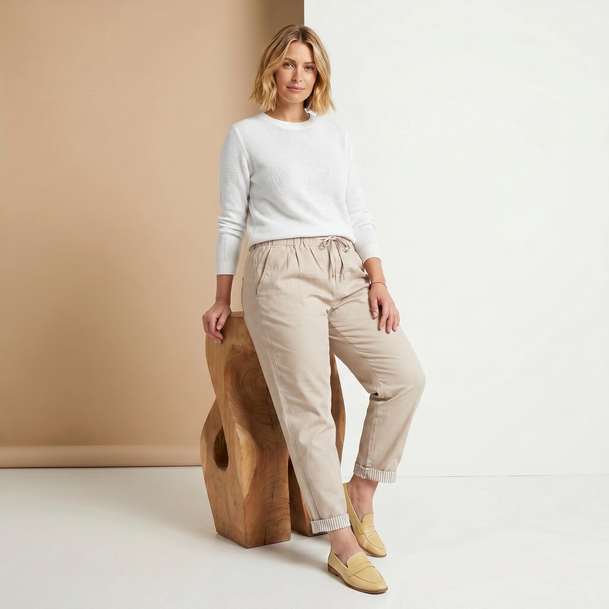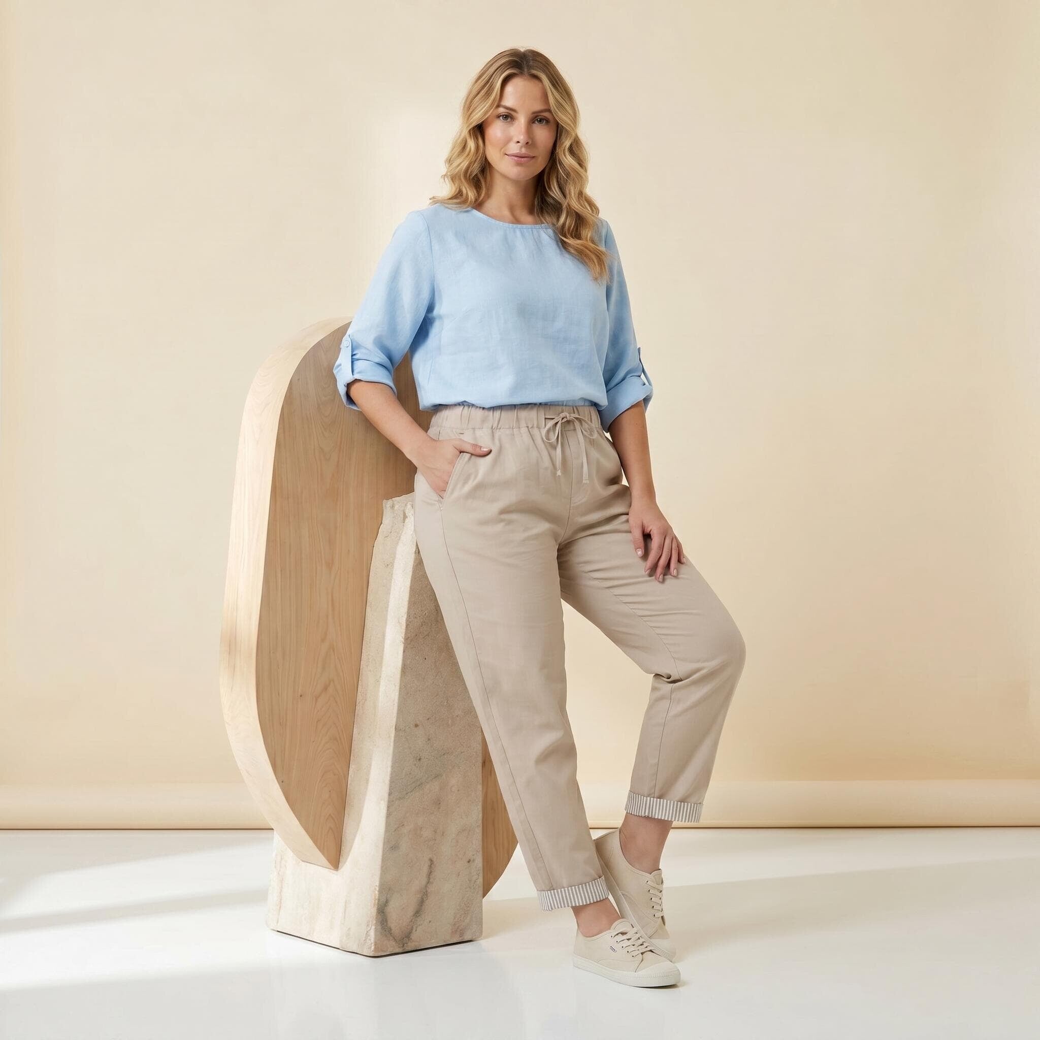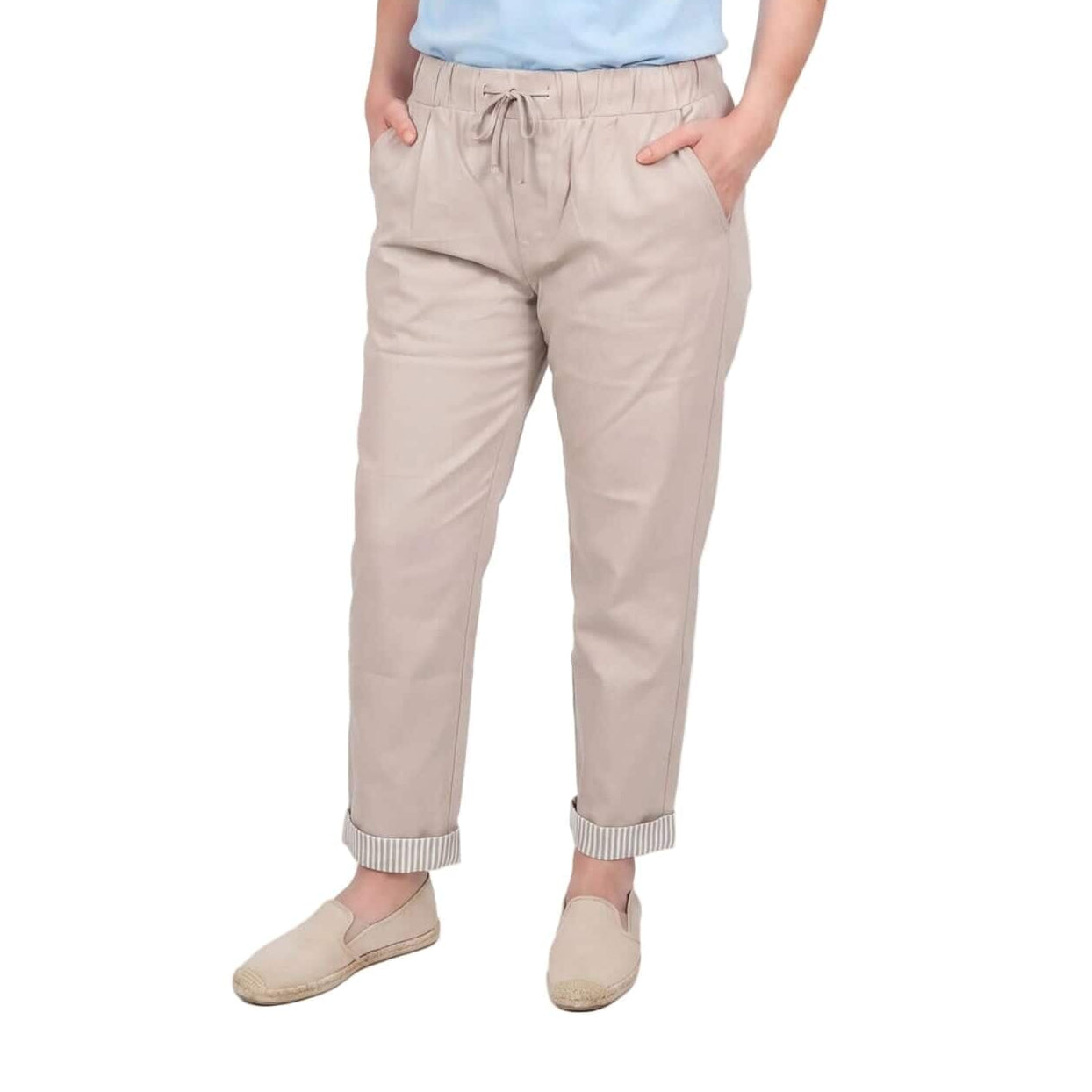 Γυναικείο ελαστικό παντελόνι μεγάλα μεγέθη σε μπεζ χρώμα