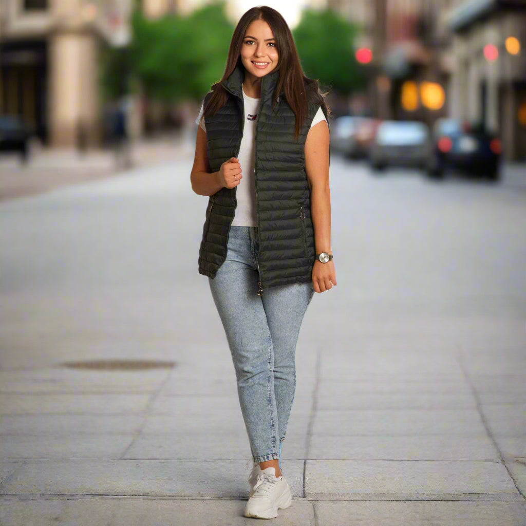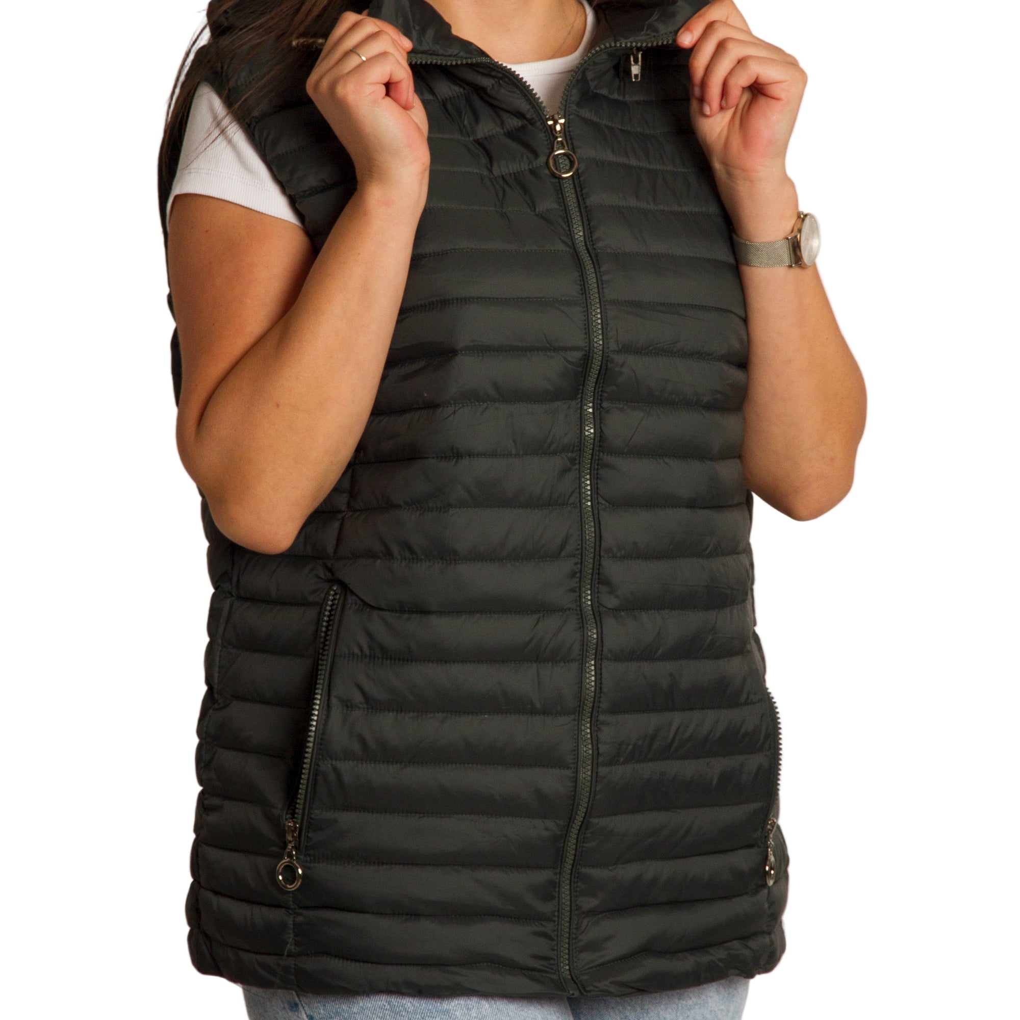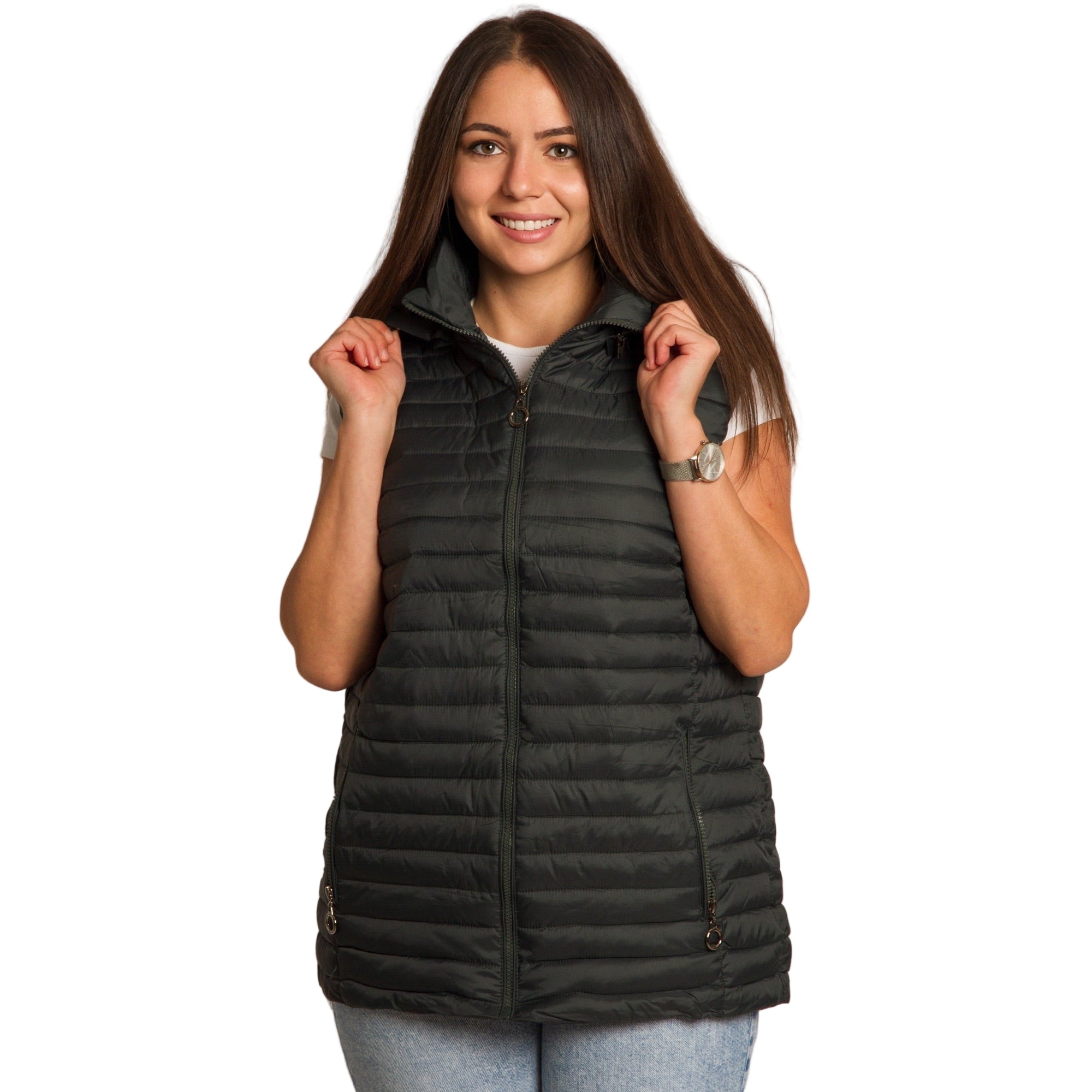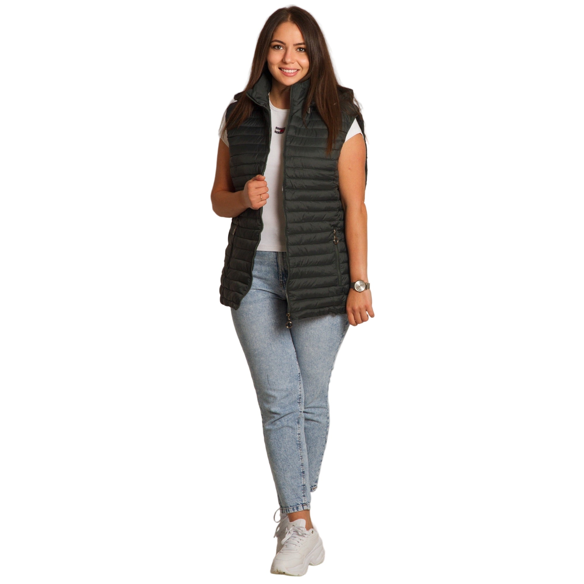 Γυναικείο πράσινο γιλέκο με ίσια γραμμή και φερμουάρ