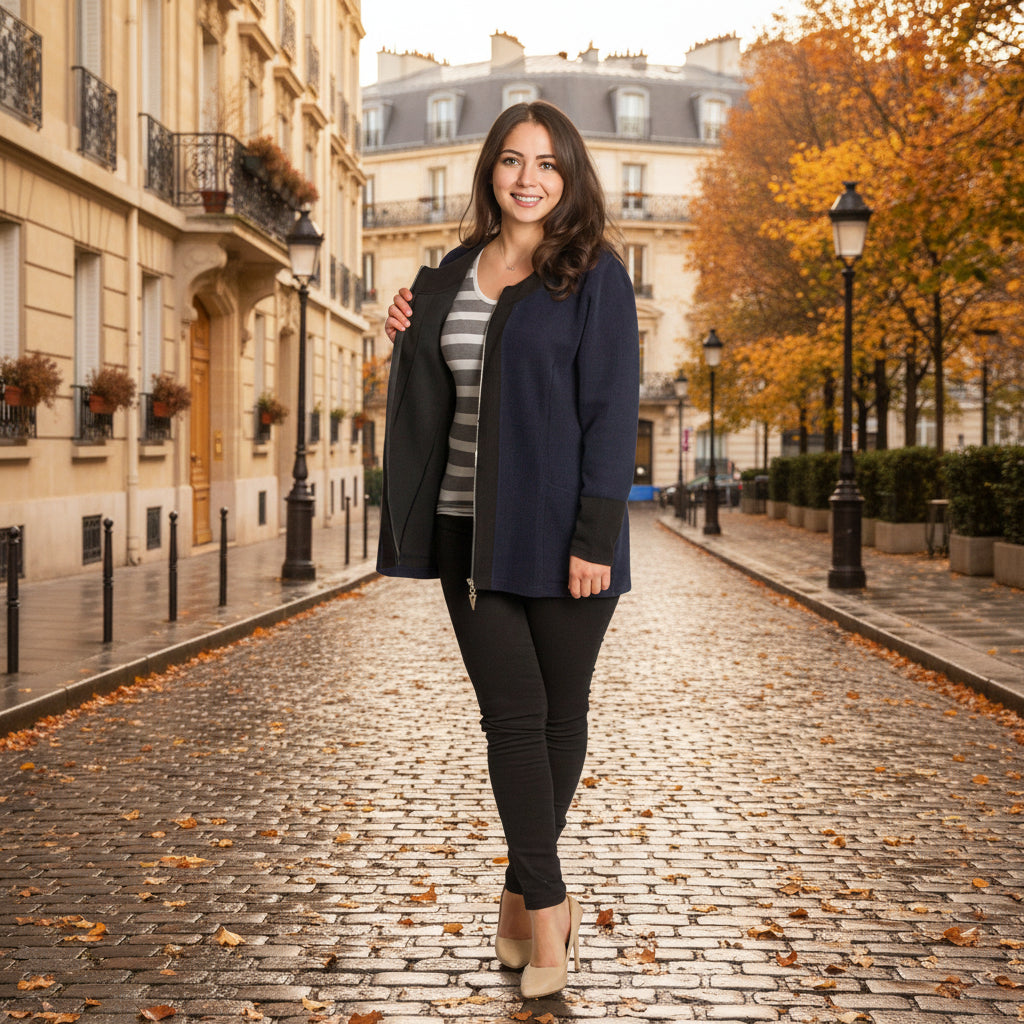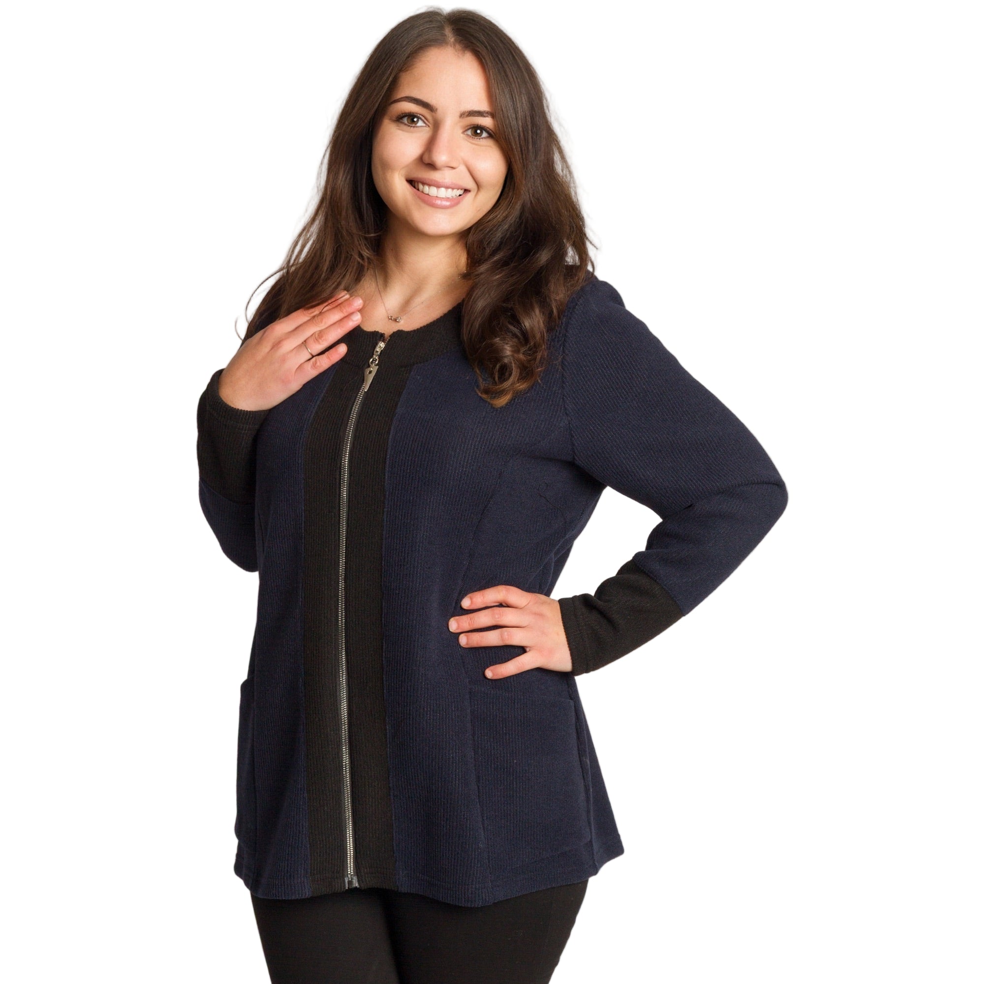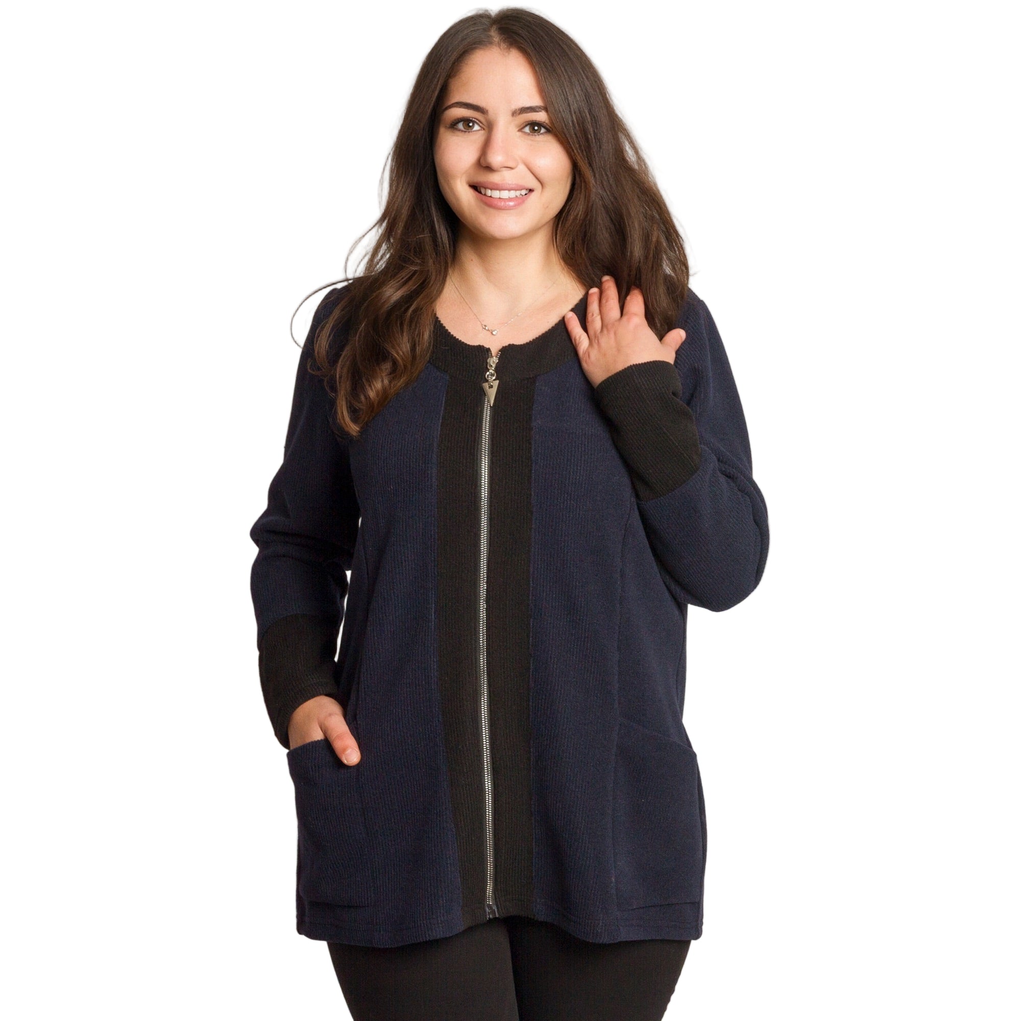 Γυναικεία ζακέτα σε μεγάλα μεγέθη σε σκούρο μπλε