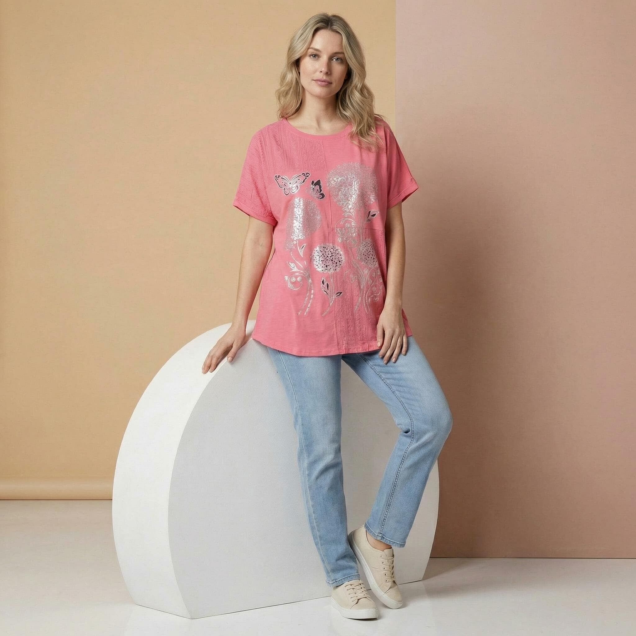 Καθημερινή καλοκαιρινή μάξι τουνίκ κοραλί μεγάλα μεγέθη με φλοράλ