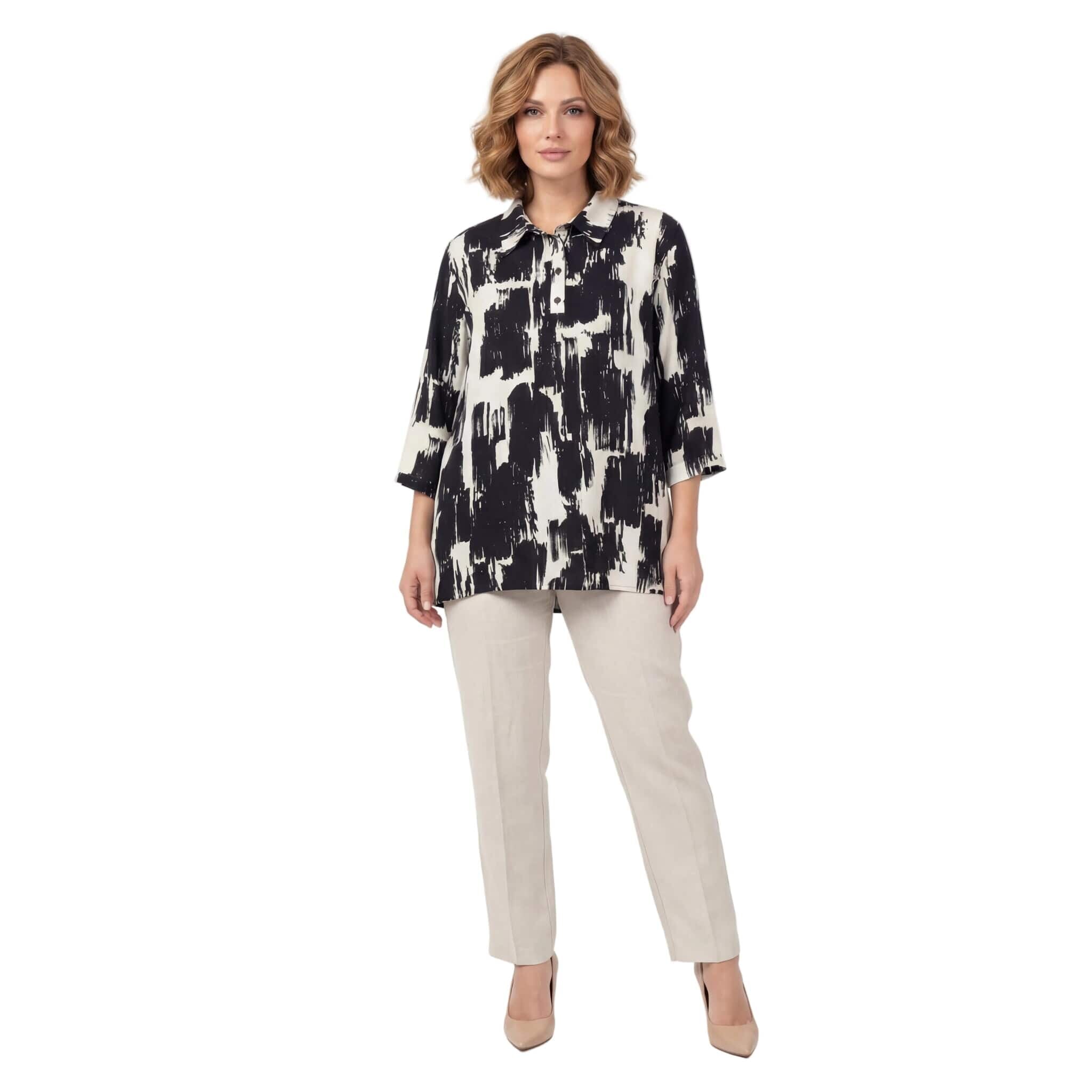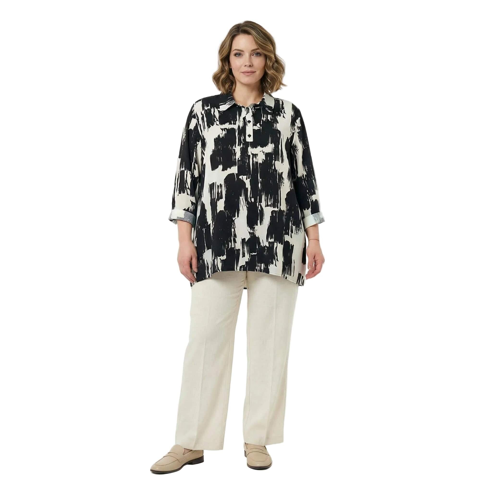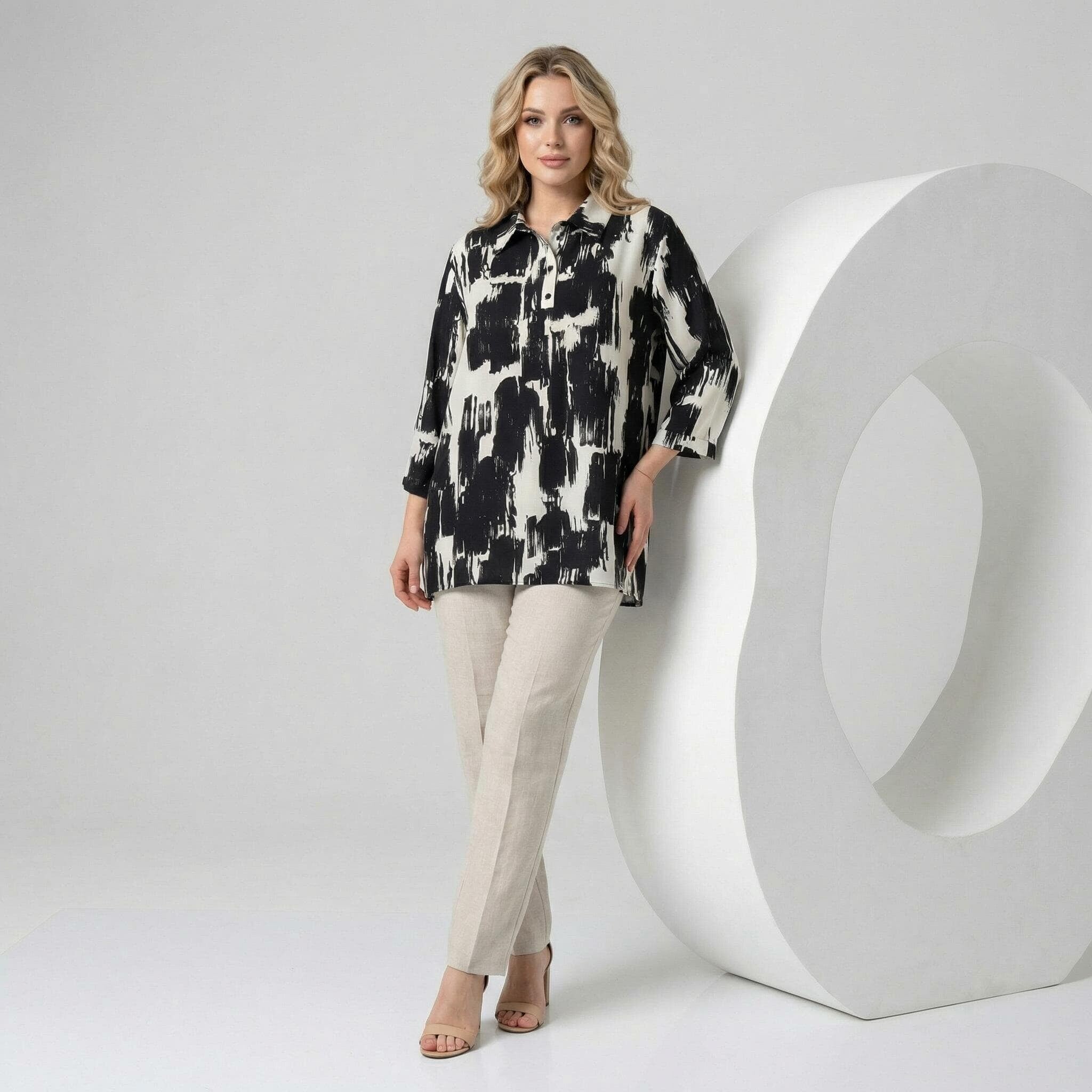 Κομψό ασπρόμαυρο επίσημο πουκάμισο σε μεγάλα μεγέθη