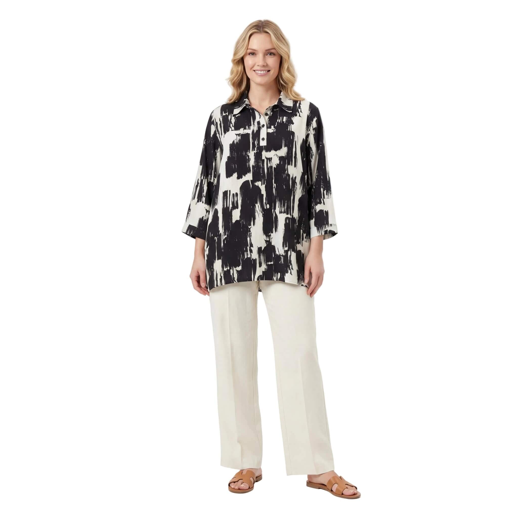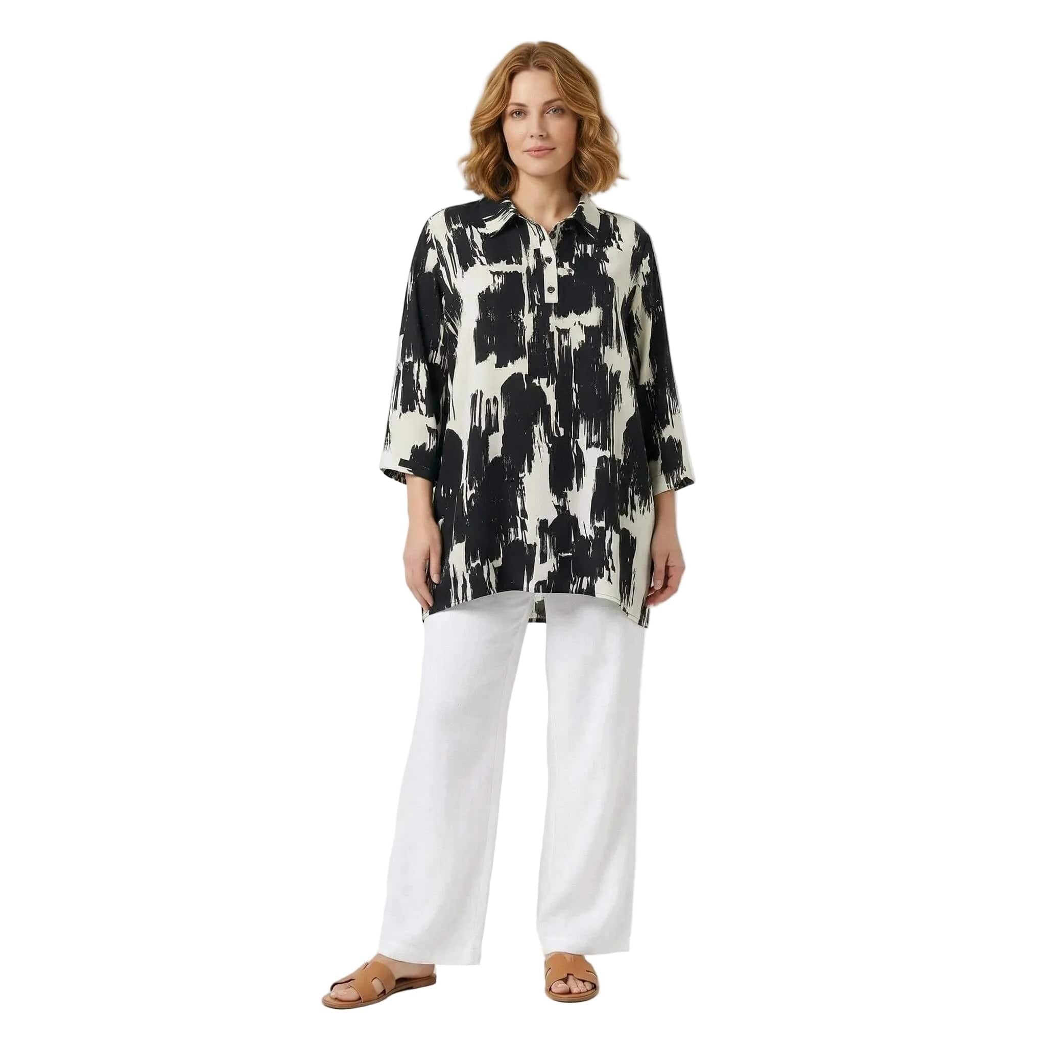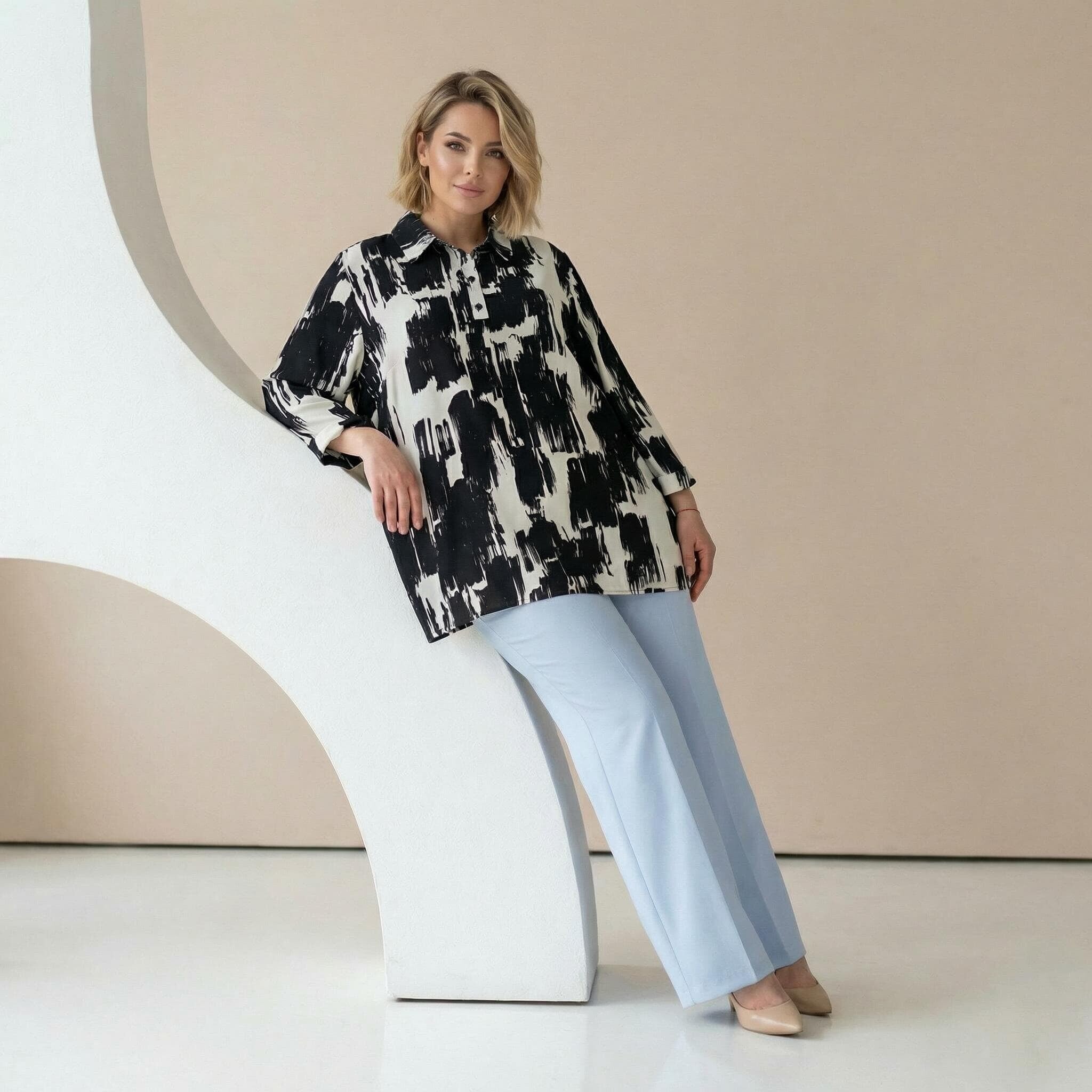 Κομψό ασπρόμαυρο επίσημο πουκάμισο σε μεγάλα μεγέθη