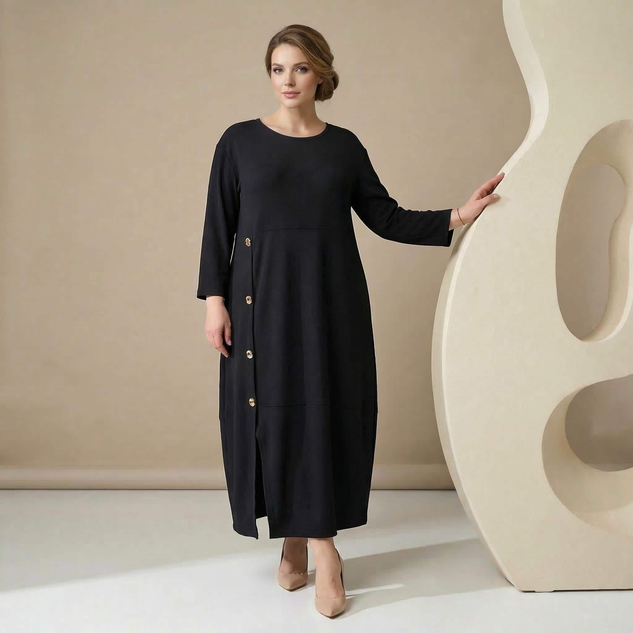 Κομψό μαύρο επίσημο εβαζέ φόρεμα σε μεγάλα μεγέθη